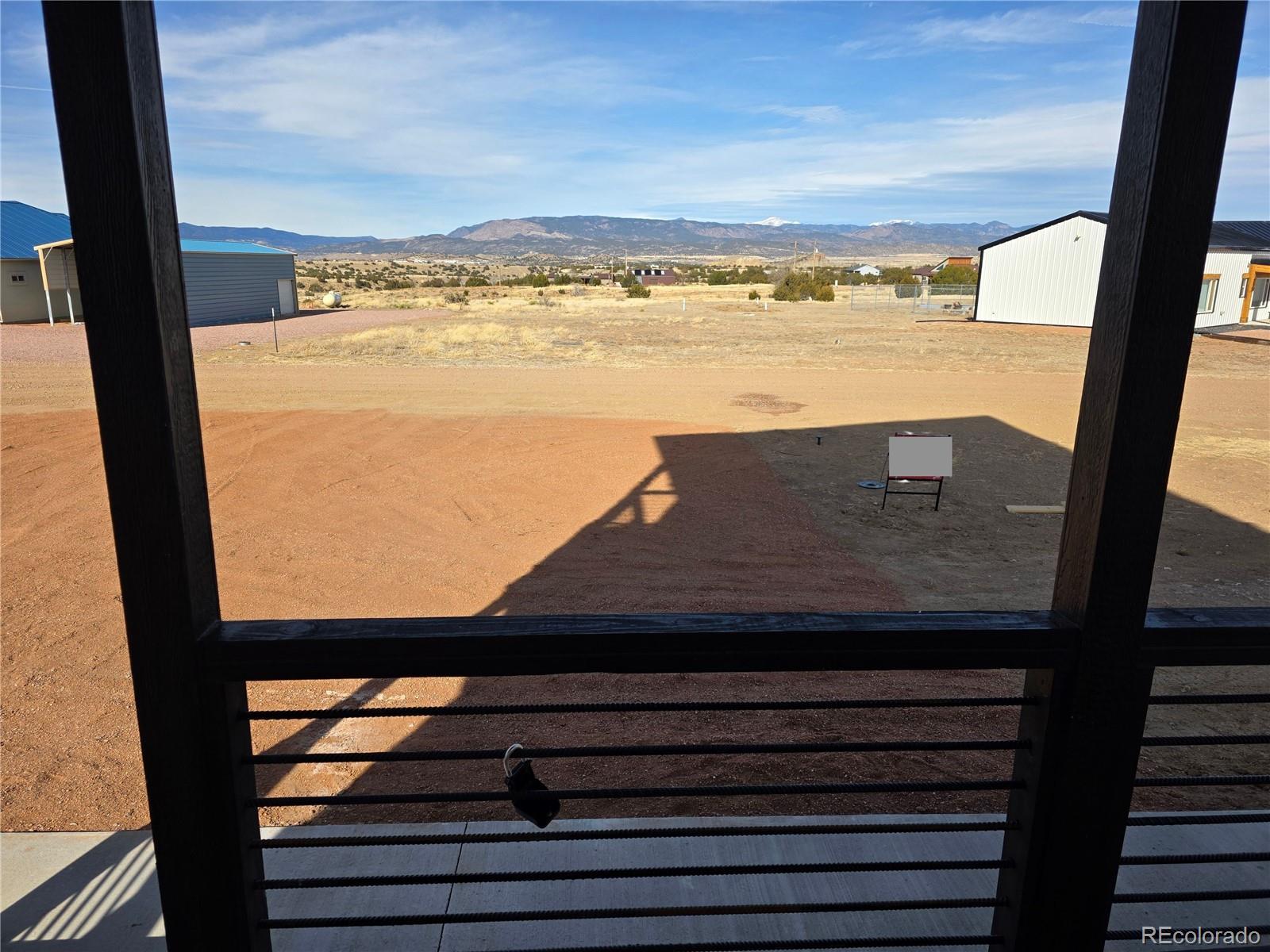 Custom 2-story home situated on a half-acre lot atop a bluff, offering stunning views of Pikes Peak from both the lower porch and the upper master bedroom porch. Upon entering, you'll find a well-appointed living room filled with natural light, flowing seamlessly into the kitchen. The kitchen features all stainless steel appliances, a deep farmhouse sink, and natural gas cooking. Just off the kitchen is a convenient pantry for all your storage needs. Down the hall, you'll discover the laundry area, complete with supplied appliances and additional storage. Toward the back of the home is the first full bathroom, with the lower-level bedroom just off it. Heading upstairs, you're greeted by the second full bathroom, a large secondary bedroom, and a third bedroom. On the way to the master suite, there's a generous coat closet. The master bedroom is bathed in light from the upper porch windows and elegant transom windows that continue into the full master bathroom. The master bath includes double vanity sinks and ample upright storage, while the master bedroom is separated from the bath and walk-in closet by stylish barn doors. Come see this custom modern home that provides ample space for the whole family, breathtaking views, and peace of mind with its 7-year warranty.