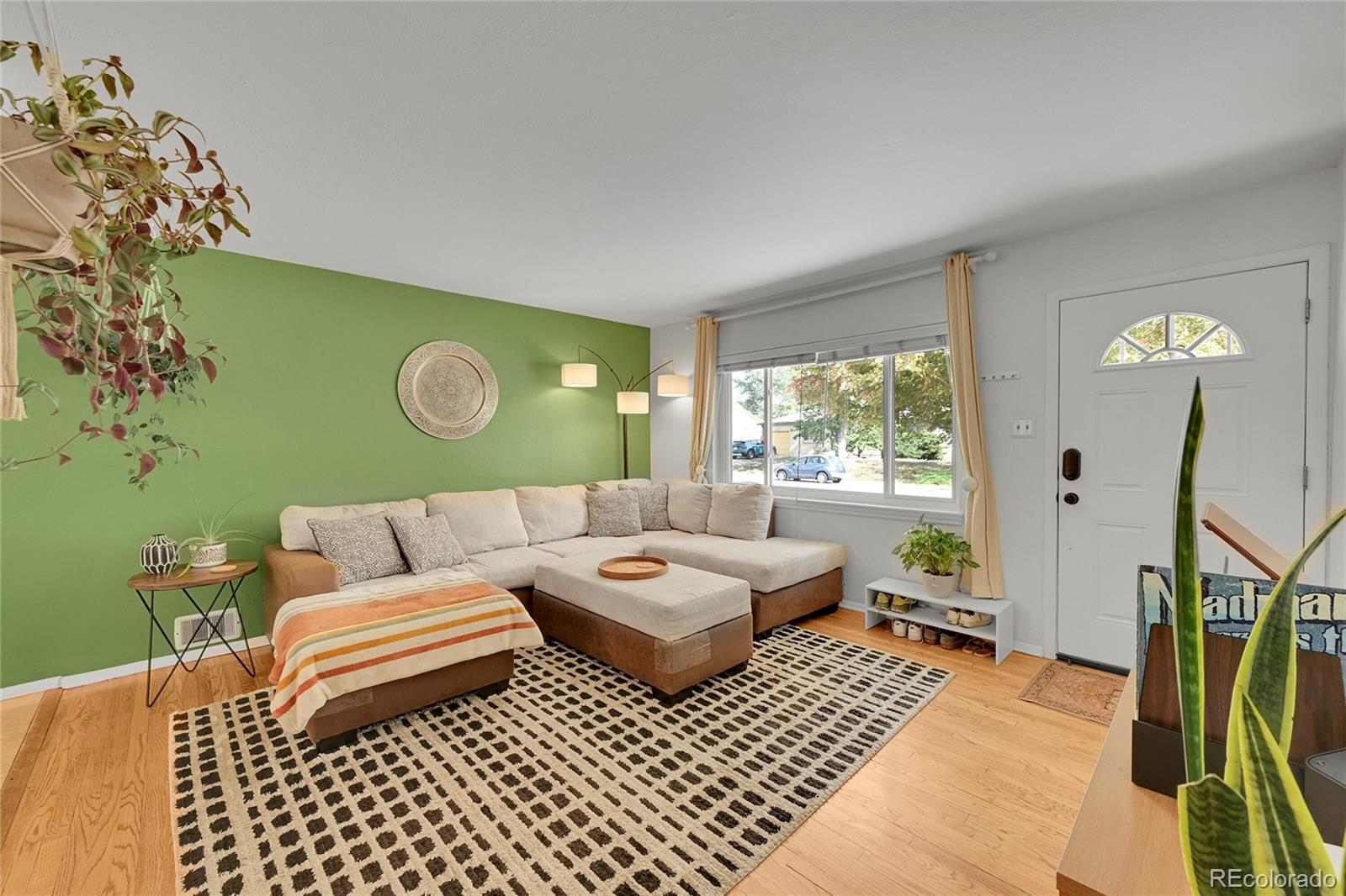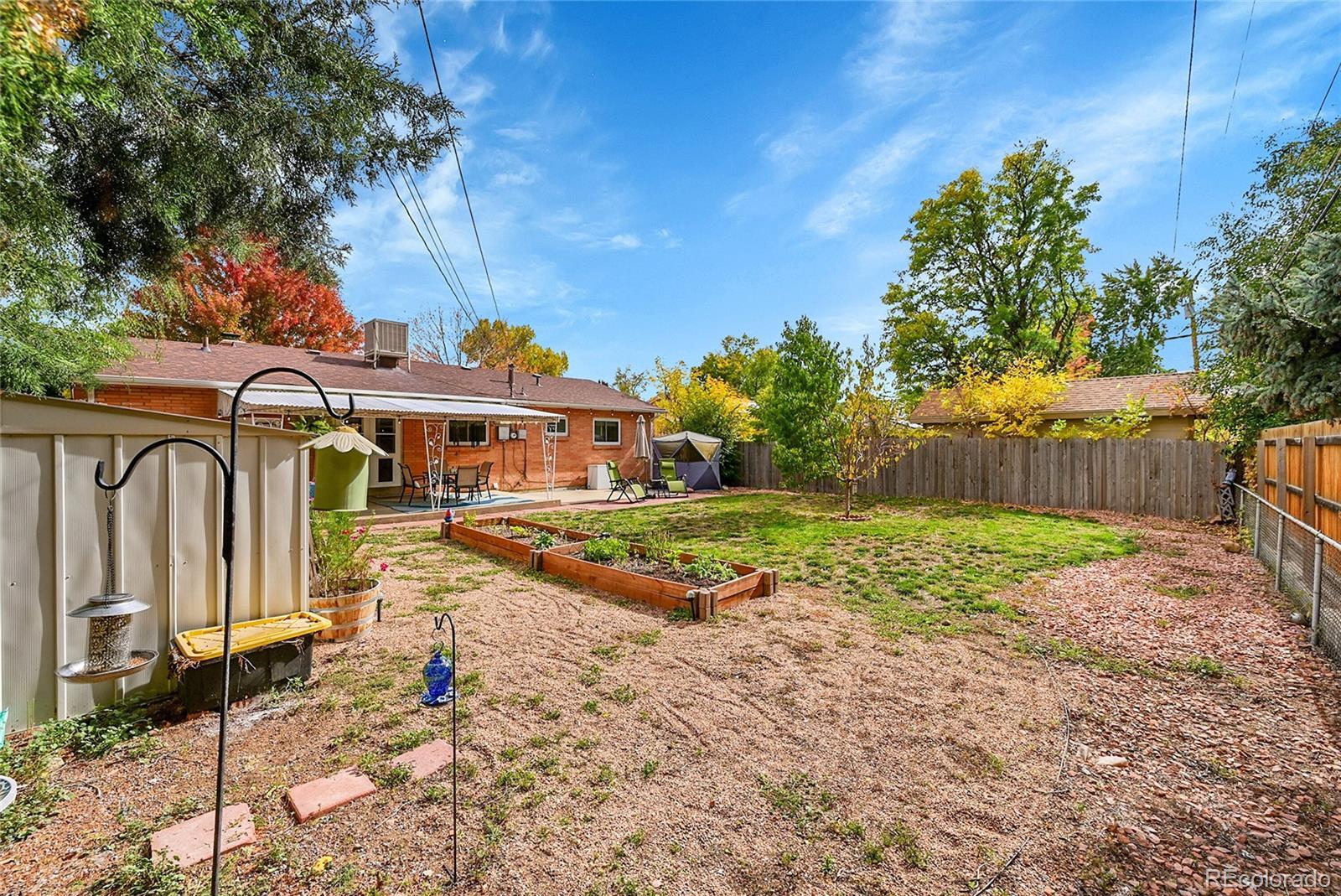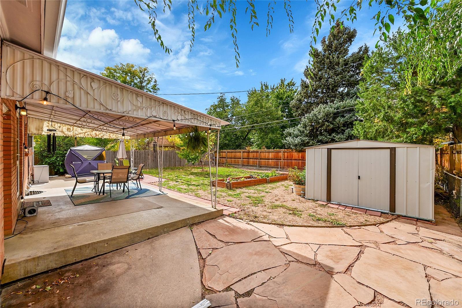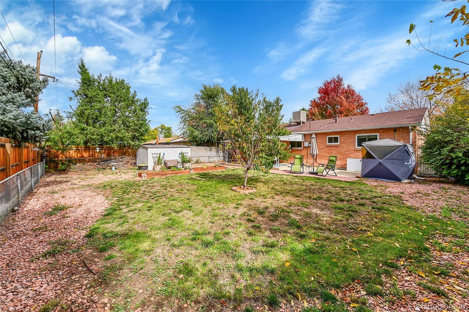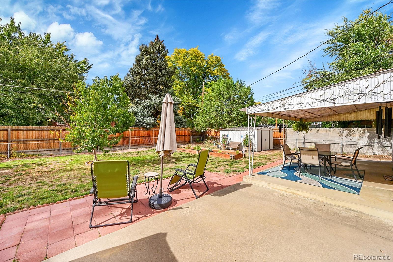 Welcome to this inviting 5-bedroom, 3-bath gem nestled in Denver’s desirable Harvey Park neighborhood. Beautiful landscaping and mature trees create a welcoming curb appeal, setting the tone for the warmth and character found inside. Offering 2,266 square feet of thoughtfully designed living space, this home combines comfort, functionality, and timeless appeal. The open layout flows naturally, with wood floors gracing the living room and main-level bedrooms, creating a cohesive and inviting atmosphere. The dining area and kitchen open to a covered patio, providing the perfect setting for outdoor dining or relaxing in the spacious, fully fenced backyard. The peaceful primary suite features a private ¾ bath, while two additional bedrooms share a full hall bath, offering flexibility for family, guests, or a home office. Downstairs, the finished basement expands your living space with a cozy family room anchored by a brick-wall wood-burning fireplace, ideal for movie nights or entertaining. Two more bedrooms, a ¾ bath, and a generous laundry area complete the lower level, providing ample room for guests or hobbies. Outside, an additional enclosed area in the backyard offers a perfect spot for pets or children to play safely. A large storage shed and a one-car attached garage add convenience and functionality. This property’s prime location offers easy access to Highway 285 and Santa Fe Drive, along with nearby shopping, restaurants, and recreational destinations. Outdoor enthusiasts will love being minutes from Bear Creek Trail, Loretta Heights Park, and Harvey Park Lake, as well as the local recreation center. Blending modern comfort with a peaceful suburban feel, this Harvey Park treasure is ready to welcome you home.