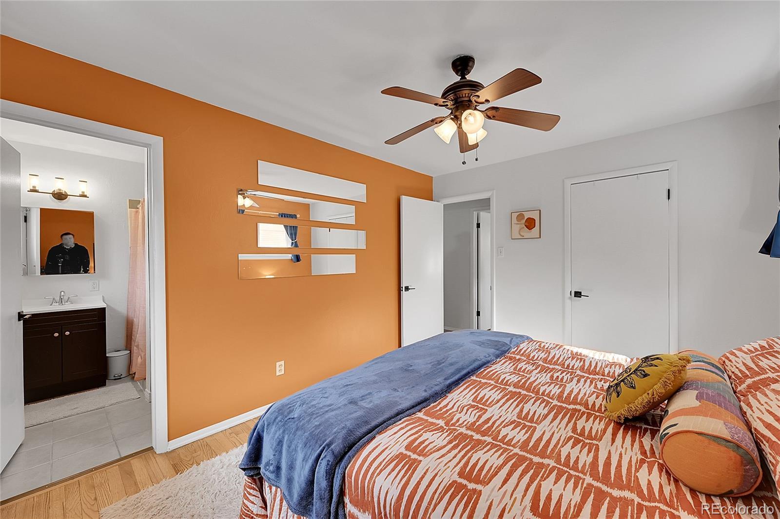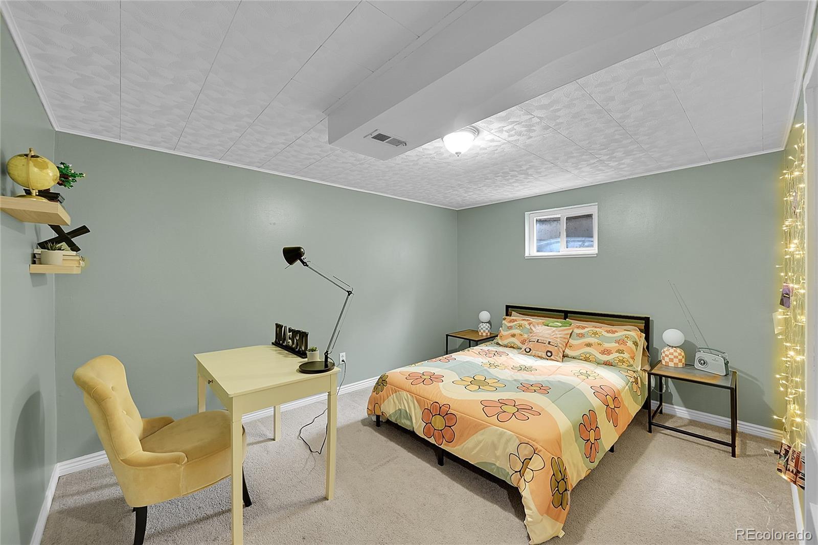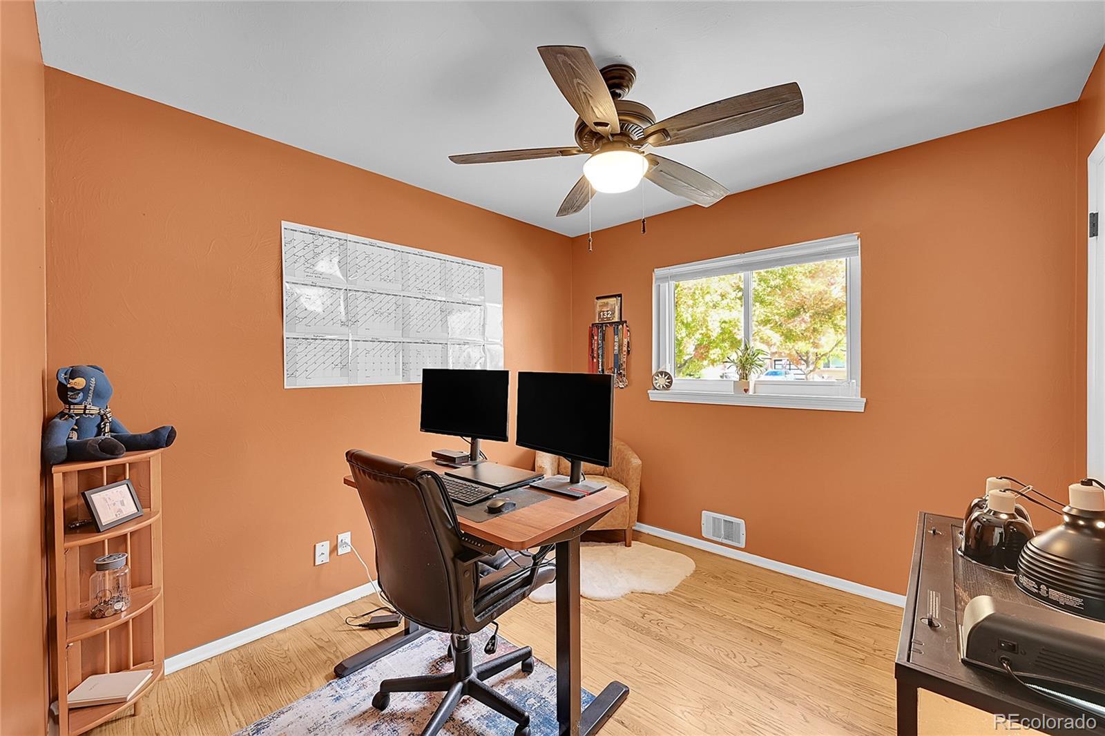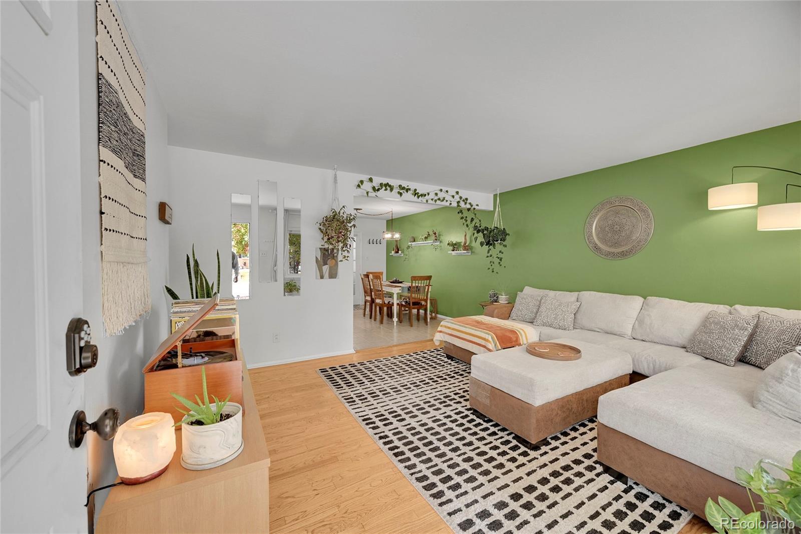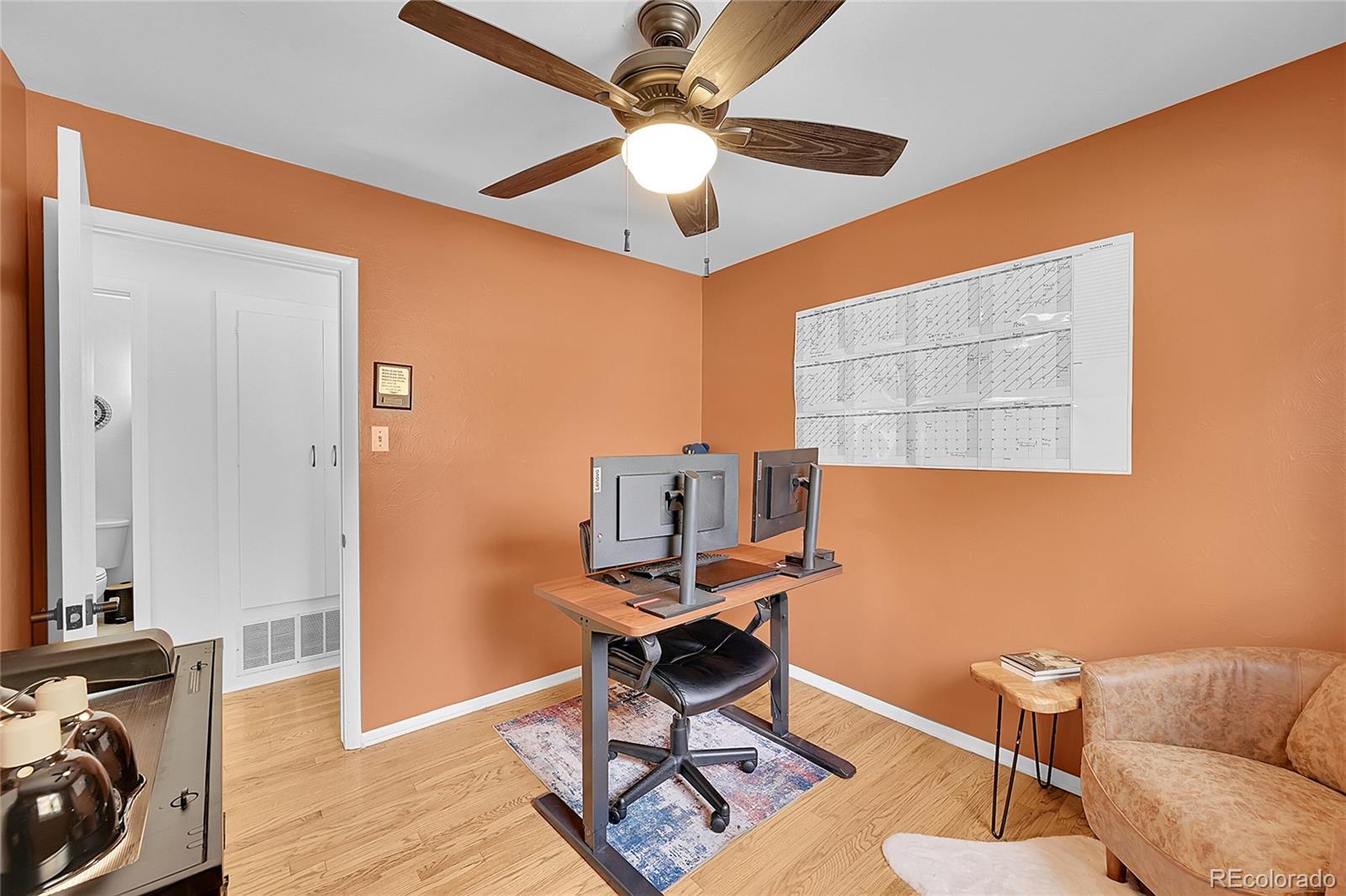 Welcome to this inviting 5-bedroom, 3-bath gem nestled in Denver’s desirable Harvey Park neighborhood. Beautiful landscaping and mature trees create a welcoming curb appeal, setting the tone for the warmth and character found inside. Offering 2,266 square feet of thoughtfully designed living space, this home combines comfort, functionality, and timeless appeal. The open layout flows naturally, with wood floors gracing the living room and main-level bedrooms, creating a cohesive and inviting atmosphere. The dining area and kitchen open to a covered patio, providing the perfect setting for outdoor dining or relaxing in the spacious, fully fenced backyard. The peaceful primary suite features a private ¾ bath, while two additional bedrooms share a full hall bath, offering flexibility for family, guests, or a home office. Downstairs, the finished basement expands your living space with a cozy family room anchored by a brick-wall wood-burning fireplace, ideal for movie nights or entertaining. Two more bedrooms, a ¾ bath, and a generous laundry area complete the lower level, providing ample room for guests or hobbies. Outside, an additional enclosed area in the backyard offers a perfect spot for pets or children to play safely. A large storage shed and a one-car attached garage add convenience and functionality. This property’s prime location offers easy access to Highway 285 and Santa Fe Drive, along with nearby shopping, restaurants, and recreational destinations. Outdoor enthusiasts will love being minutes from Bear Creek Trail, Loretta Heights Park, and Harvey Park Lake, as well as the local recreation center. Blending modern comfort with a peaceful suburban feel, this Harvey Park treasure is ready to welcome you home.