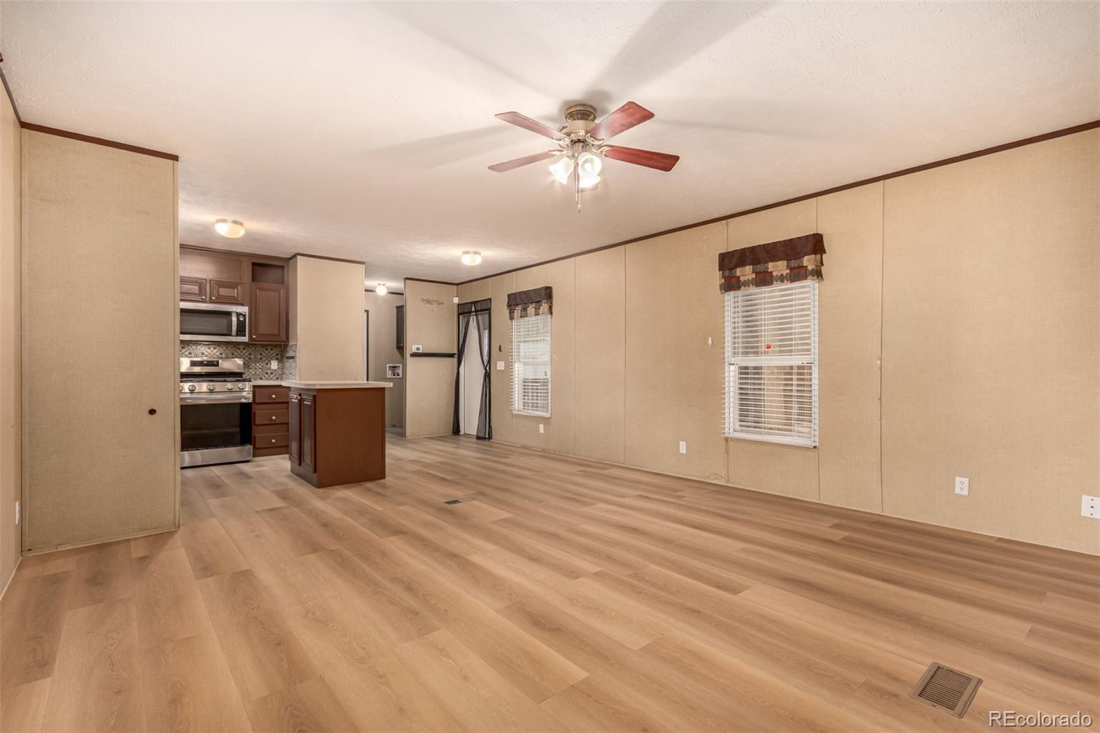 Welcome to this beautifully updated 3-bedroom, 2-bath home located in the Friendly Village of Aurora! Nestled on a landscaped lot bursting with colorful perennial gardens and mature trees, this home offers charm, privacy, and modern comfort. Step inside to a bright, open floor plan featuring brand-new luxury vinyl plank flooring and a spacious living area perfect for gathering or entertaining. The kitchen has been upgraded with stylish backsplash tile, rich cabinetry, an island for meal prep, and stainless steel appliances including a gas range and built-in microwave. The primary bedroom is generously sized and includes a walk-in closet and private ensuite with updated finishes and a full tub/shower combo. Two additional bedrooms and a second full bath provide space for guests, hobbies, or a home office. Enjoy outdoor living in your fenced backyard, complete with a garden shed, patio space, and room to create your own oasis. This property is move-in ready! Divinely located near parks, shopping, dining, and major highways, this home provides easy access to everything Aurora has to offer. Plus, enjoy your community amenities including a Swimming Pool, Club House & Recreation Facility and RV storage! Divinely located near Star K Ranch with hiking trails, wildlife, picnic tables and near Morrison Nature Center. Also nearby is the Aurora Sports Park, Children's Hospital Anschutz Medical Campus, Aurora and UCHealth University of Colorado Hospital. Only minutes from I-225, Bus stops & minutes from the Light Rail.