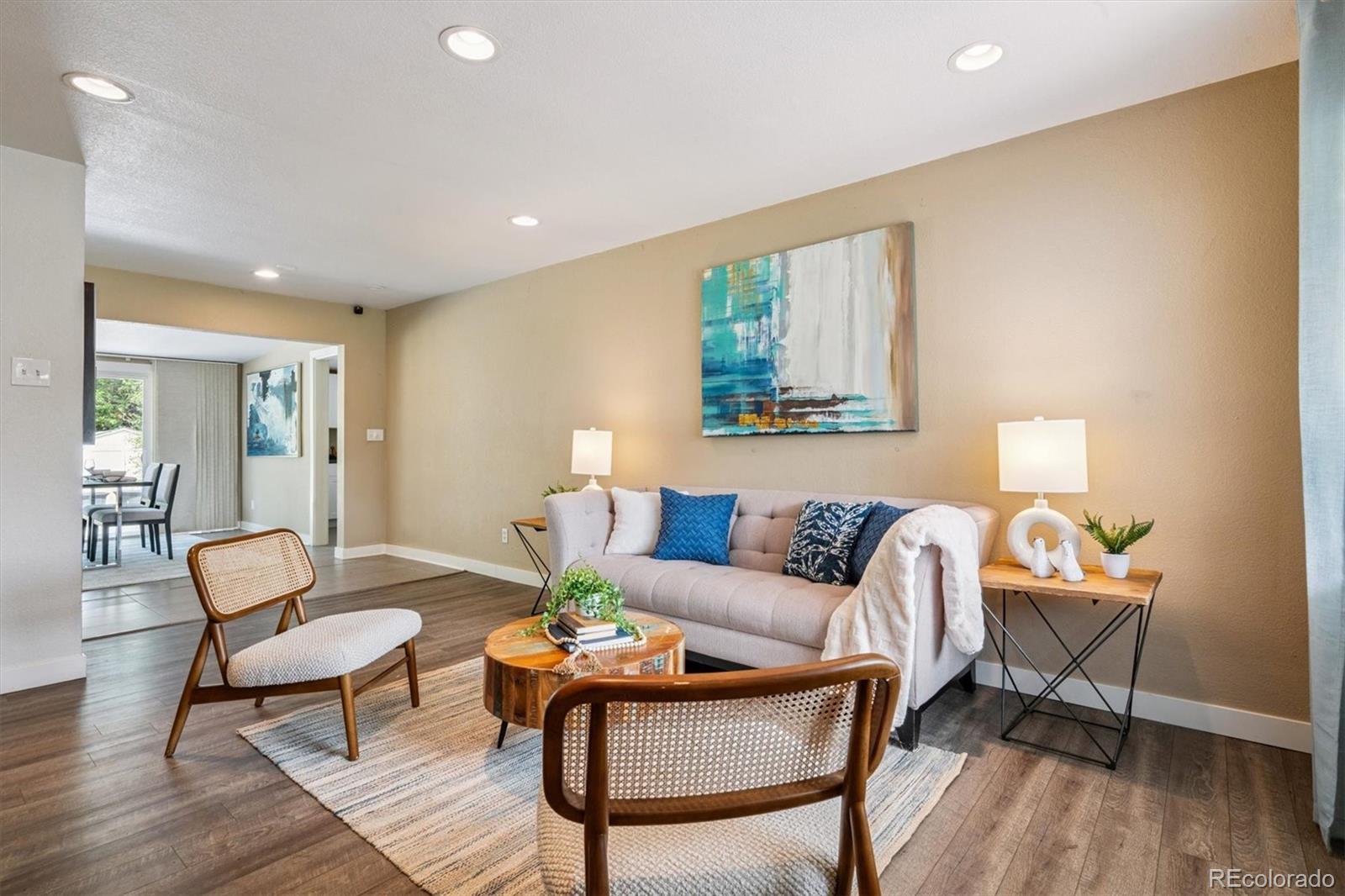 Welcome to 5251 E Dartmouth Ave in the well established neighborhood of University Hills. This delightful single-family home offers 1,261 square feet of thoughtfully designed living space, including 2 bedrooms and 1 beautifully updated bathroom. The open floor plan allows for seamless transitions between the living areas, perfect for entertaining or relaxing with loved ones. The heart of this home is the eat-in kitchen, with granite counters, a convenient breakfast bar, dining room, and a wall of sliding glass doors overlooking the backyard. The primary bedroom is spacious enough for a king bed and has a custom walk-in closet. The home has been updated with LVP flooring, new dishwasher and oven, added A/C unit, custom blinds at sliders, and a garage door opener. Steps from the High Line Canal Trail, Eisenhower Park & Rec Center, and the Wellshire Golf Course, plus a short drive to the University of Denver, shopping and restaurants. Don't miss your opportunity to see this home for yourself!