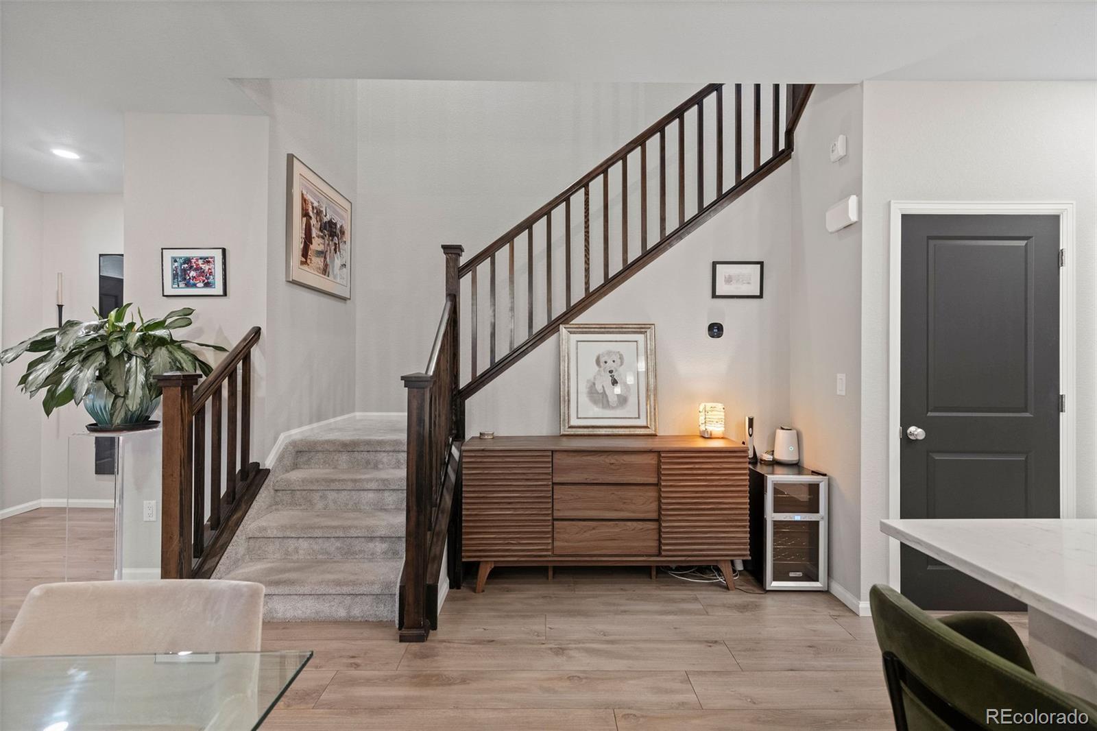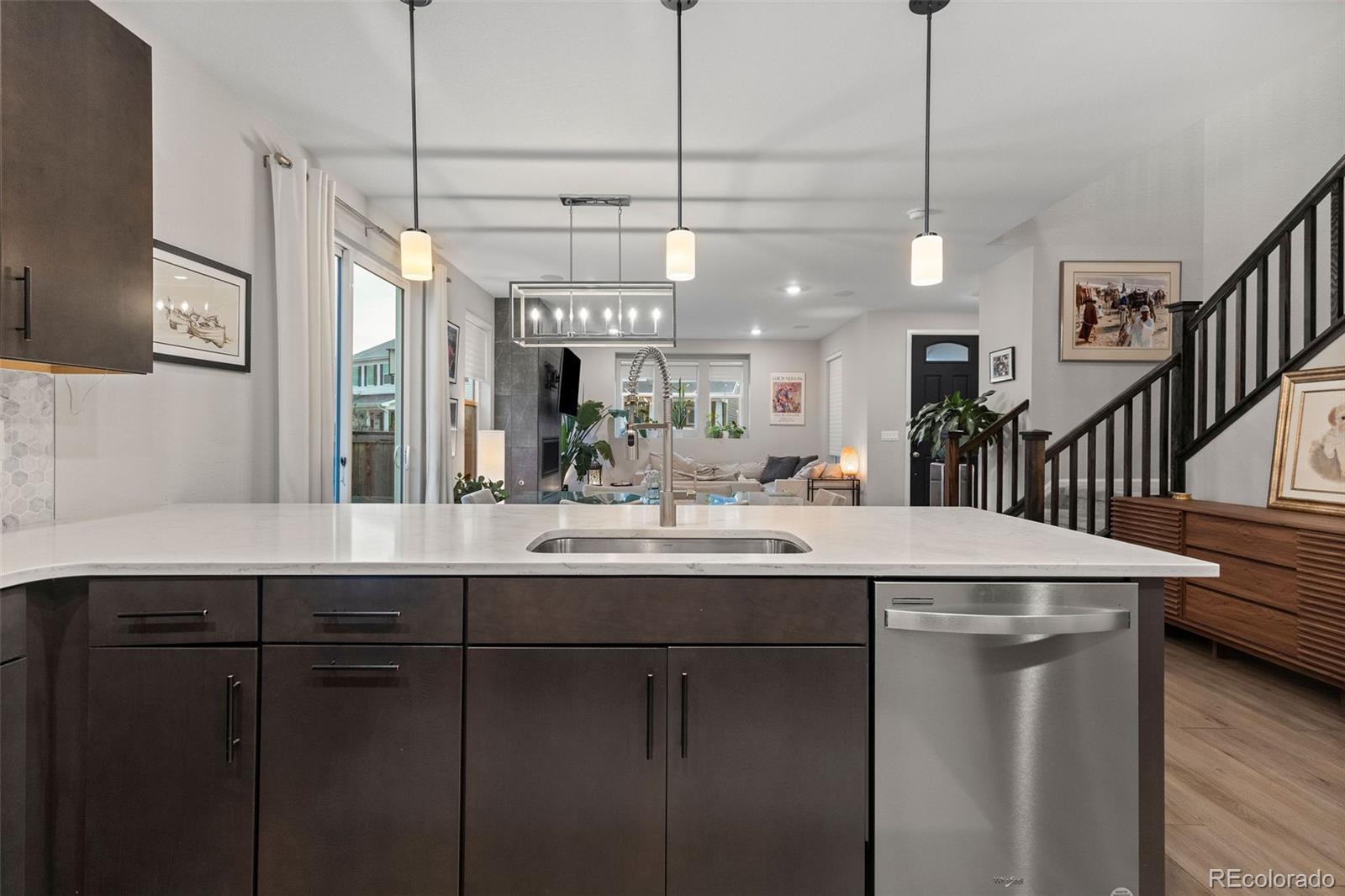 Experience modern living in one of Denver’s most sought-after neighborhoods. This stunning townhome blends contemporary design with thoughtful functionality, offering 4 bedrooms, 4 bathrooms, and over 2,500 finished square feet of beautifully curated space. Step inside to an open-concept main level designed for connection and comfort, anchored by a spacious living room with a cozy fireplace and expansive windows that bathe the interior in natural light. The gourmet kitchen features sleek cabinetry, a spacious kitchen peninsula with bar seating, and stainless steel appliances, seamlessly flowing into the dining area. Upstairs, the primary suite feels like a private retreat, complete with a luxurious en suite bath and generous walk-in closet. Two additional bedrooms, a full bath, a loft, and a convenient laundry room complete the upper level. The finished basement offers versatile living space with a fourth bedroom, bathroom, and flexible area ideal for a media room, gym, or guest suite. The fenced yard offers a generous outdoor area, comparable to many single-family residences. Enjoy low-maintenance living with a two-car attached garage and access to all the Central Park amenities, such as parks, trails, pools, and top-rated schools, which are just moments away. Built in 2021, this home delivers the perfect balance of style, efficiency, and location in the heart of Denver’s most vibrant master-planned community.