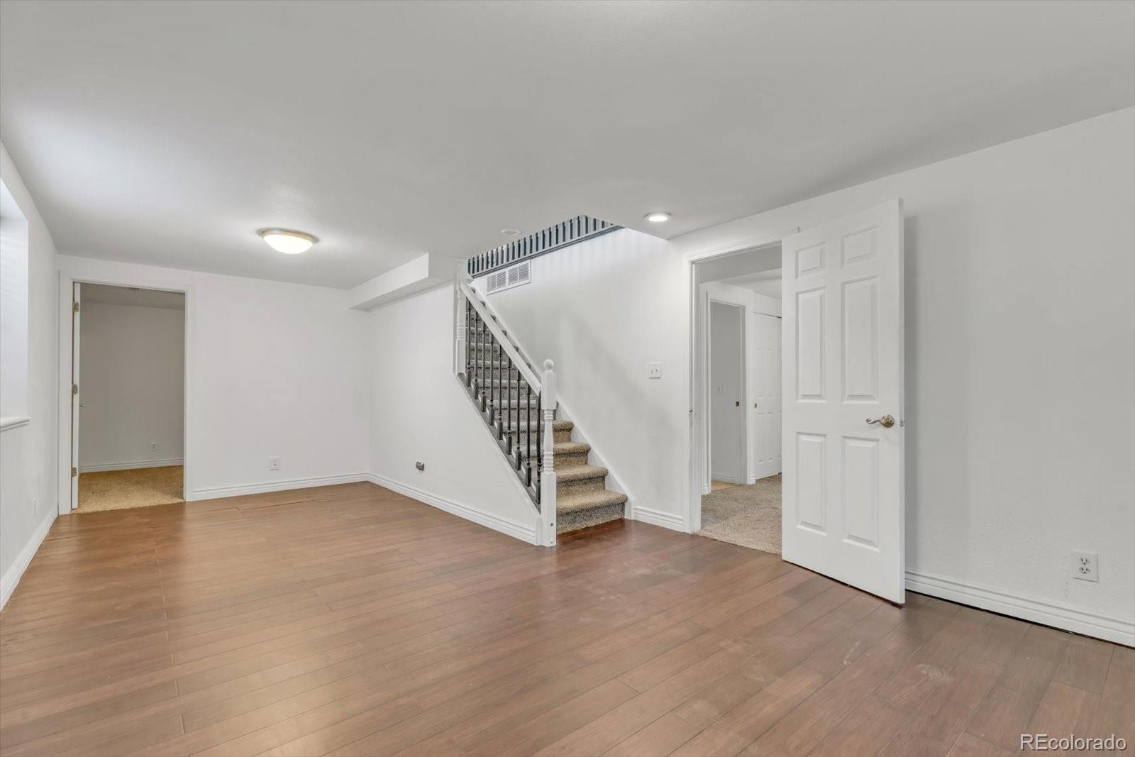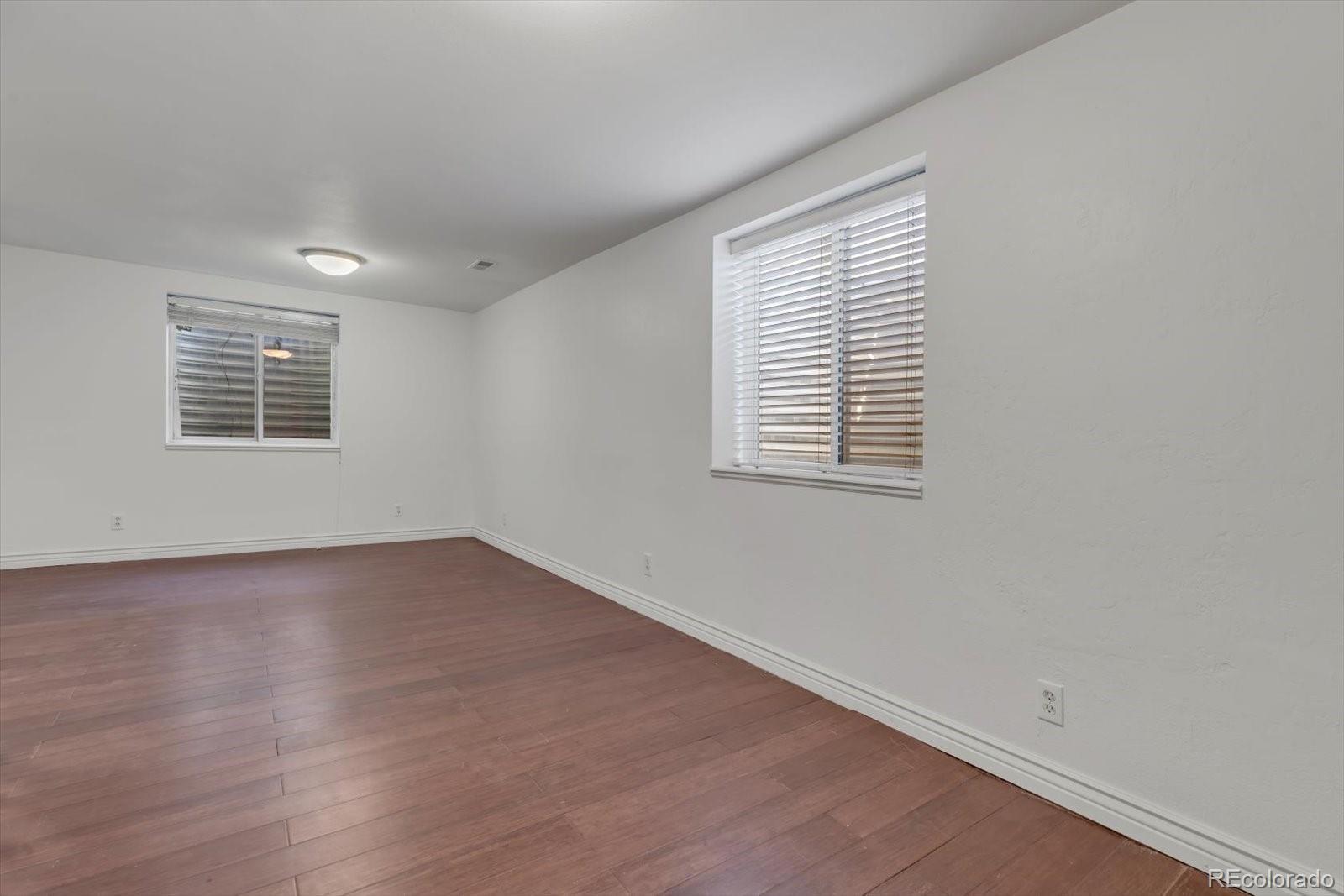 Welcome Home! This inviting three-bedroom, two-bathroom ranch offers 1,890 square feet of comfortable living space for everyone to spread out and enjoy. The rare, oversized garage is a huge bonus, providing plenty of room for vehicles, storage, or hobbies. With fresh interior and exterior paint, this home is move-in ready and waiting for its next owner. You’ll love the open flow between the living room, dining area, and kitchen—perfect for both everyday living and entertaining. Hardwood floors span the main level, adding warmth and character throughout. The kitchen offers easy access to the spacious backyard, making outdoor dining and summer BBQs a breeze. Step outside to a fully fenced yard—an ideal space for kids, pets, and gatherings with friends and family. There’s plenty of room for yard games, gardening, or simply relaxing on sunny Colorado afternoons. Downstairs, the finished basement expands your living options with a bright family room featuring egress windows and the primary bedroom with en-suite bathroom, large closet and egress window. There is also the laundry room and a finished bonus room with a closet that could be used as an office, workout room, musician's studio, playroom or be creative and let your imagination run wild. All appliances—including the washer and dryer—are thoughtfully included. Just move in and start enjoying your new home! This home is ideally located near Highway 2, offering quick access to central Denver. Just a few miles from Dick’s Sporting Goods Park for events and Northfield’s endless dining and shopping options, everything you need is close to home. Check it out today!