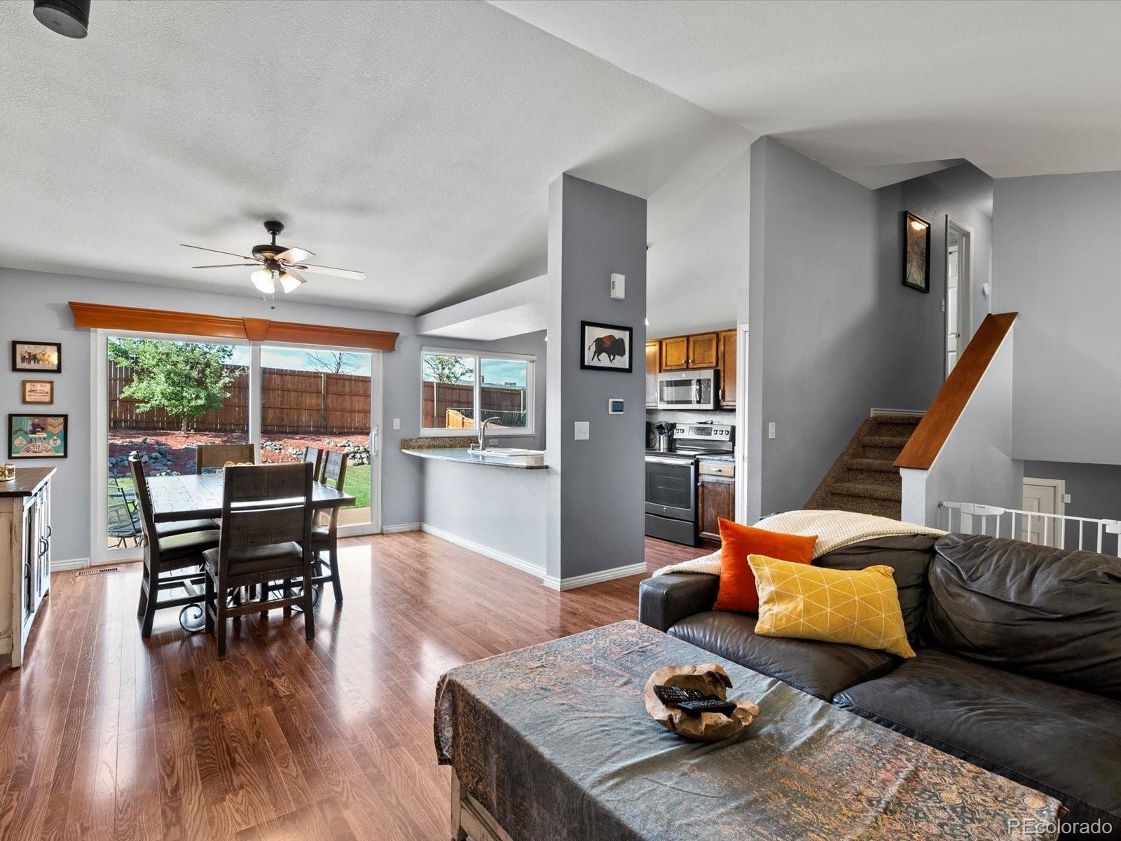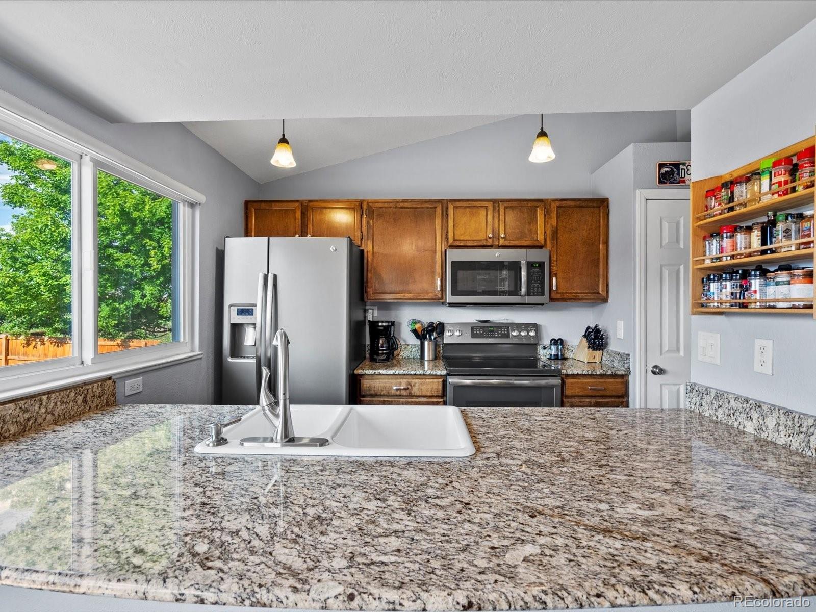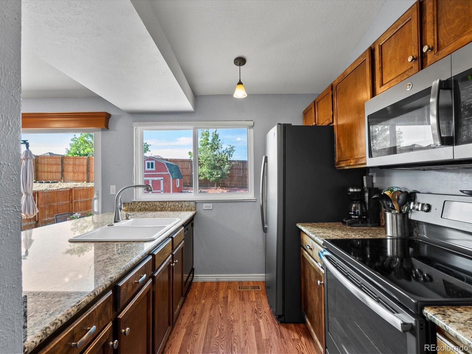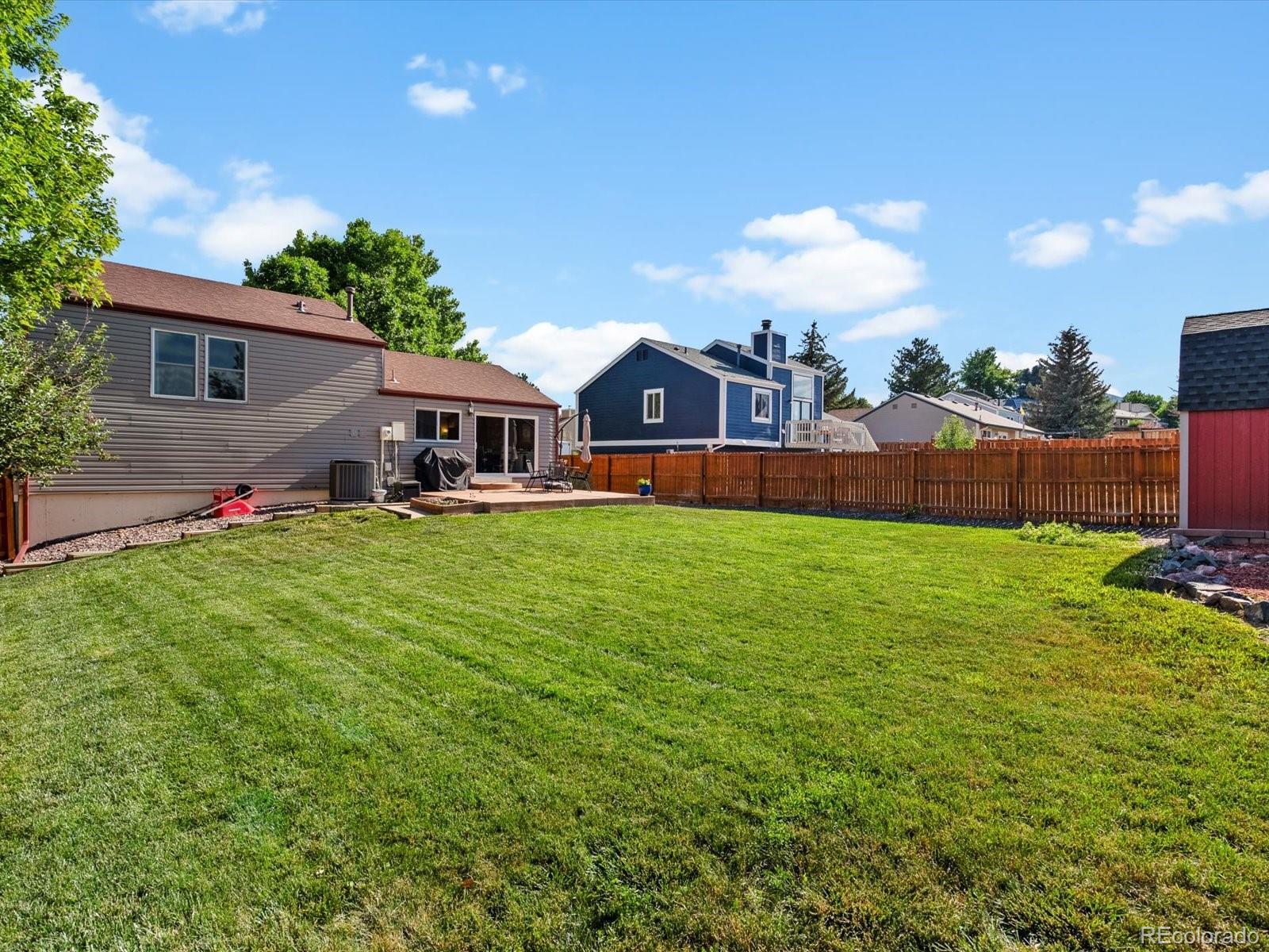 Welcome to this move-in ready home that combines thoughtful updates, cozy comfort, and a location perfect for outdoor adventure and living. From the moment you arrive, you'll appreciate the professionally maintained yard both front and back—wonderful for kids at play or weekend gatherings. The fully fenced backyard offers privacy and peace of mind, while the redone patio is ideal for everything from BBQs to evening unwinding. Updated gutters and a spacious ToughShed add to the home’s functionality, giving you practical storage and low-maintenance peace of mind. Inside, the home is fresh, bright, and turn key. All windows have been replaced, popcorn ceilings removed, and the interior professionally painted. A newer high-efficiency A/C unit and recently installed water heater ensure year-round comfort. The main level features a warm, inviting living area with a cozy ski-lodge vibe—venting is already in place if you wish to add a wood stove for those snowy Colorado evenings. The kitchen, complete with granite countertops and newer stainless appliances, offers practicality while maximizing space. Upstairs, you’ll find three generous bedrooms and a full bath. These bedrooms include updated ceiling fans, modern lighting, and custom closet systems that help keep life organized. The lower level adds a flexible second living space—ideal as a media room, playroom, office, or even a fourth bedroom. A remodeled full bath with a jacuzzi tub and a large laundry room with newer washer and dryer make busy routines easier. Tucked into a friendly neighborhood with wonderful neighbors, this home is just a short walk to both elementary and middle schools—with no major roads to cross. Enjoy scenic walks at Hine Lake with trails and parks all around, grab dinner nearby, or take the light rail into Denver. And with the foothills so close, weekend adventures are always within reach. This home truly checks all the boxes for comfort, convenience, and connection.