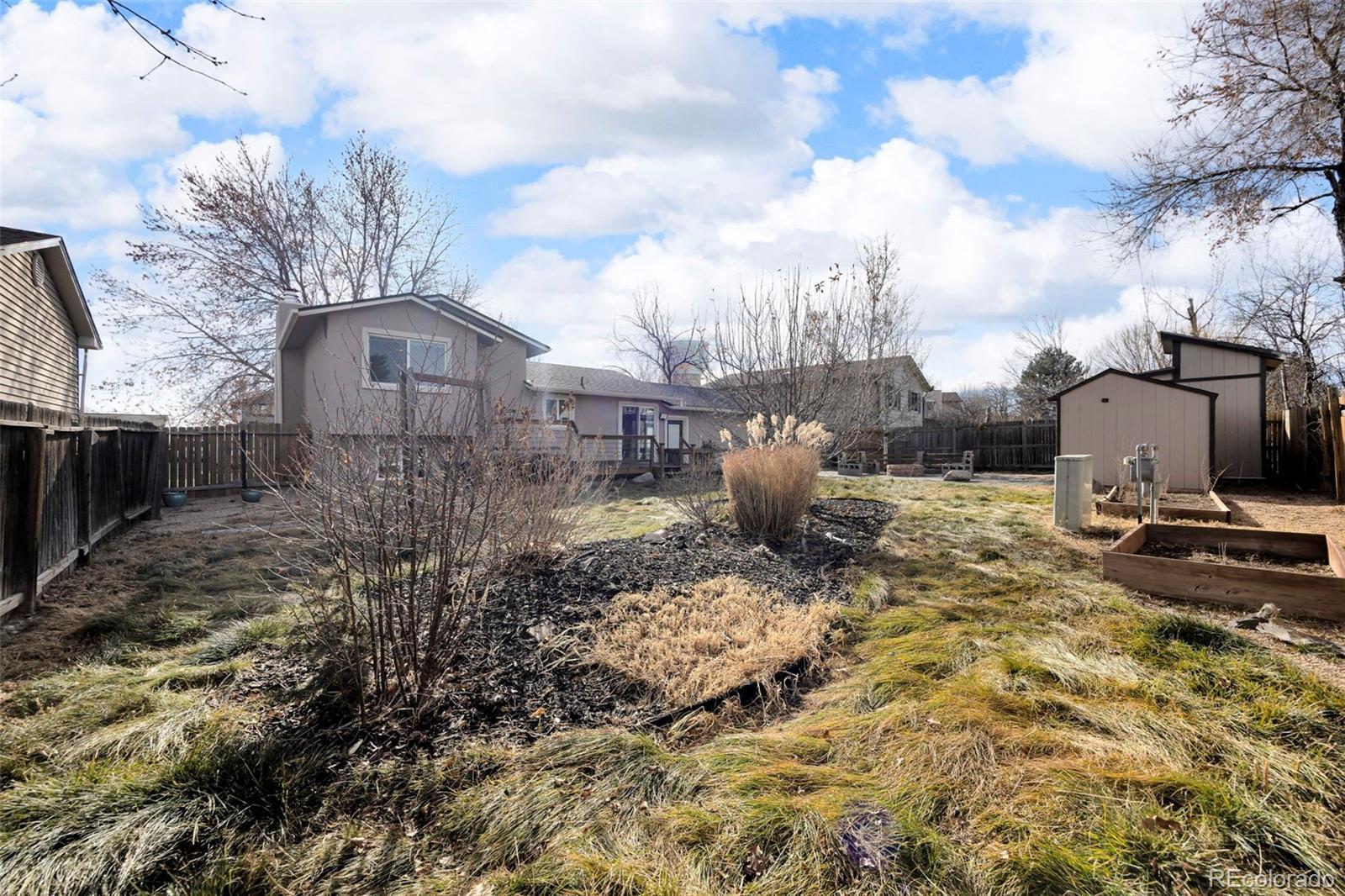 Welcome to this move-in-ready tri-level home in the desirable Sunrise Ridge community, offering a thoughtful layout, modern upgrades, and inviting outdoor living. Inside, vaulted ceilings and durable LVP flooring create a bright, open feel throughout the main living area. The kitchen is both stylish and functional, featuring granite countertops, espresso cabinetry, energy-efficient stainless appliances, and a butcher-block breakfast bar—perfect for everyday living and entertaining. A sliding door off the kitchen opens directly to the backyard, making indoor-outdoor living easy. The lower level functions beautifully as a private primary suite or second living space, complete with a walk-in closet and convenient access to the bathroom and laundry. Two additional bedrooms are located on the upper level, including one with double closets and direct access to a modernized full bath—offering flexibility for guests, family, or home office needs. Outside, enjoy a low-maintenance rock yard with mature trees and a water feature, along with a private backyard designed for entertaining. The space includes a spacious deck with built-in seating, a large patio with fire pit, garden beds, fresh landscaping, and two storage sheds. Additional highlights include an attached garage, electric vehicle charger, updated insulation, thermostat, water heater, and recent improvements to the garage and laundry room. With ample parking, great neighbors, and proximity to Fort Carson, schools, shopping, and commuter routes, this home offers comfort, flexibility, and modern convenience. An excellent opportunity to move right in and enjoy.