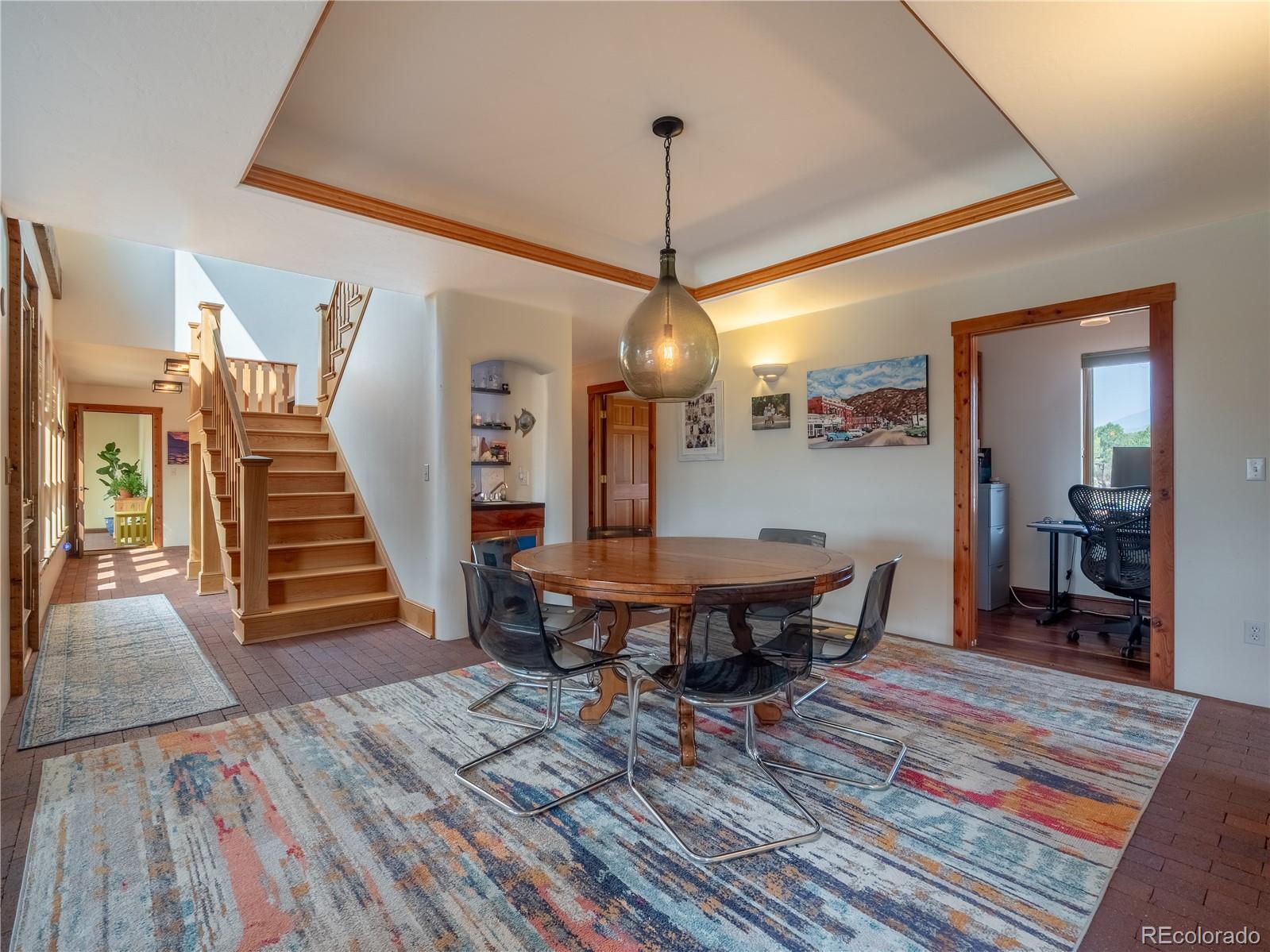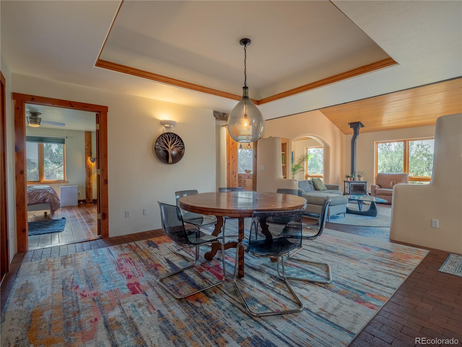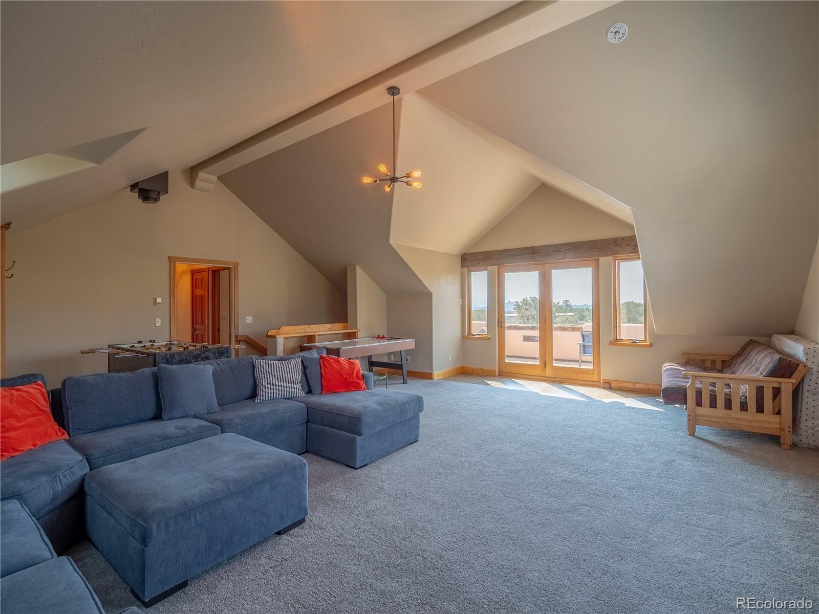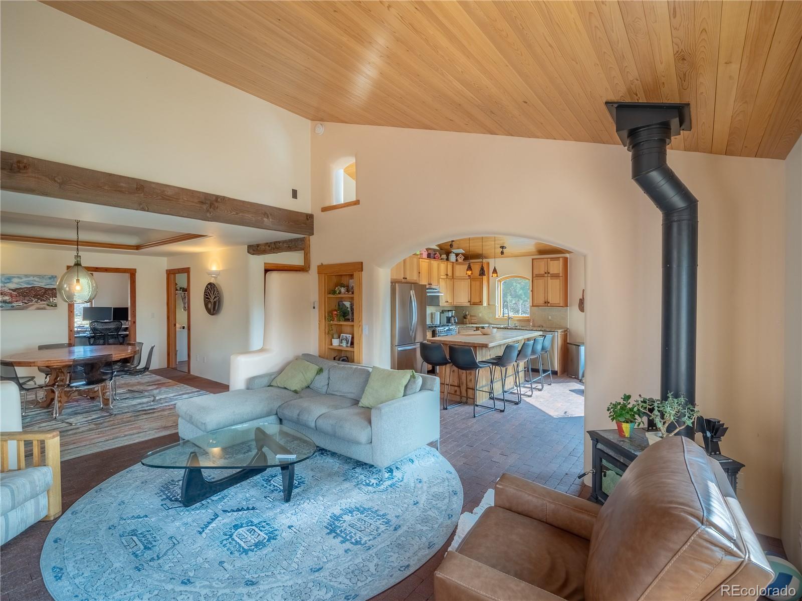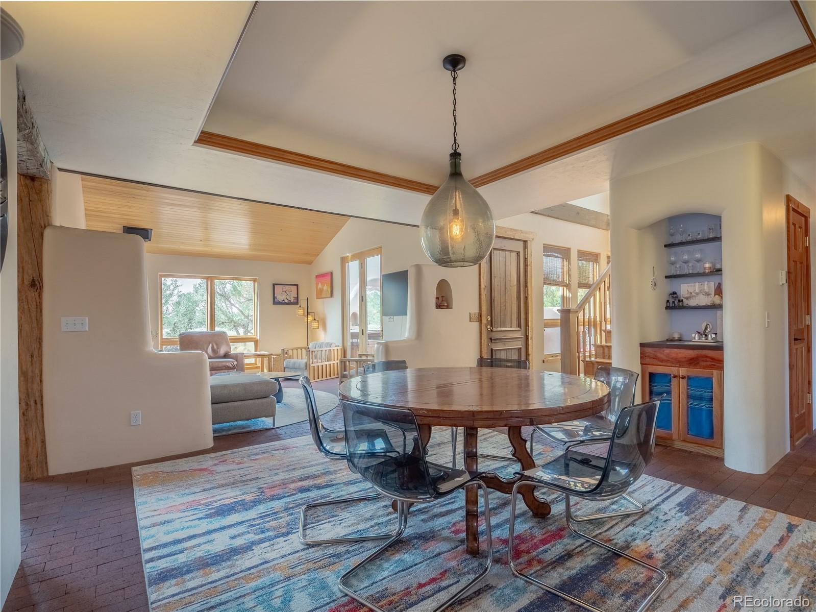 Nestled in a friendly neighborhood with direct trail access to BLM land, this charming Santa Fe-style home offers privacy, character, and adventure right out your front door. Surrounded by magical piñon trees and sweeping mountain views, this is the perfect retreat for nature lovers and those looking to live the mountain dream. Relax and unwind on one of the many decks or patios, ideal for enjoying sunsets and starry nights. Inside, you’ll find classic Santa Fe charm with tongue-and-groove ceilings, a cozy sunroom, and unique architectural touches throughout. The home features: A separate private primary suite-- for ultimate relaxation Spacious bedrooms-- ideal for a large family A bonus locked-off space above the garage — just add a small kitchen and it becomes the perfect rental unit or mother-in-law suite Situated on a 2 acre lot with piñon tree coverage, you'll feel tucked away yet only minutes from world-class fishing, hiking, biking, and rafting on the most epic river in the state. This is truly the deal of the year — ready for you to cozy up by the fire and make your mountain living dream a reality!