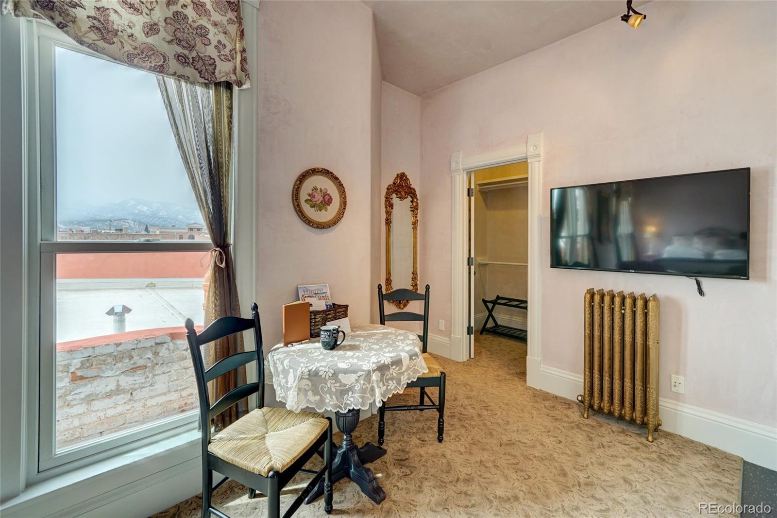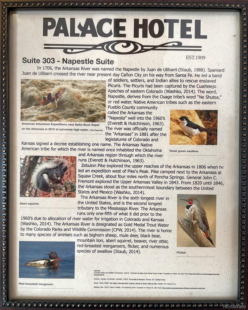 Come and enjoy a magical part of Salida's history in the Palace Hotel Condominiums. Located along the banks of the Arkansas River, this is a fully renovated boutique hotel close to restaurants and shopping. Enjoy everything the great outdoors has to offer including hiking, biking, rafting, skiing, fly fishing and long strolls along side the Arkansas River. The unit comes fully equipped with a full kitchen including stove/oven, bar refrigerator and microwave. This unique rental has a queen size bed and a full size pull-out sofa to make this a fully furnished property. It is turn-key and ready for you and your guests to experience all the amenities of Salida! Heating and cooling with a newer mini-split system. please review city of Salida's current rules and regulations on short term rentals.