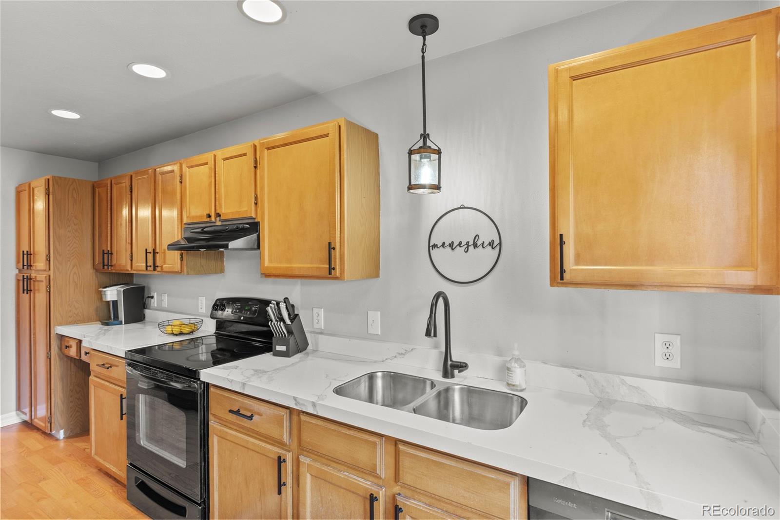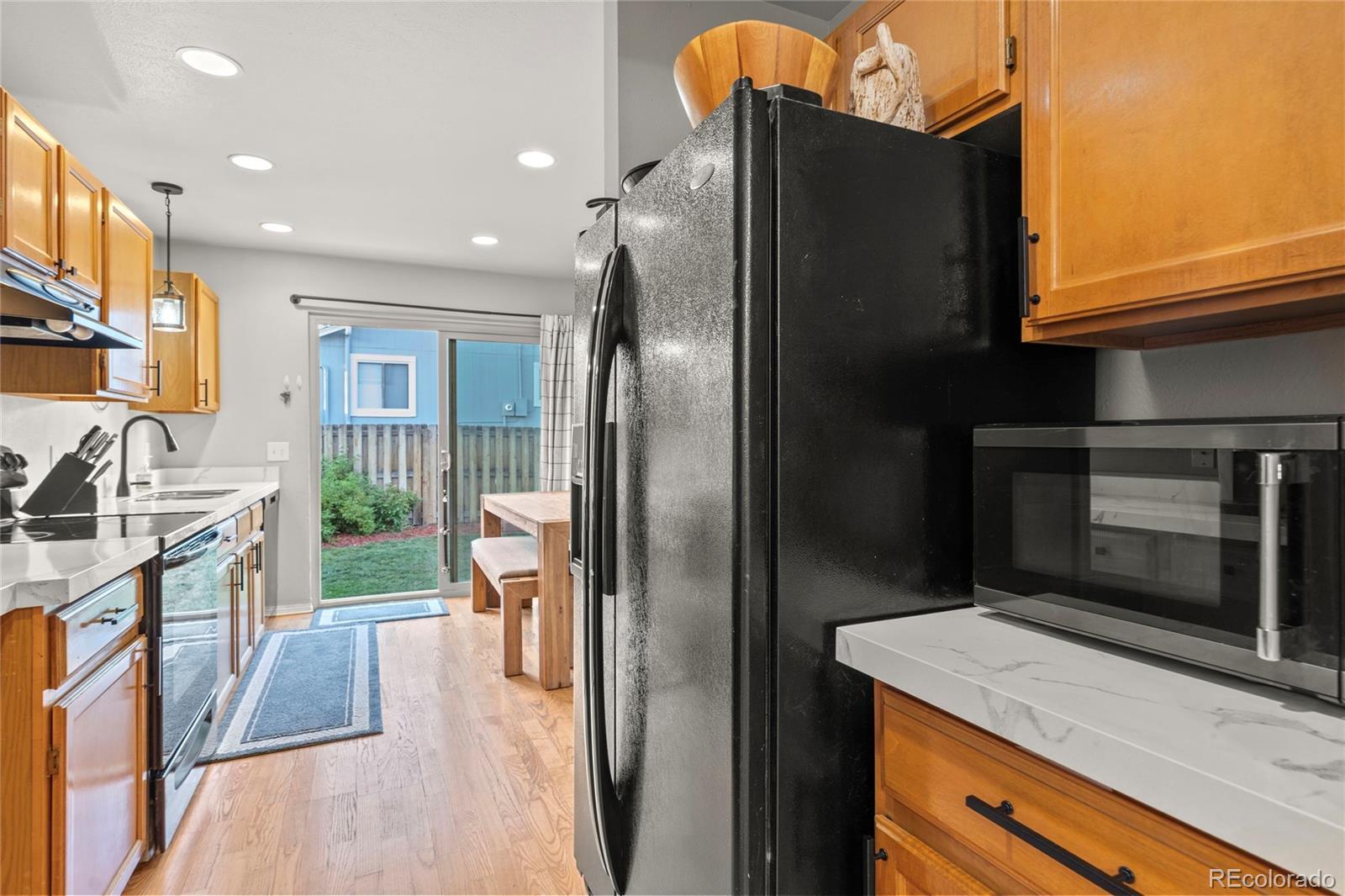 Welcome to this beautifully maintained Arvada home where comfort, style, and community meet. Pride of ownership shines with thoughtful updates inside and out, including a new garage door, front door, exterior lighting, and a refurbished deck. The backyard has been beautifully landscaped with new trees, bushes, expanded gardens, and fresh mulch, complemented by a new fence along two sides of the property. Inside, the updated kitchen features granite countertops, a new dishwasher, and a fresh lighting fixture above the sink. Additional updates include a new swamp cooler, new blinds throughout, two new closet doors, a new water faucet with hose/swamp cooler hookup, granite countertop in one of the bathrooms and charming board-and-batten detail in the nursery. The layout is ideal for everyday living, with an open main floor flowing into a deck perfect for grilling and relaxing. Upstairs, enjoy three spacious bedrooms including a primary suite with a private bath and exceptional shower pressure. The partially finished basement offers storage and flexible living space. Large windows and sliding doors fill the home with fresh air and natural light. The spacious two-car garage with shelving and attic storage adds even more functionality. The yard balances easy-care xeriscaping in front with a pet- and garden-friendly backyard. Energy-efficient swamp cooling keeps you comfortable in summer without high bills. The neighborhood offers low HOA fees with perks like trash service, pool access, clubhouse rentals, a large park, and community events. Conveniently located near Costco, Trader Joe’s, multiple King Soopers, Walmart, Old Town Arvada, and major highways, plus high-speed fiber internet is available for work or play. This home blends updates, comfort, and community—ready for you to move in and enjoy! >>>>>>NEW FURNACE INSTALLED 11/22/2025<<<<<<