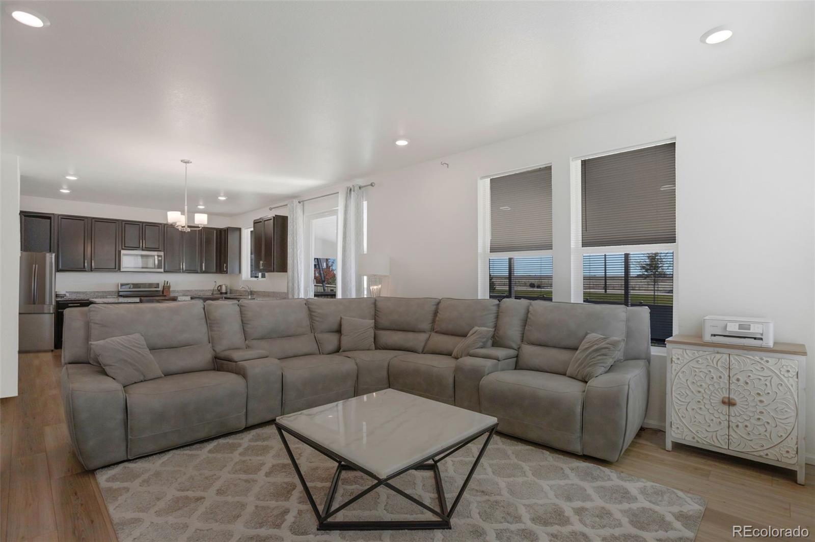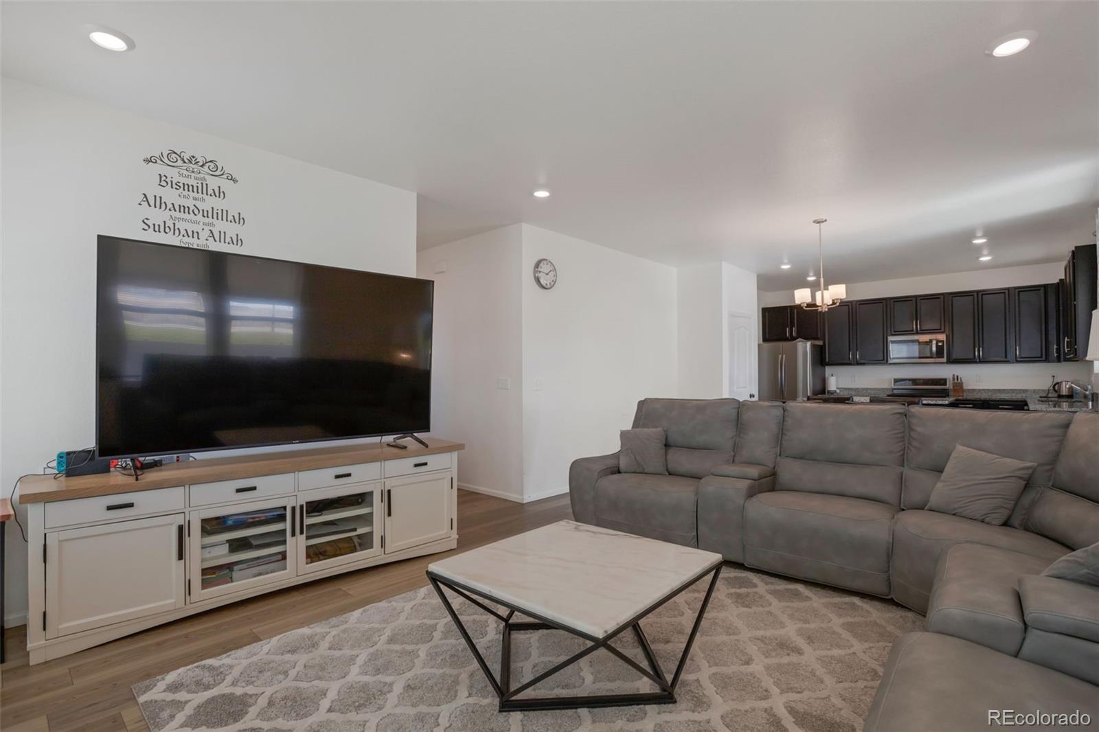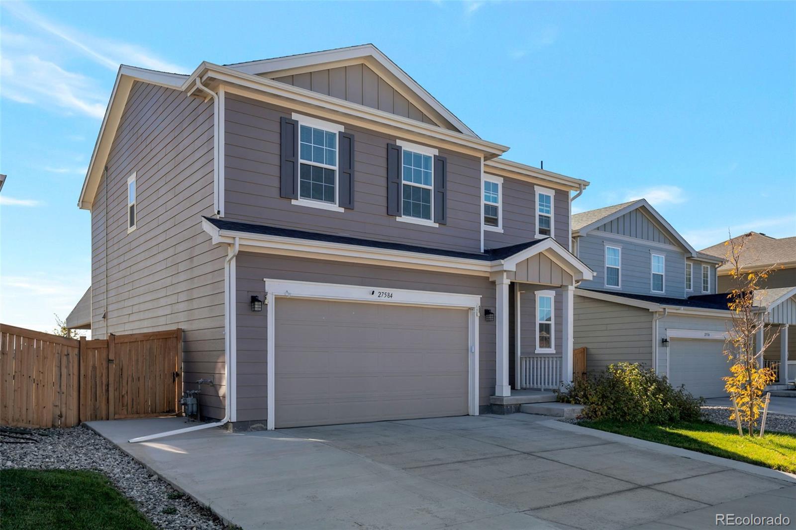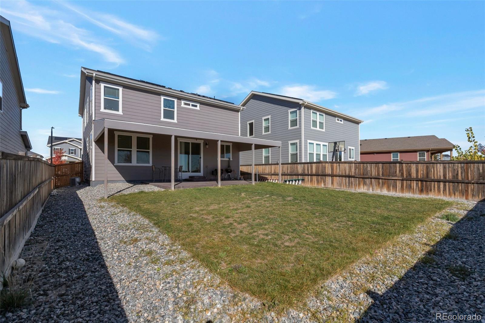 Welcome to this beautiful 3-bedroom, 3-bath home located in the highly sought-after Sky Ranch community. This home features a bright and open floor plan with luxury vinyl plank flooring throughout the main living areas. The gourmet kitchen is equipped with an extended island, generous cabinetry, and pantry—perfect for everyday living and entertaining. Upstairs, you'll find a spacious loft ideal for a home office, media space, or play area, along with a convenient laundry room and a luxurious primary suite with a 5-piece bath. Step outside to enjoy the large covered patio and fully fenced backyard—great for relaxing or entertaining. Situated on a premium corner lot, this home offers added privacy and plenty of outdoor space. With easy access to I-70, E-470, DIA, and downtown Denver, this move-in ready home offers comfort, convenience, and style in a growing community.