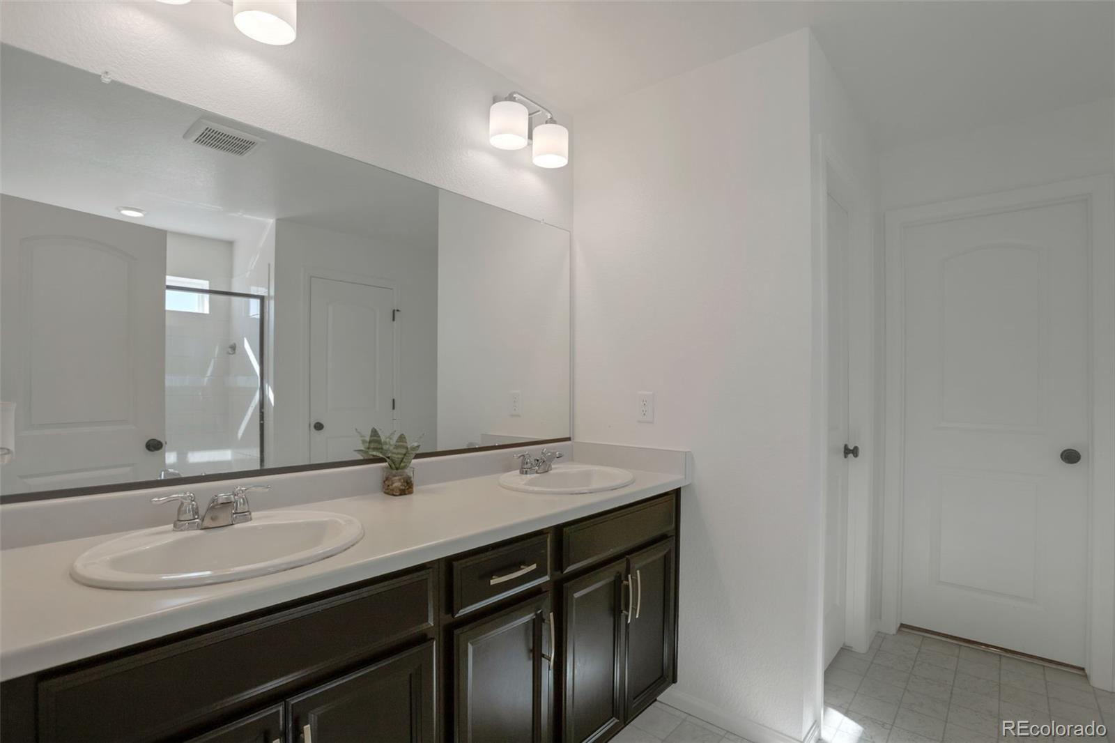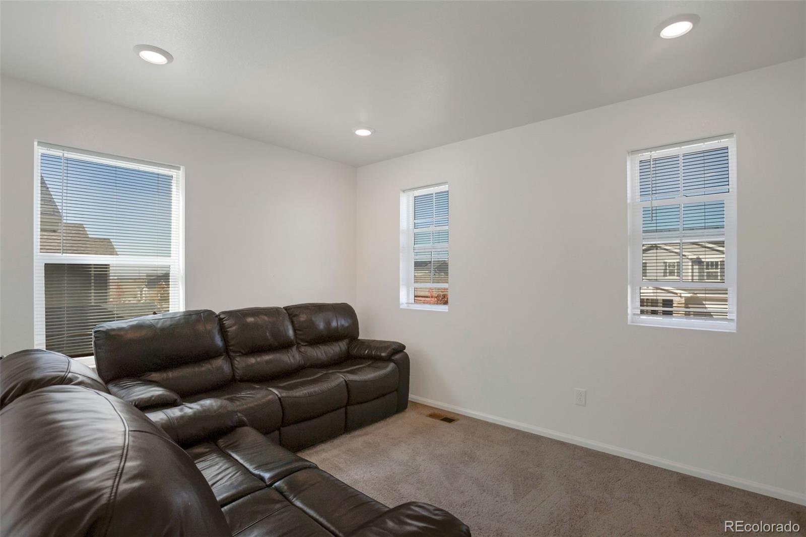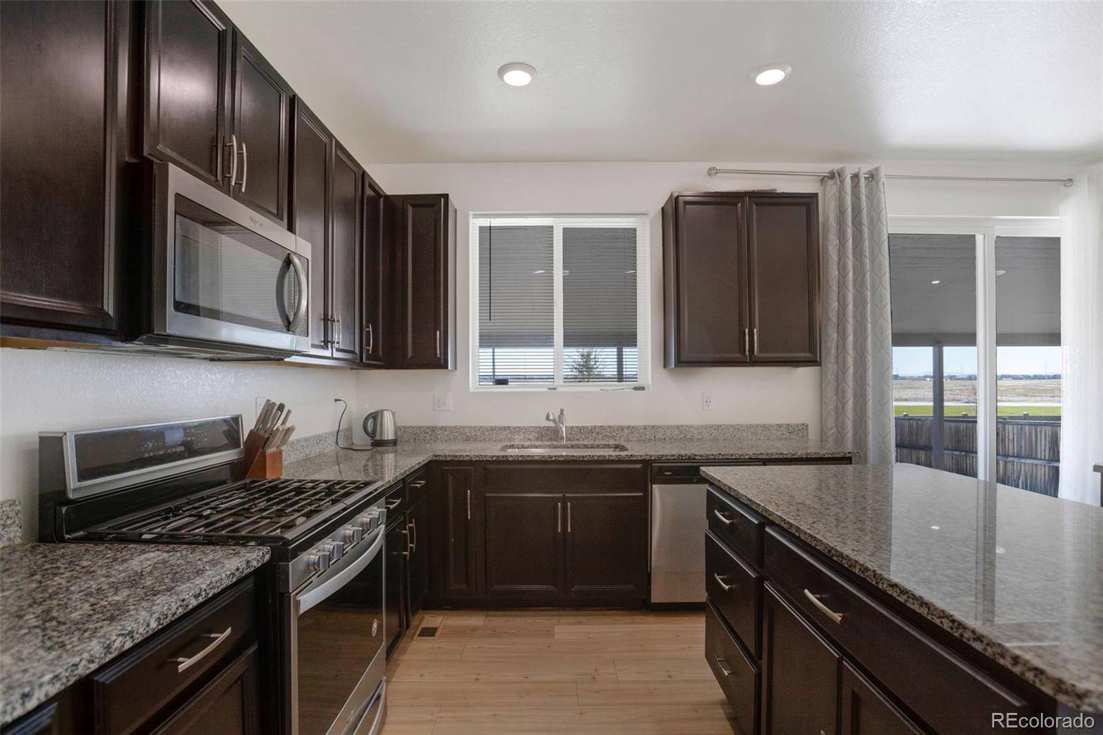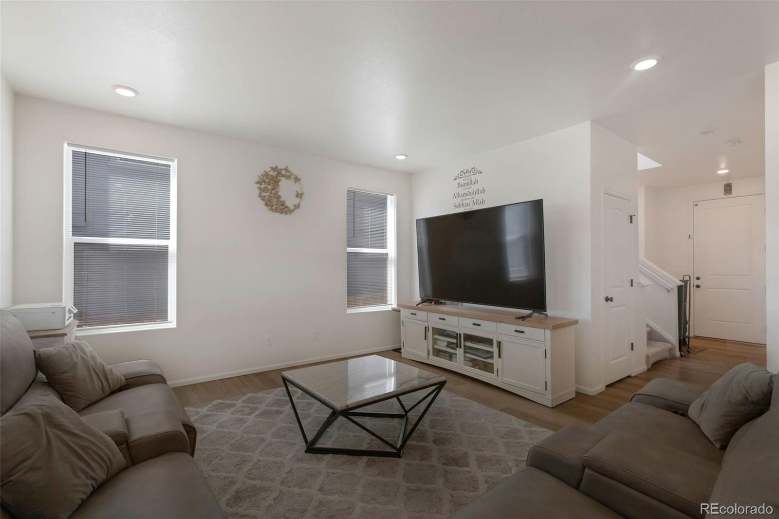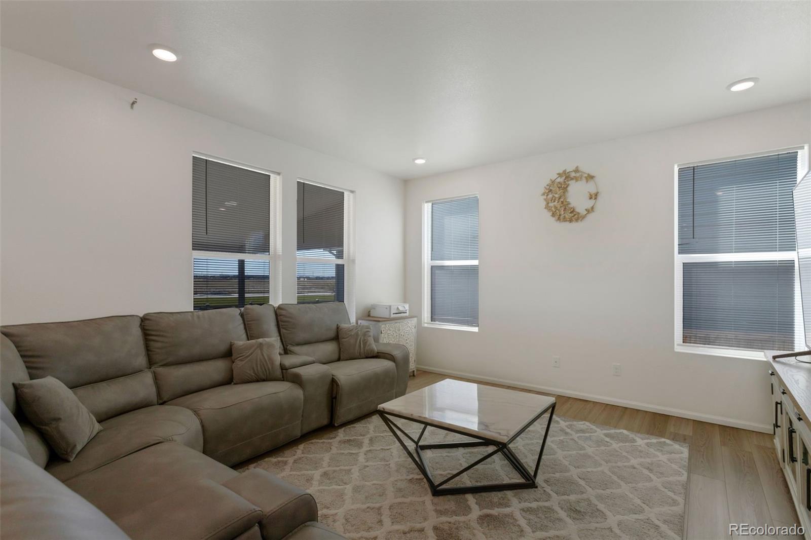 Welcome to this beautiful 3-bedroom, 3-bath home located in the highly sought-after Sky Ranch community. This home features a bright and open floor plan with luxury vinyl plank flooring throughout the main living areas. The gourmet kitchen is equipped with an extended island, generous cabinetry, and pantry—perfect for everyday living and entertaining. Upstairs, you'll find a spacious loft ideal for a home office, media space, or play area, along with a convenient laundry room and a luxurious primary suite with a 5-piece bath. Step outside to enjoy the large covered patio and fully fenced backyard—great for relaxing or entertaining. Situated on a premium corner lot, this home offers added privacy and plenty of outdoor space. With easy access to I-70, E-470, DIA, and downtown Denver, this move-in ready home offers comfort, convenience, and style in a growing community.
