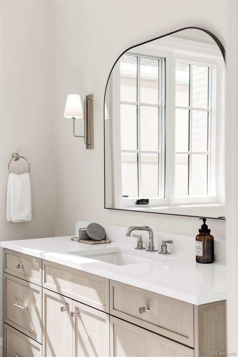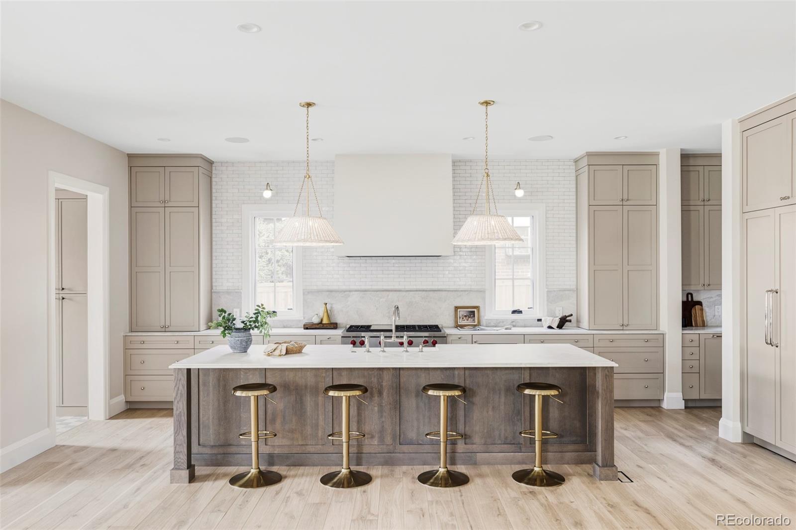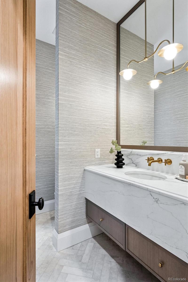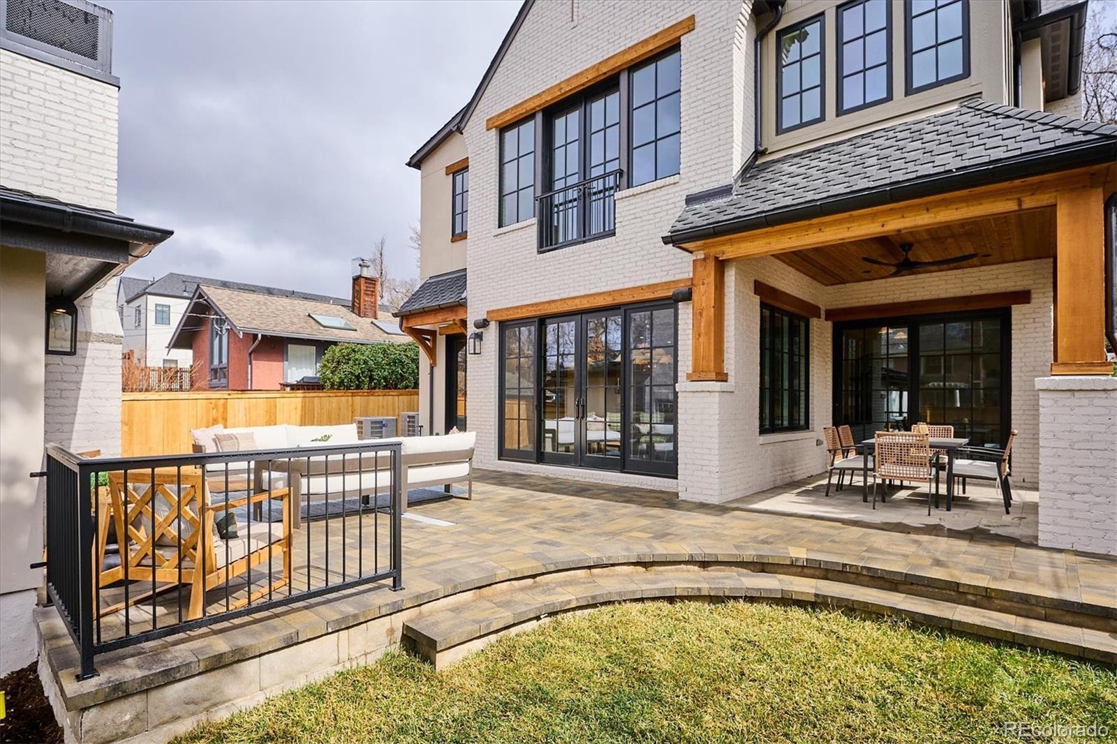 Positioned on a quiet, tree-lined street in East Wash Park, 525 S High Street delivers a seamless blend of classic charm and contemporary luxury. Elevated finishes and exceptional craftsmanship are evident in every aspect of this home. Custom millwork throughout, featuring white oak cased openings, ceilings, and doors. The main level opens to a grand, two-story foyer with expansive windows that flood the space with natural light. Gourmet kitchen featuring natural stone countertops, custom cabinetry, and Wolf and Sub-Zero appliances. An additional back kitchen offers extra prep space, complete with a second dishwasher and sink, double oven, and a spacious walk-in pantry. The primary suite boasts vaulted ceilings, a sitting room, and a cast limestone fireplace. The spa-like five-piece bath features heated marble floors and a steam shower. The fully finished lower level is an entertainer’s dream, featuring a full bar and a recreation room designed for surround sound. It also includes two additional bedrooms, a bathroom, and a dedicated gym. The outdoor living space is equally impressive, featuring an expansive paver patio, an outdoor fireplace, and custom landscape lighting. Additional amenities include pre-wiring for security and professionally installed speakers throughout the main level, primary retreat, lower level, and outdoor patio. Interior design by Pamela Chelle.