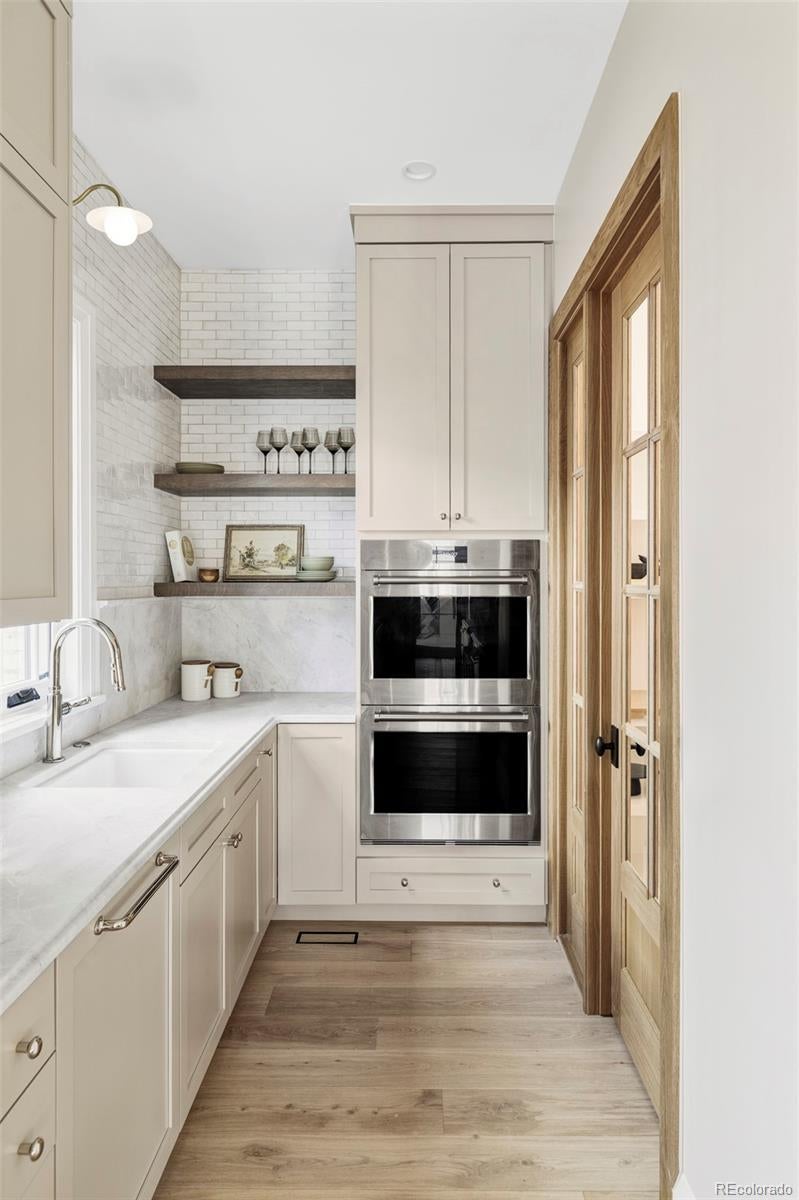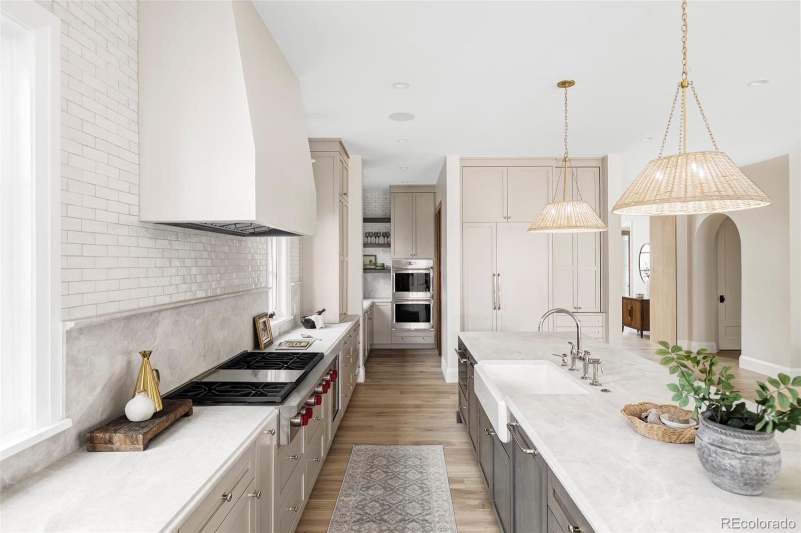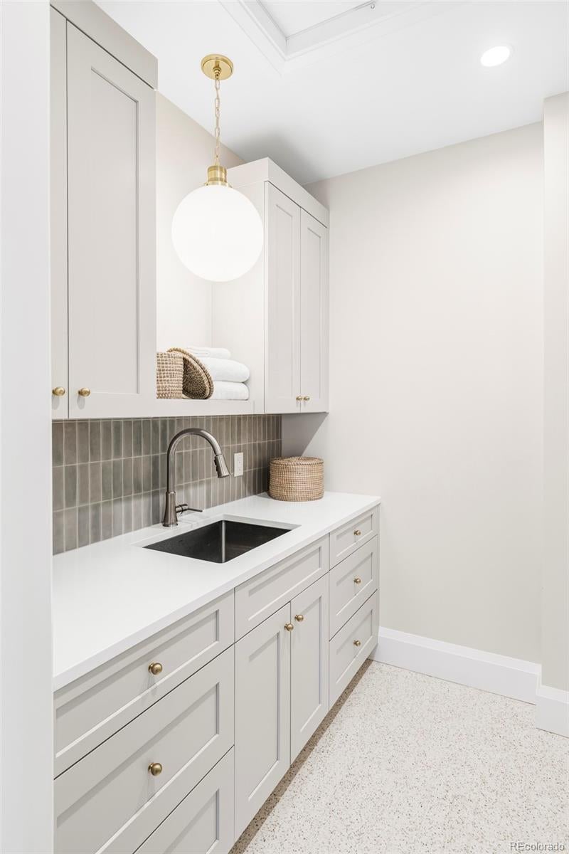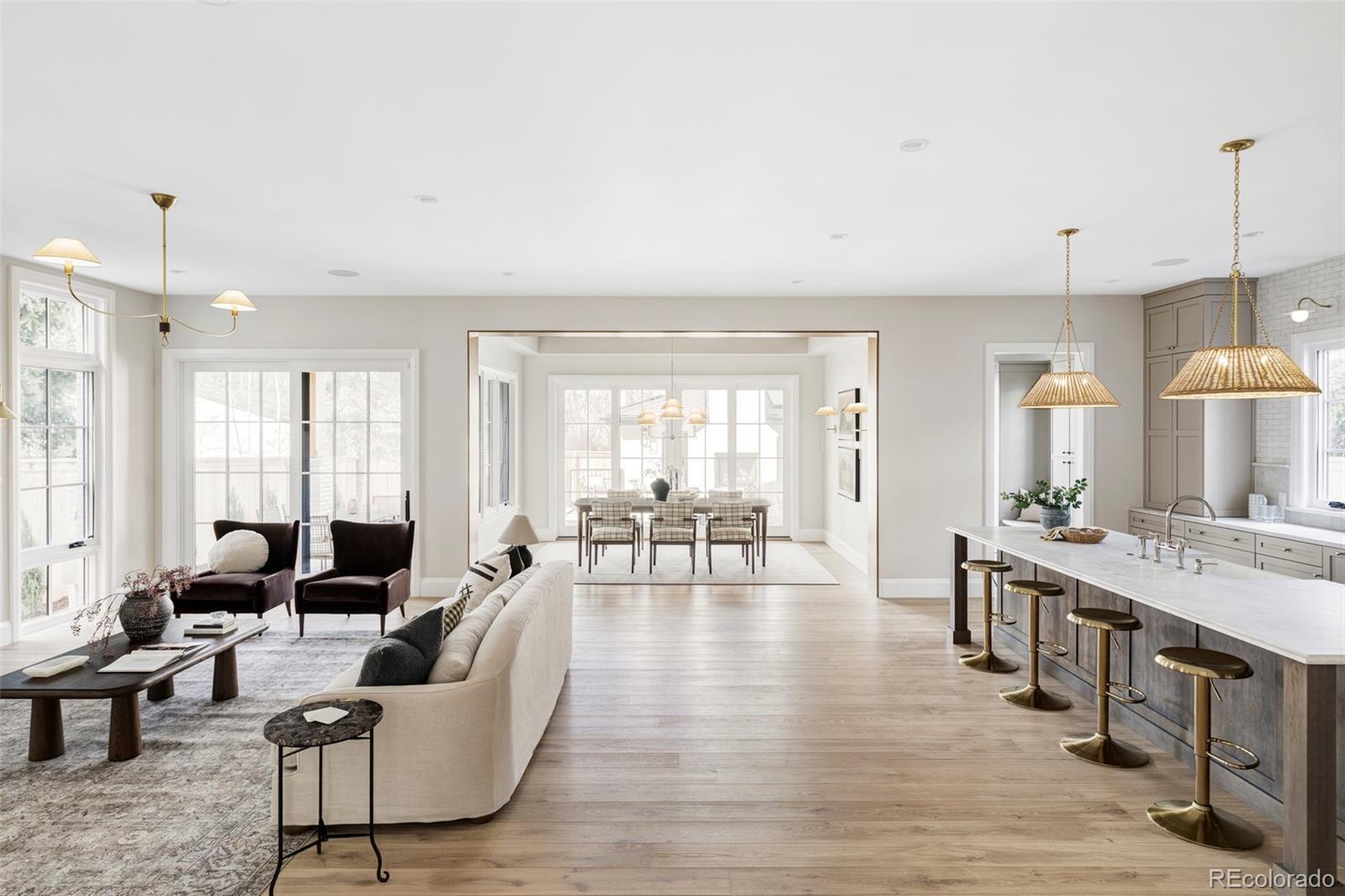 Positioned on a quiet, tree-lined street in East Wash Park, 525 S High Street delivers a seamless blend of classic charm and contemporary luxury. Elevated finishes and exceptional craftsmanship are evident in every aspect of this home. Custom millwork throughout, featuring white oak cased openings, ceilings, and doors. The main level opens to a grand, two-story foyer with expansive windows that flood the space with natural light. Gourmet kitchen featuring natural stone countertops, custom cabinetry, and Wolf and Sub-Zero appliances. An additional back kitchen offers extra prep space, complete with a second dishwasher and sink, double oven, and a spacious walk-in pantry. The primary suite boasts vaulted ceilings, a sitting room, and a cast limestone fireplace. The spa-like five-piece bath features heated marble floors and a steam shower. The fully finished lower level is an entertainer’s dream, featuring a full bar and a recreation room designed for surround sound. It also includes two additional bedrooms, a bathroom, and a dedicated gym. The outdoor living space is equally impressive, featuring an expansive paver patio, an outdoor fireplace, and custom landscape lighting. Additional amenities include pre-wiring for security and professionally installed speakers throughout the main level, primary retreat, lower level, and outdoor patio. Interior design by Pamela Chelle.