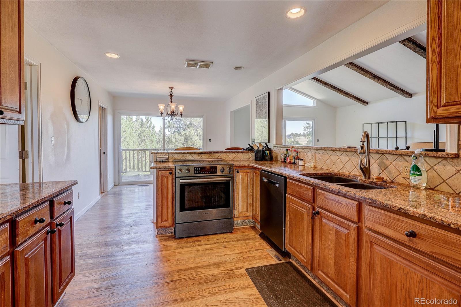 Build some sweat equity in The Pinery at a price well below market value! This 4-bedroom, 3-bath home offers incredible potential with a renovated kitchen, soaring ceilings, and a dramatic stone fireplace on the main floor. The formal dining room opens to the back deck and yard, creating a perfect space for entertaining. On the main level, you’ll find three bedrooms, three remodeled bathrooms, and laundry for convenience. The updated kitchen includes a cozy breakfast nook with sliding doors to the front deck. The lower level is a standout feature with a large mudroom, family room with full kitchen, and an additional bedroom or office. A roughed-in bathroom is ready to finish, allowing you to quickly add value and customize the space to your needs. The lower level is perfect for multi-generational living or use it as a rental. Take advantage of this rare opportunity to secure instant equity enjoying the Pinery lifestyle — deer, turkeys, and peaceful mornings from your front deck or back patio. Just 1.5 miles from Parker Road with nearby bike and walking trails, this location offers both serenity and convenience. Membership to the Pinery Country Club is separate from the HOA. There are different levels of membership; golf, tennis, social. This property is in need of cosmetic repair & yard renovation and the price is reflective of those upgrades. Similar homes are selling for $750,000