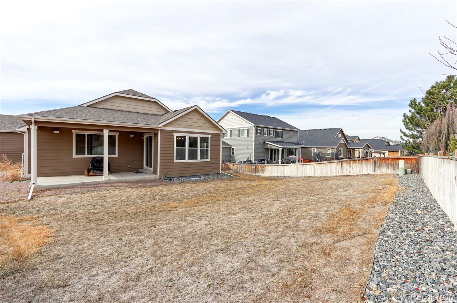 SELLER OFFERING $5,000 IN CONCESSIONS WITH ACCEPTABLE OFFER! If you are looking for a newer, spacious ranch home, with 4 bedrooms on the main floor and extra upgrades throughout then welcome home! The main level creates easy living with an open floorplan and 4 bedrooms, 2 full baths (4 pc. & 5 pc.), laundry and the sunroom area which adds extra square footage off the kitchen. The expansive finished basement adds another level of living space and includes a large open area, the 5th bedroom, ¾ bath, walk-in closet, rough-in for a wet bar, wiring for movie theatre area plus 2 more rooms for storage /flex space. That’s a total of 5 bedrooms, 3 baths and 3761 total finished square feet of living space to enjoy immediately. The upgraded gourmet premier kitchen includes everything a chef could wish for including granite counters, gas cooktop, double oven, huge pantry, large island with seating, 42” cabinets and all stainless steel appliances. The sunroom is an extension of the kitchen which allows for more entertaining space, as well as direct access to the back porch if the party moves outside. The adjacent great room, with the gas fireplace, surround sound is the perfect area to relax and recharge. Other perks/upgrades that makes this home stand out from others include: new roof (2023), surround sound in great room and back porch, gas line for backyard BBQ, radon mitigation system installed, water softener, 50 gal. hot water heater, Aprilaire humidifier, Reme Halo air purifier system, water cooler, covered front and back porches, security cameras, 8’ doors, high ceilings, Corian counters in secondary baths/granite in primary 5 piece bath, 3 car garage and front and back sprinklers on over ¼ acre lot. HOA offers many amenities with low dues, including clubhouse, pool, tennis courts, playground & rec center. Located just a few minutes from parks, golf course, trails, DIA, coffee shops, restaurants, and E470 makes commuting easy. Don’t delay – schedule a showing today.
