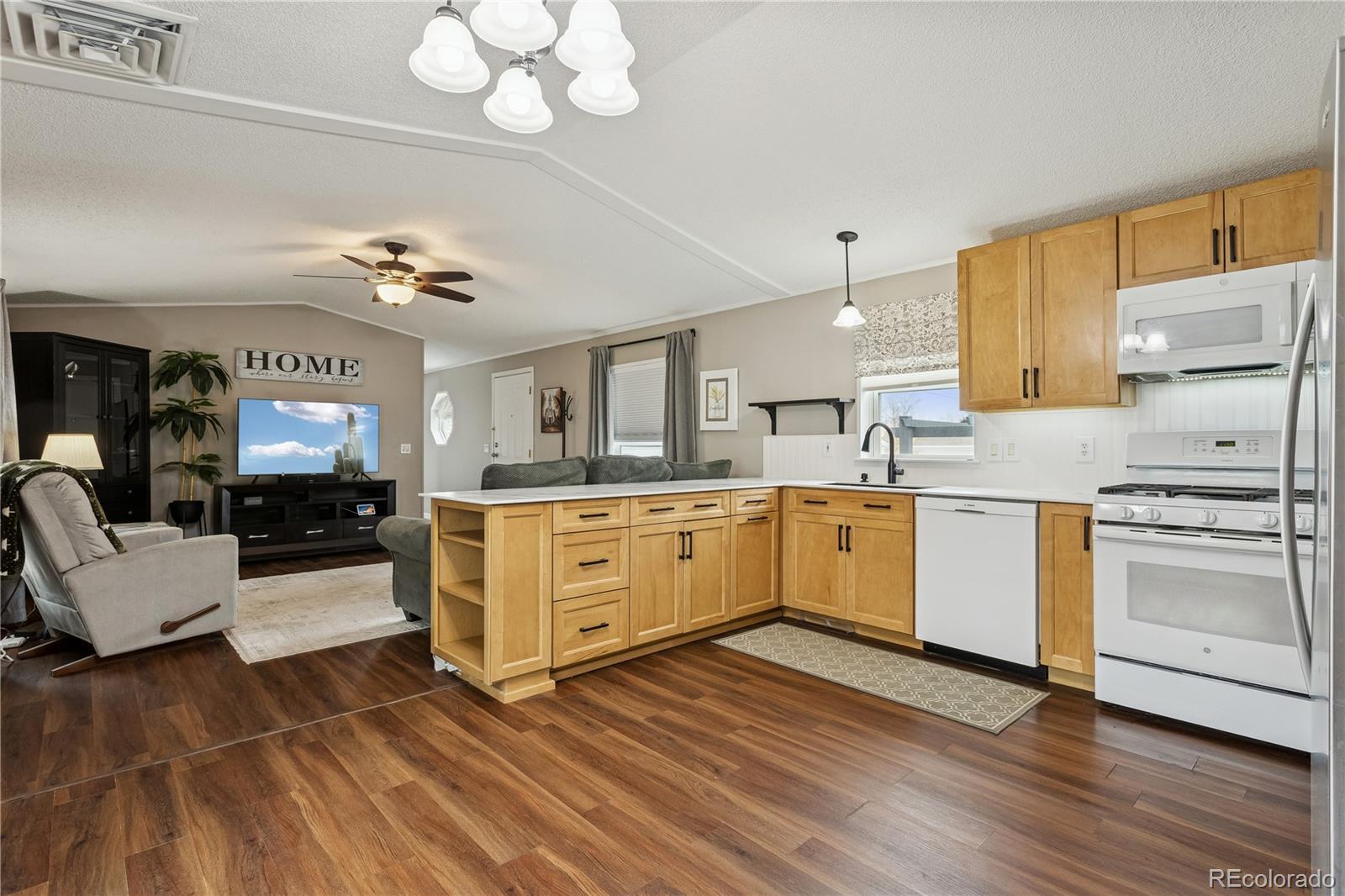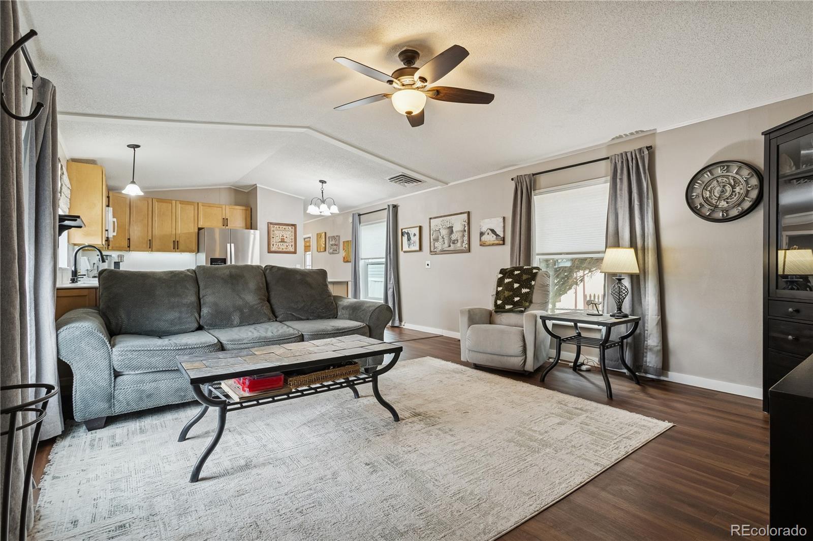 Own a home in Golden Colorado! Own this super clean, well kept home just minutes away from Downtown Golden - the Historic Gold Rush Town known for shopping, dining, entertainment, outdoor rec, and breweries. Welcome home to this stunning 1999 Highland mobile home, offering 16’ x 72’ of thoughtfully updated living space. Walking distance to very well maintained and crystal blue resort pool, playgrounds, basketball courts. This 3-bedroom, 2 full-bath home has been fully remodeled with quality finishes throughout and is truly move-in ready. Interior Features include fresh texture and paint throughout, new luxury vinyl plank flooring, professionally designed remodeled kitchen featuring American Woodmark soft-close maple cabinets (Color: Rye), ThinScape marble countertops, undermount sink and updated fixtures. Remodeled bathrooms including tiled tub and tiled shower, ceramic sinks, updated toilets, and fixtures, updated lighting fixtures. Spacious living areas with new ceiling fans, and window coverings. Other major upgrades include Maytag furnace (2021), forced-air A/C system (2022), Champion rooftop evaporative cooler (2023), double-pane, updated windows throughout most of the home. Enjoy outdoor 365 views of the mountains from this quiet part of Golden with a fully fenced yard. Relax on your inviting front porch, or under the included patio Pergola - perfect for outdoor entertaining or relaxing. Store your garden tools in the 8’ x 8’ storage shed, or 6’ x 3’ utility shed. This beautifully updated home combines modern comfort with practical upgrades, making it an excellent opportunity for comfortable living in Golden, Colorado. Don’t miss your chance to own this exceptional property! Manufactured home lenders available if you should inquire, for a tour or info call 720-896-6752.