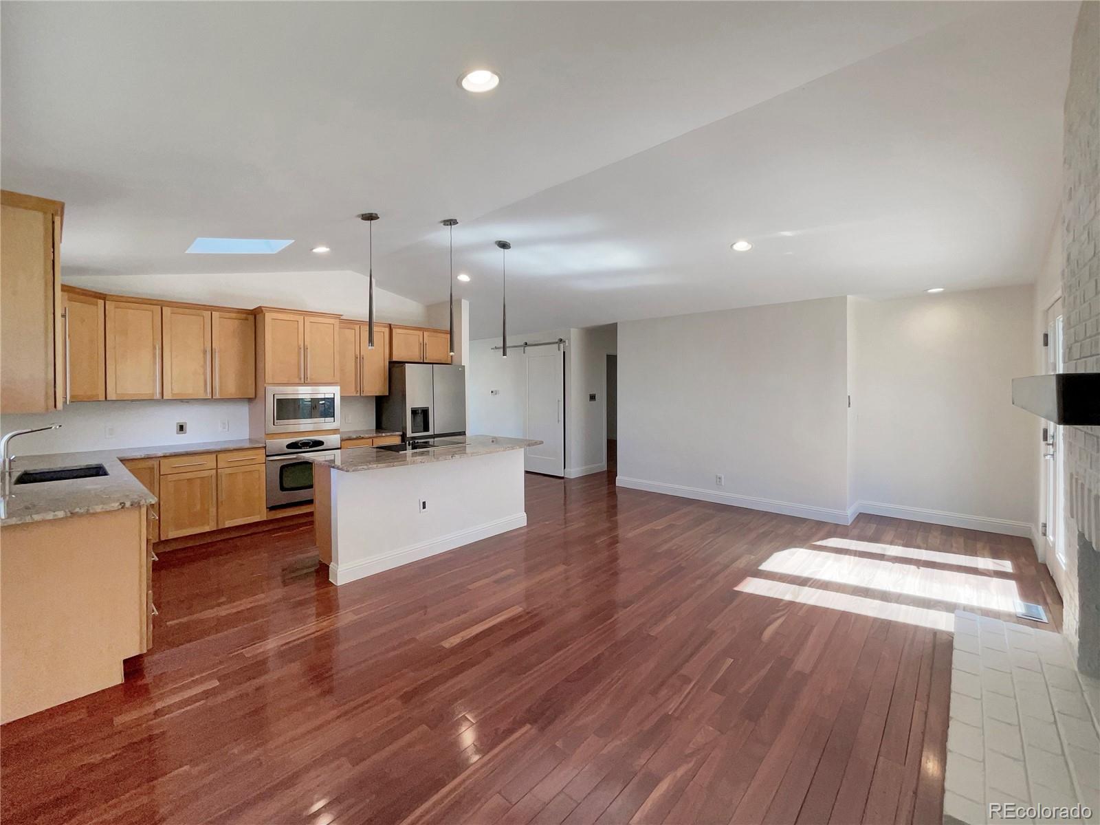 Seller may consider buyer concessions if made in an offer. Welcome home to this charming single-level ranch that blends comfort, style, and an unbeatable location. Sunlight pours across rich hardwood floors, leading you into a spacious living area with a classic brick fireplace just off the kitchen. The oversized kitchen is truly the heart of the home, featuring granite countertops, stainless appliances, abundant cabinetry, and vaulted ceilings that create an airy, inviting atmosphere. Large windows and thoughtful design bring in wonderful natural light throughout the home. With 3 bedrooms and 2 beautifully updated bathrooms, including modern finishes and a calm, spa-like feel, this home is designed for easy everyday living. The unfinished basement offers incredible potential - create a gym, workshop, or bonus storage space. Step outside to a fenced backyard with a welcoming patio, ideal for summer dinners, playtime, or simply enjoying Colorado’s sunny days. A two-car garage adds convenience and extra storage. Located near the SouthGlenn Country Club and the vibrant Streets at SouthGlenn, you’ll enjoy quick access to shopping, dining, recreation, and area amenities. Nestled within the highly sought-after Littleton Public School District.