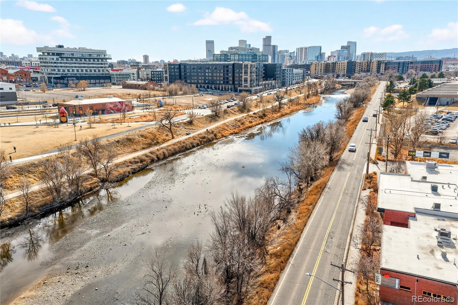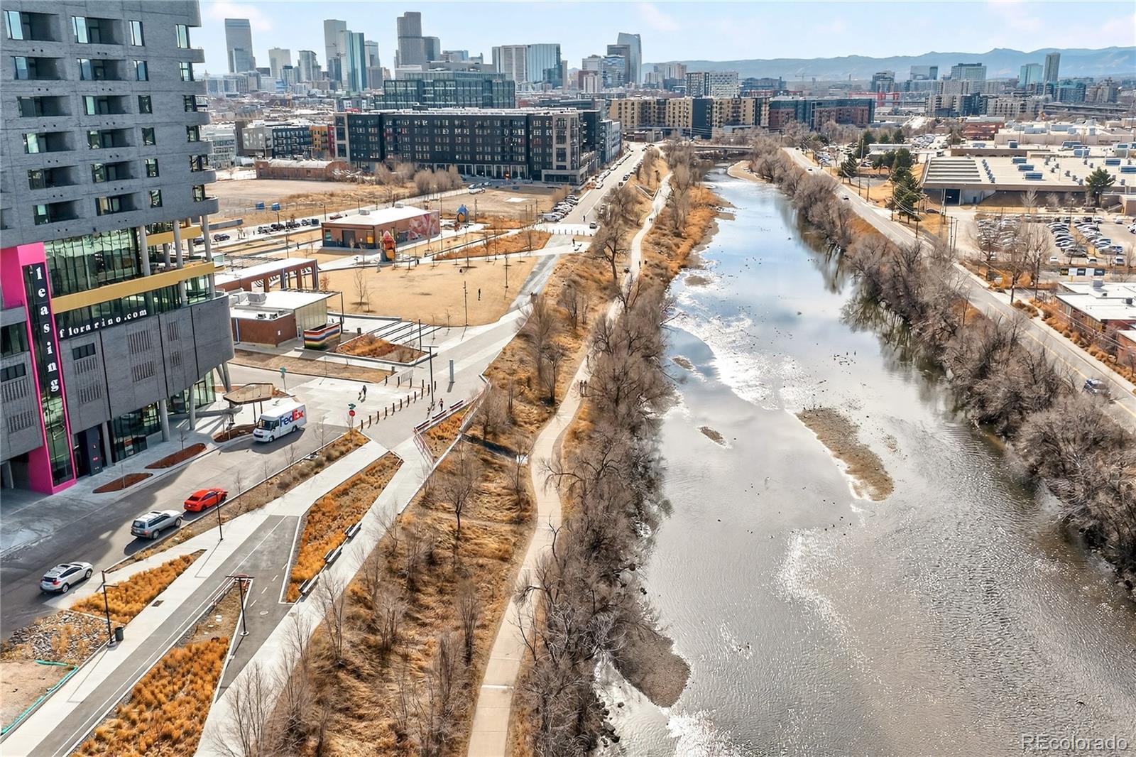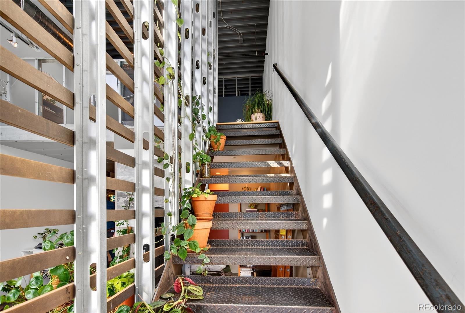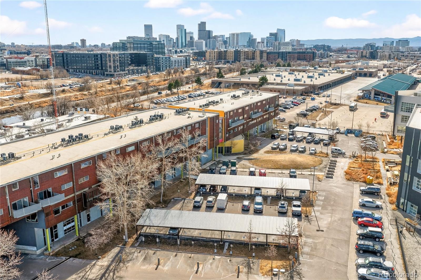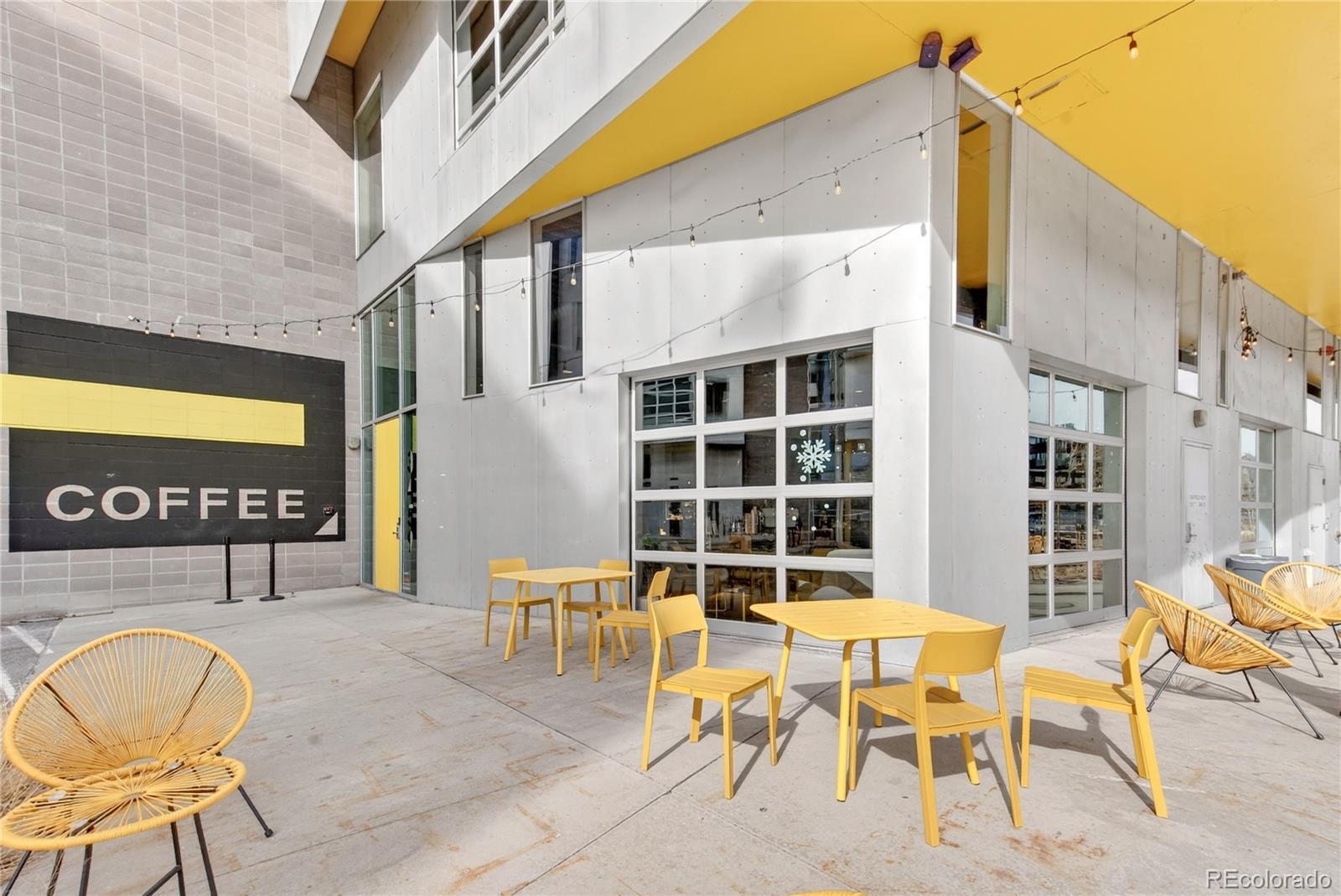 Discover stylish city living in this beautifully updated open light and bright 1-bed, 1-bath loft in the vibrant TAXI community - a dynamic live/work/play neighborhood in Denver’s sought-after RiNo Arts District. At 662 sf with 22 ft ceilings, this thoughtfully designed home pairs modern comfort with urban energy and endless lifestyle conveniences, in a serene and quiet building filled with harmonious architectural and aesthetic appointments at every turn. This unit has been modified to expand the upper bedroom over the kitchen, adding 60 sf to the original floor plan, which allows for a king sized bed with room to spare. The well-appointed kitchen features stainless steel counter tops and shelves, Bosch appliances, and soft-close drawers. Retreat up the custom designed industrial staircase to the bedroom sanctuary, complete with sprung hardwood floors, and a walk-in closet with an in-unit washer/dryer for true ease of living. On the main floor, the modern bathroom features clean, contemporary finishes. Living at TAXI means more than a great home - it’s a lifestyle. This unique mixed-use community celebrates creativity, collaboration, and connection with amenities designed to elevate daily life, including co-working spaces, on-site daycare, galleries, community garden, dog parks, EV charging stations, picnic and BBQ areas, a bar, a salon, a coffee shop, and many events and gatherings. Additionally gym and pool access are also available. For culinary fans, internationally recognized Michelin-star chef Johnny Curiel is opening an intimate tasting-menu restaurant, Maize, right on campus this spring, adding world-class dining just steps from your front door. Enjoy incredible mountain and river views, effortless access to the South Platte River Trail and downtown Denver, and so much more. There are few buildings in Denver that can match the uniqueness of the Taxi campus. With mixed used zoning, this loft can be used for a residence, business, or live/work.