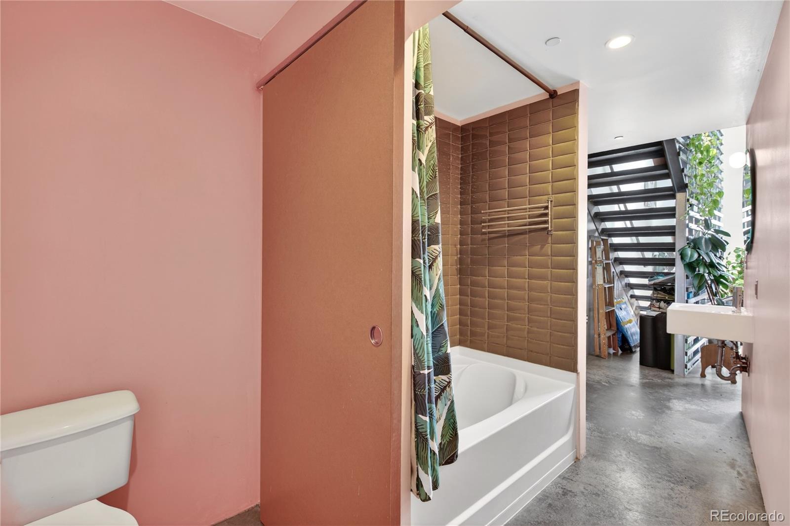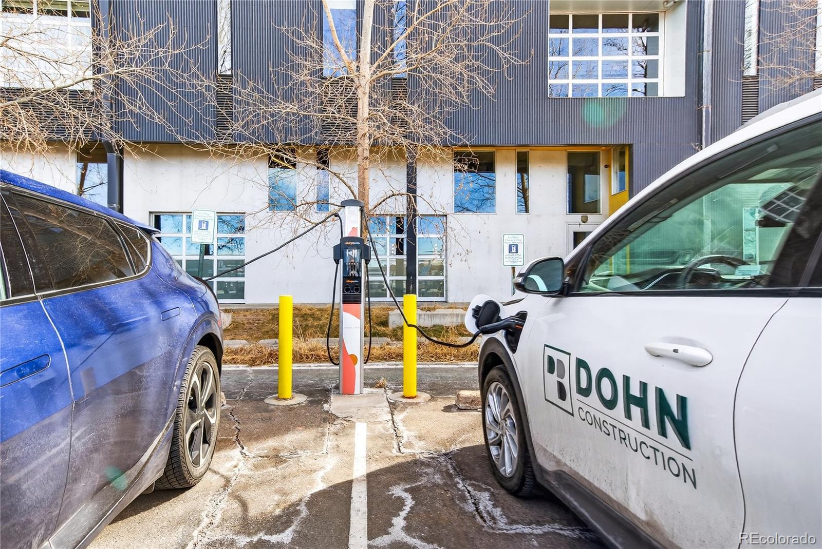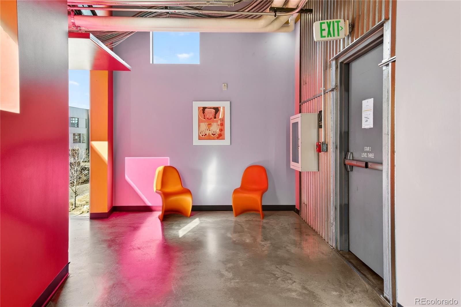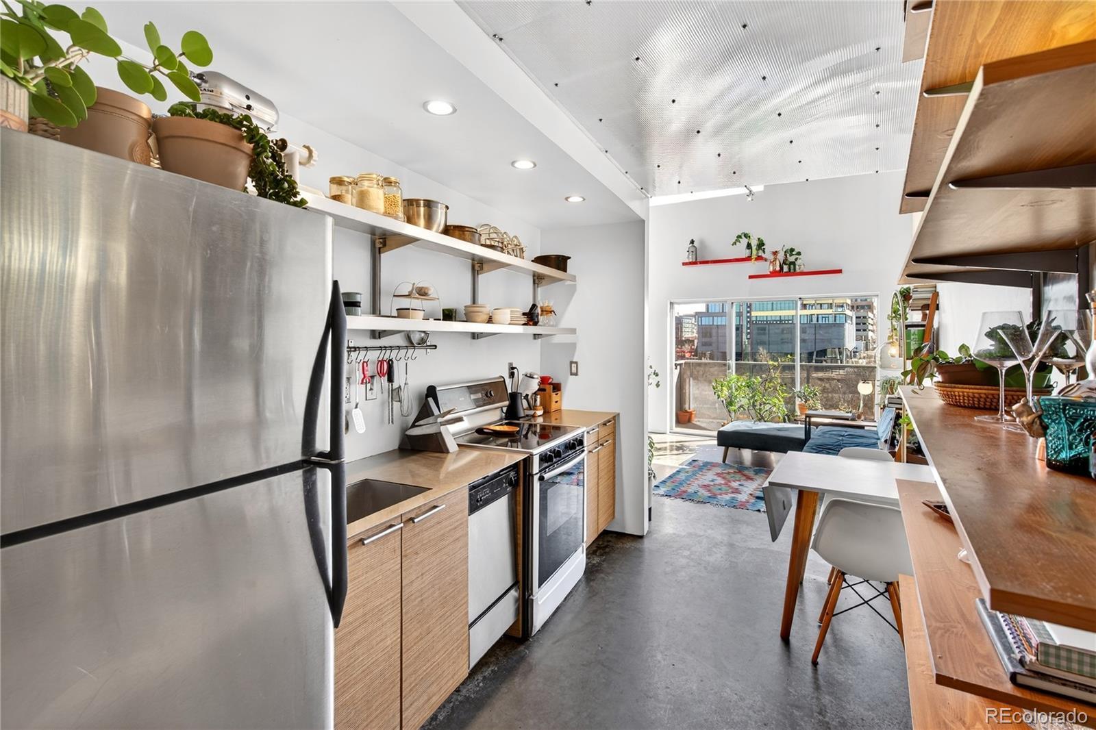 Discover stylish city living in this beautifully updated open light and bright 1-bed, 1-bath loft in the vibrant TAXI community - a dynamic live/work/play neighborhood in Denver’s sought-after RiNo Arts District. At 662 sf with 22 ft ceilings, this thoughtfully designed home pairs modern comfort with urban energy and endless lifestyle conveniences, in a serene and quiet building filled with harmonious architectural and aesthetic appointments at every turn. This unit has been modified to expand the upper bedroom over the kitchen, adding 60 sf to the original floor plan, which allows for a king sized bed with room to spare. The well-appointed kitchen features stainless steel counter tops and shelves, Bosch appliances, and soft-close drawers. Retreat up the custom designed industrial staircase to the bedroom sanctuary, complete with sprung hardwood floors, and a walk-in closet with an in-unit washer/dryer for true ease of living. On the main floor, the modern bathroom features clean, contemporary finishes. Living at TAXI means more than a great home - it’s a lifestyle. This unique mixed-use community celebrates creativity, collaboration, and connection with amenities designed to elevate daily life, including co-working spaces, on-site daycare, galleries, community garden, dog parks, EV charging stations, picnic and BBQ areas, a bar, a salon, a coffee shop, and many events and gatherings. Additionally gym and pool access are also available. For culinary fans, internationally recognized Michelin-star chef Johnny Curiel is opening an intimate tasting-menu restaurant, Maize, right on campus this spring, adding world-class dining just steps from your front door. Enjoy incredible mountain and river views, effortless access to the South Platte River Trail and downtown Denver, and so much more. There are few buildings in Denver that can match the uniqueness of the Taxi campus. With mixed used zoning, this loft can be used for a residence, business, or live/work.