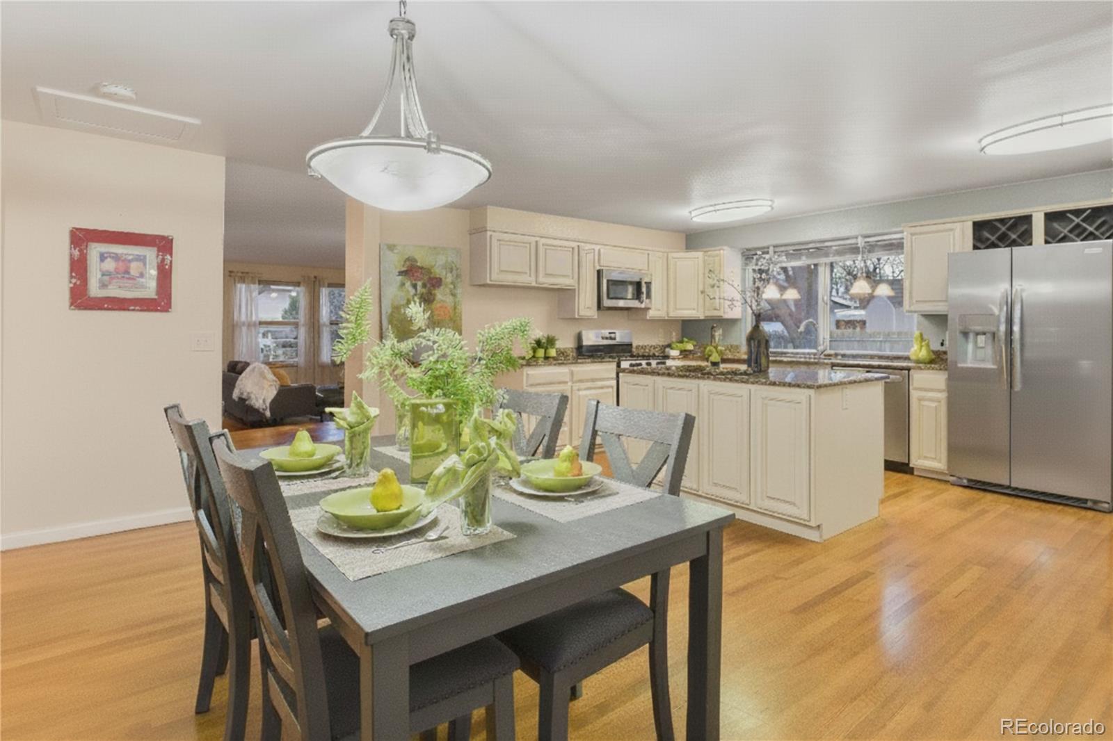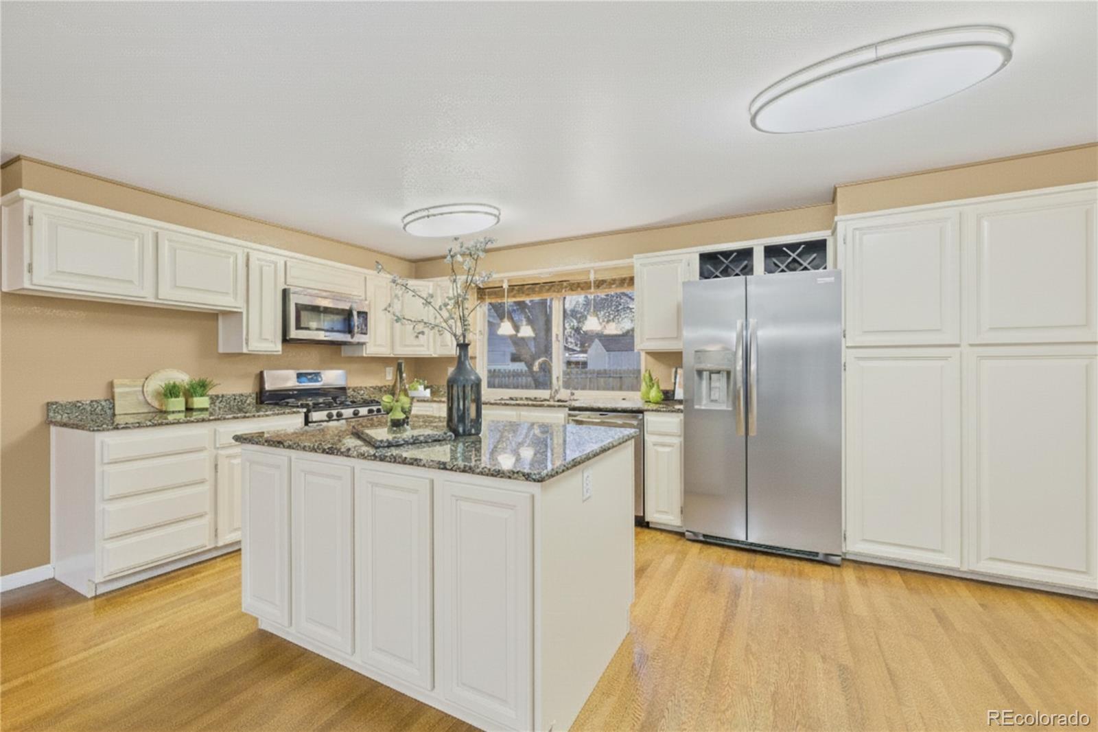 Beautifully Updated Home in the Heart of Pomona Lakes. Nestled on a quiet cul-de-sac in highly sought-after Pomona Lakes, this charming home offers peaceful evening strolls, convenient access to local parks, and an easy walk to Pomona High School. Step inside to sun-filled living and dining rooms, highlighted by warm hardwood flooring that flows throughout the main level. The inviting living room features a cozy fireplace, providing the perfect setting for both intimate gatherings and larger celebrations. The updated chef’s kitchen boasts rich wood cabinetry, granite countertops, and generous workspace. Open to the casual dining area, this space truly becomes the heartbeat of the home. The lower level offers a spacious recreation room, ideal for a home theater, game room, or second living area—perfect for movie nights or entertaining. This level also includes the laundry room and mechanicals. Newer carpet adds a fresh feel, making the home comfortable from the start. Upstairs, you’ll find three generous bedrooms and two lightly updated bathrooms, providing comfortable and functional living spaces. The private backyard is its own oasis, featuring a large, covered patio, an extended deck, mature trees, and 6-foot fencing for added privacy. There is also RV parking, a rare and valuable feature in the neighborhood. The cul-de-sac location enjoys excellent sun exposure—snow melts quickly! All of this is located within top-rated Jeffco schools and just a short bike ride to local dining, shops, and neighborhood amenities. With no HOA and a location that supports an active, convenient lifestyle, it’s easy to imagine settling in here. Just 30 minutes to Downtown Denver and the same distance to Boulder or the foothills you will see why this location just cant be beat. Welcome to your next new HOME!