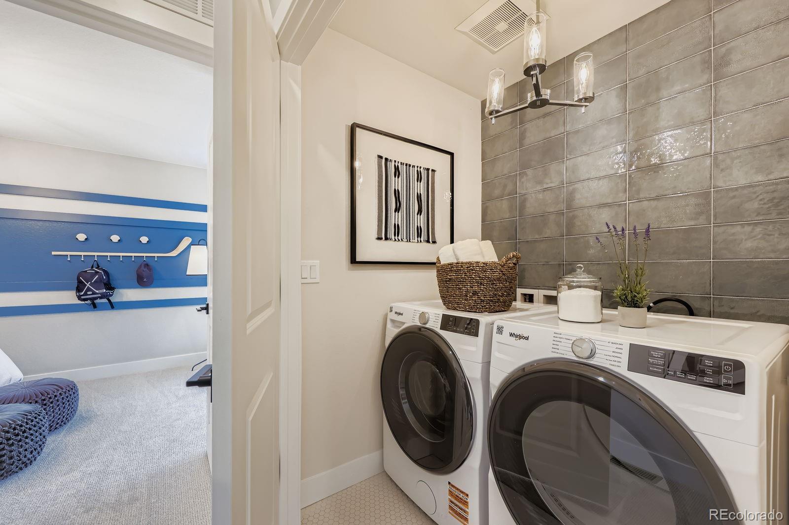Move-In Ready JAN/FEB – Brand-New 3-Bedroom rare end unit Townhome!! Welcome to your new home in a dynamic, walkable urban community! This stunning 3-bedroom, 3.5-bath, 3-story townhome offers over 1,803 sq ft of thoughtfully designed living space with modern finishes throughout. Key Features: Versatile entry-level flex space – perfect for a home office, fitness area, or cozy media room. Wrap around porch end unit townhome with tons of windows Chef kitchen with vented hood and 42" maple shaker North Sea cabinets, sleek satin nickel hardware, quartz countertops, a spacious island, and premium stainless steel appliances. Beautiful herringbone kitchen backsplash to the ceiling. Solar, washer/dryer, garage door opener, and fridge included. Move in ready! Third bedroom conveniently located on the main level. Private ensuite baths in both the primary and second bedrooms on the top floor. Oversized 1-car garage for extra storage and convenience. Located in the GEOS community, this home is part of a thoughtfully designed, walkable neighborhood that promotes community engagement and minimizes car dependency. Note: Sample photos shown.