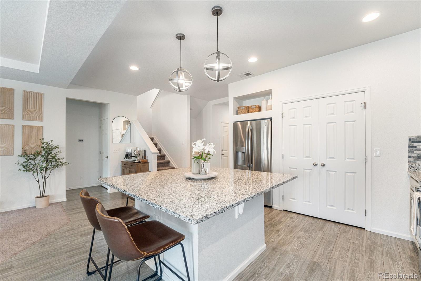 ***This home qualifies for the community reinvestment act providing 1.75% of the loan amount with a cap of $7,000 as a credit towards buyer’s closing costs, pre-paids and discount points. Contact listing agent for more details. Sellers are also offering $2k in credits towards sod install or buyers preferred backyard plans. That's up to $9k in concessions for your buyer!!! This meticulously cared-for home is perfect for Airport, Medical or young professionals looking to enter the real estate market! Live in the primary and rent out the other bedroom and cut your mortgage in half, as the second bedroom is on the other end of the main floor!*** Welcome to this picture-perfect single-family home offering over 2,000 sq. ft. above ground and a thoughtful floor plan with a main-level primary suite. Step inside through the charming covered entry to a bright foyer where you're instantly welcomed by the open and inviting floor plan. The kitchen is a true showstopper, featuring an expansive two-door pantry, upgraded cabinetry, and a statement island topped in rich granite. Designed for entertaining, the kitchen flows seamlessly into the dining area and spacious living room with a modern tiled gas fireplace. Sliding doors open to your backyard retreat, complete with a full-length patio for sun or shade, a private yard and garden beds ready for flowers or fresh vegetables. The fully fenced yard ensures both privacy and a safe space for pets. The main-floor primary suite boasts a large walk-in closet and double vanity, thoughtfully set apart from a secondary bedroom, full bathroom, and a walk-in laundry room with built-in storage. Upstairs, the large flex space offers endless possibilities—whether you need a media room, home gym, office, guest space, or a combination. *New roof in February 2025!* All appliances and major mechanics are from 2017!* Located just minutes from DIA, Green Valley Ranch Golf Club, Gaylord Rockies Resort, shopping, dining, parks, and schools!