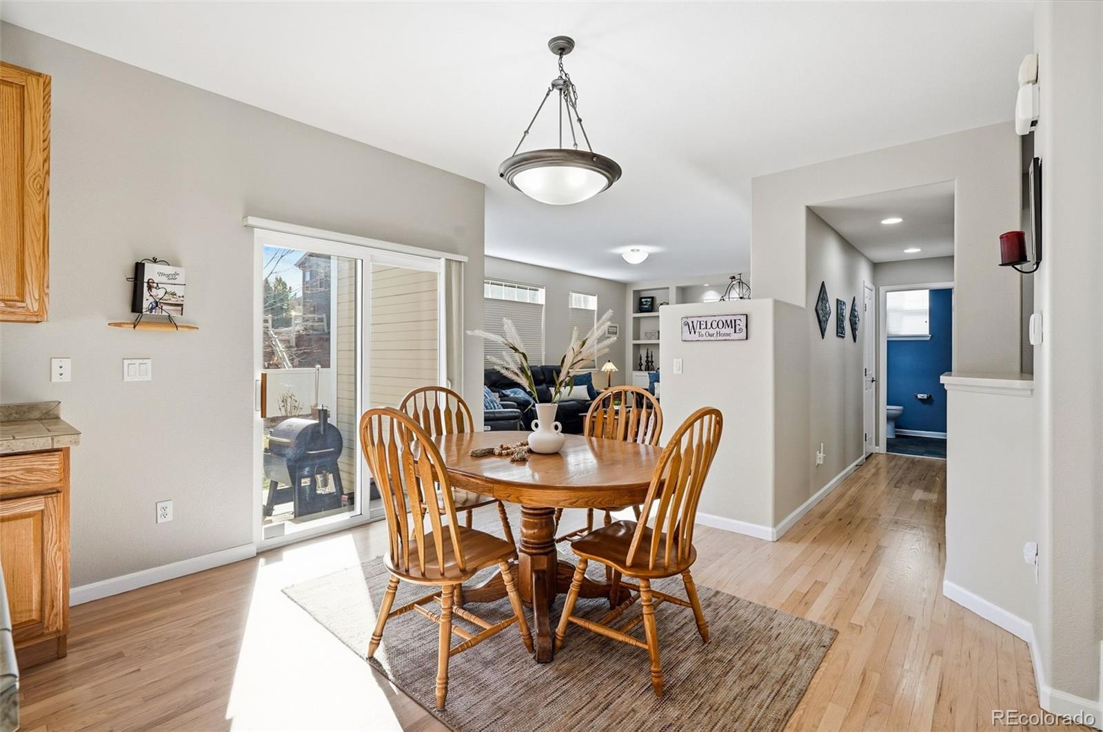 Impeccably maintained and move-in ready, this elegant 3 bedroom residence in the desirable Anthology neighborhood offers a perfect blend of sophisticated design and everyday functionality. From the moment you step onto the columned front porch and enter the foyer, you are greeted by gleaming hardwood floors that lead you through a thoughtfully designed main level. The heart of the home features a gourmet kitchen complete with double ovens and a center island, flowing seamlessly into a family room anchored by a cozy fireplace and custom built-ins. Distinctive spaces including a dining room, a bright sitting area, and a dedicated home office provide the versatility needed for modern living, while the "home command center" and mudroom ensure organizational ease. The 2nd floor serves as a private sanctuary, headlined by a spacious primary suite featuring a dedicated reading area, a luxurious five-piece ensuite, and a generous walk-in closet. Two additional sizable bedrooms offer ample space for family or guests and share a well-appointed bathroom with double sinks. For ultimate convenience, the upper-level laundry room is equipped with a utility sink, making household chores a breeze. Throughout the home, newer carpeting provides a fresh and comfortable feel underfoot. Step outside to a beautifully landscaped, fenced-in backyard designed for both relaxation and entertainment. Two separate outdoor living areas offer plenty of space for hosting, framed by mature vegetation for added privacy and a charming corner arbor with climbing ivy. Beyond the property lines, the Anthology lifestyle awaits with a large community pool, clubhouse, playground, several parks & trails. This location offers unparalleled access to the newly completed Chambers Road, Cherry Creek Trail, and downtown Parker. Furthermore, residents benefit from the proximity to Legacy Point Elementary, a prestigious Leader In Me Legacy School—a designation held by only 17 schools worldwide! NO METRO DISTRICT TAX