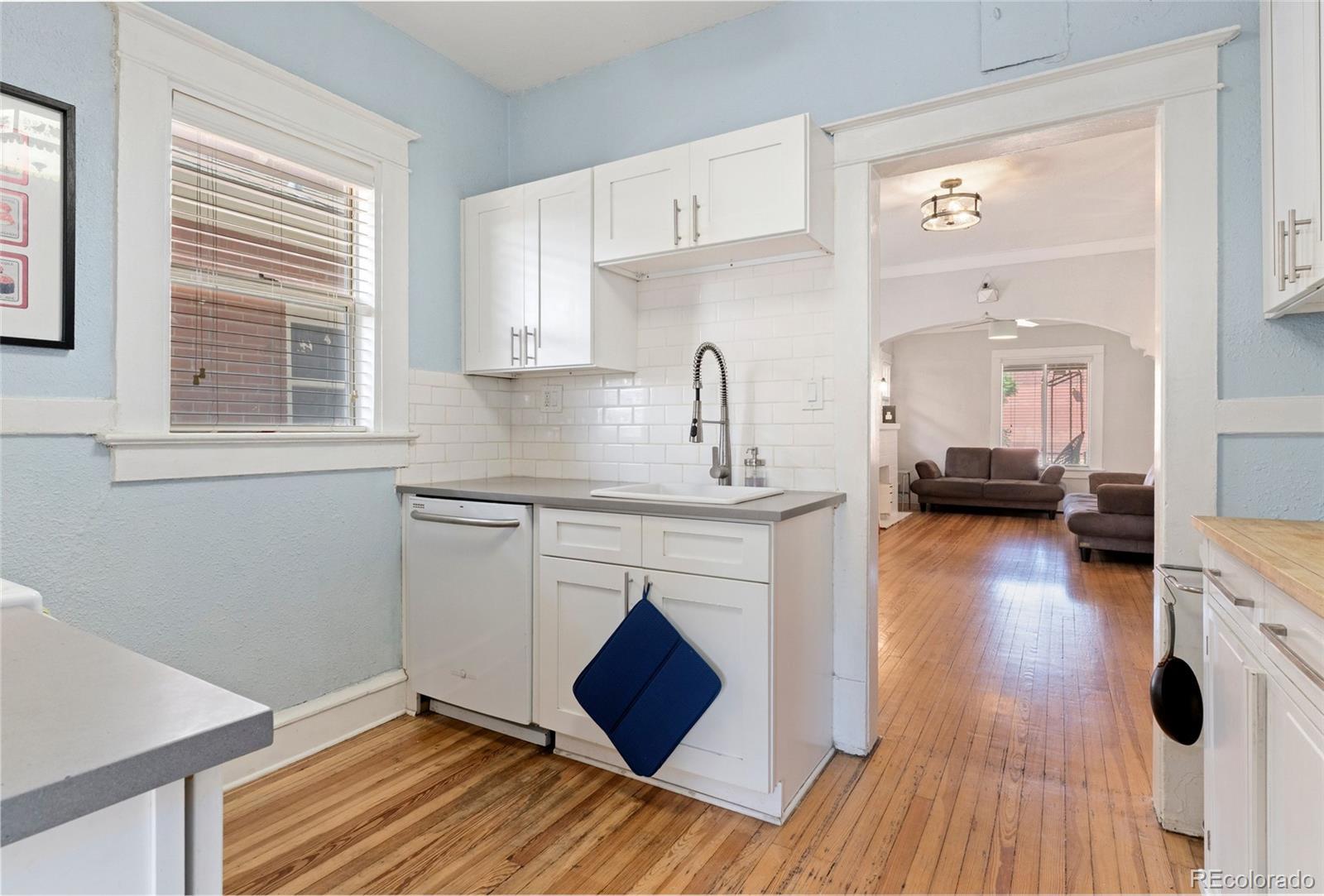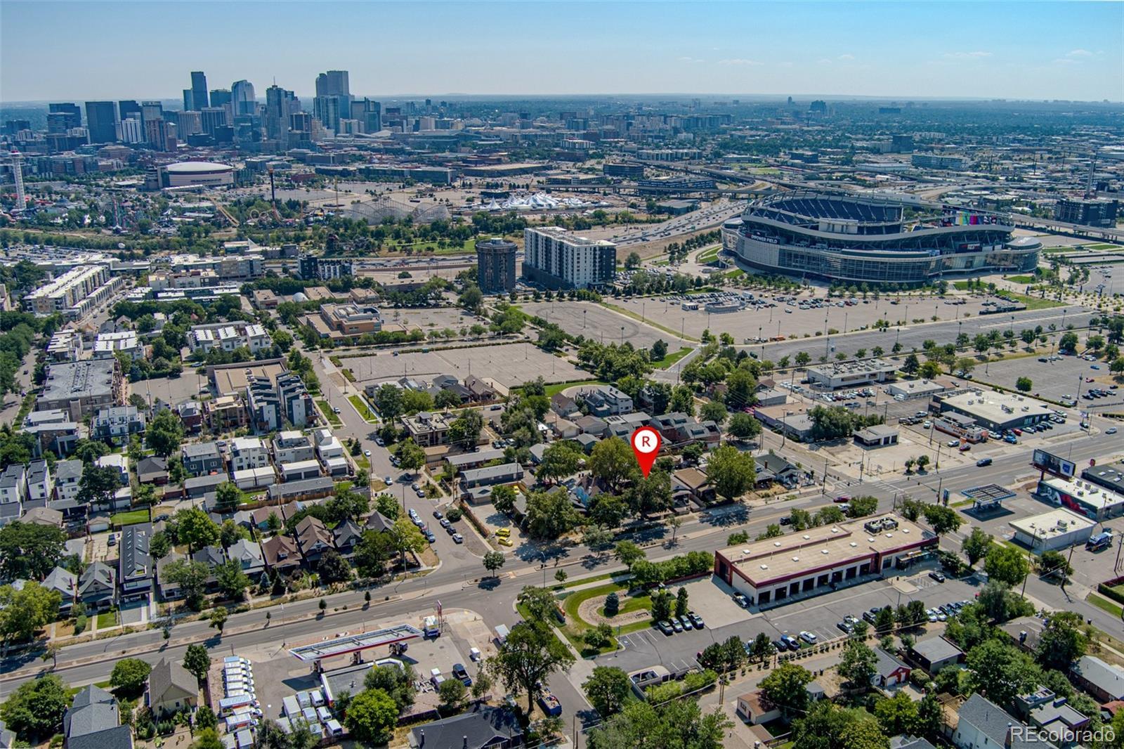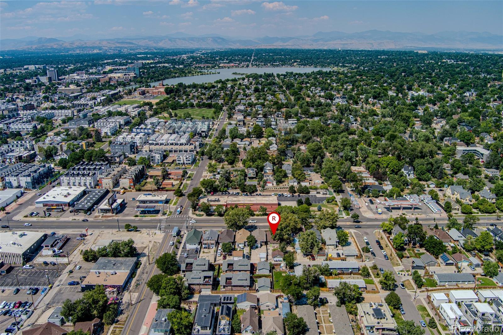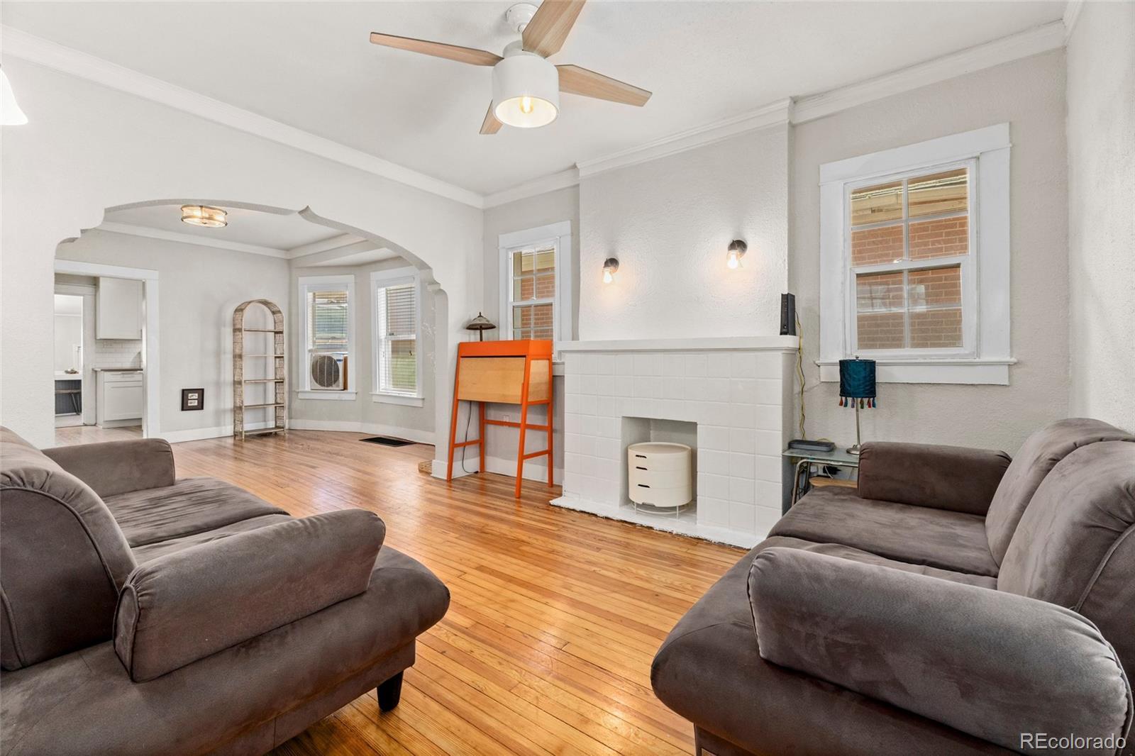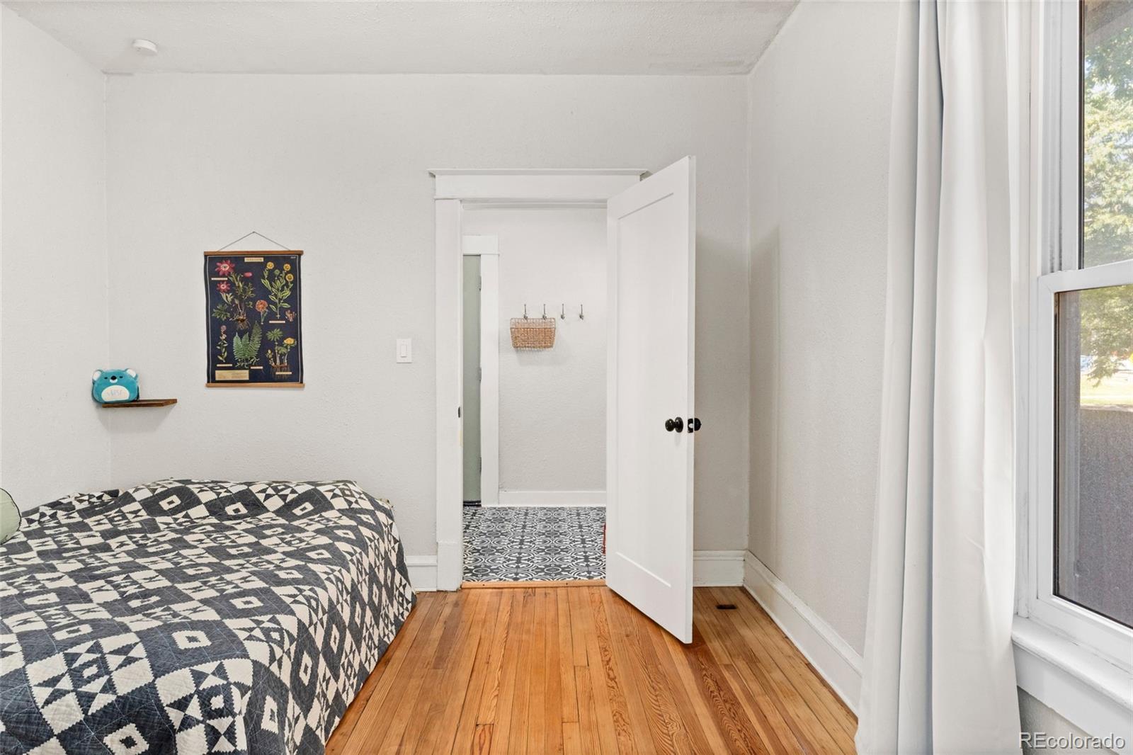 This perfect early 1900s brick bungalow blends timeless vintage charm with thoughtful modern updates in the highly desirable Jefferson Park neighborhood. Enjoy the convenience of nearby bike trails, excellent walkability, and quick access to downtown, entertainment venues, Jefferson Park itself, a variety of restaurants, Mile High Stadium, the light rail, and more. Zoned U-TU-B, the property allows for the option of building a detached accessory dwelling unit if desired. A charming front fence and inviting covered porch set the tone for the home’s warm character. Inside, a spacious entryway with new tile and ample storage leads to an open living and dining room, separated by a classic arched doorway. Abundant natural light fills the home, and the large dining room is ideal for hosting dinner parties. The updated kitchen offers modern conveniences, and a back entryway/mudroom—complete with new tile—provides a perfect landing spot for coats and shoes. A separate office adds functionality, while two bedrooms share a connecting full bath. Step outside to a private backyard with a garden, patio for summertime dining, and a detached brick garage featuring a charming green door that matches the backdoor of the home. Additional off-street parking is accessible from the alley. A partially finished basement offers flexible space for storage or potential living area. Recent updates include new kitchen countertops and sink, new exterior bib and pipe, an added backflow eliminator (2025), and an installed ceiling fan. This move-in-ready gem offers historic character, modern comfort, and an unbeatable location. Buyer/Buyer's agent is responsible for verifying all information, measurements, schools.