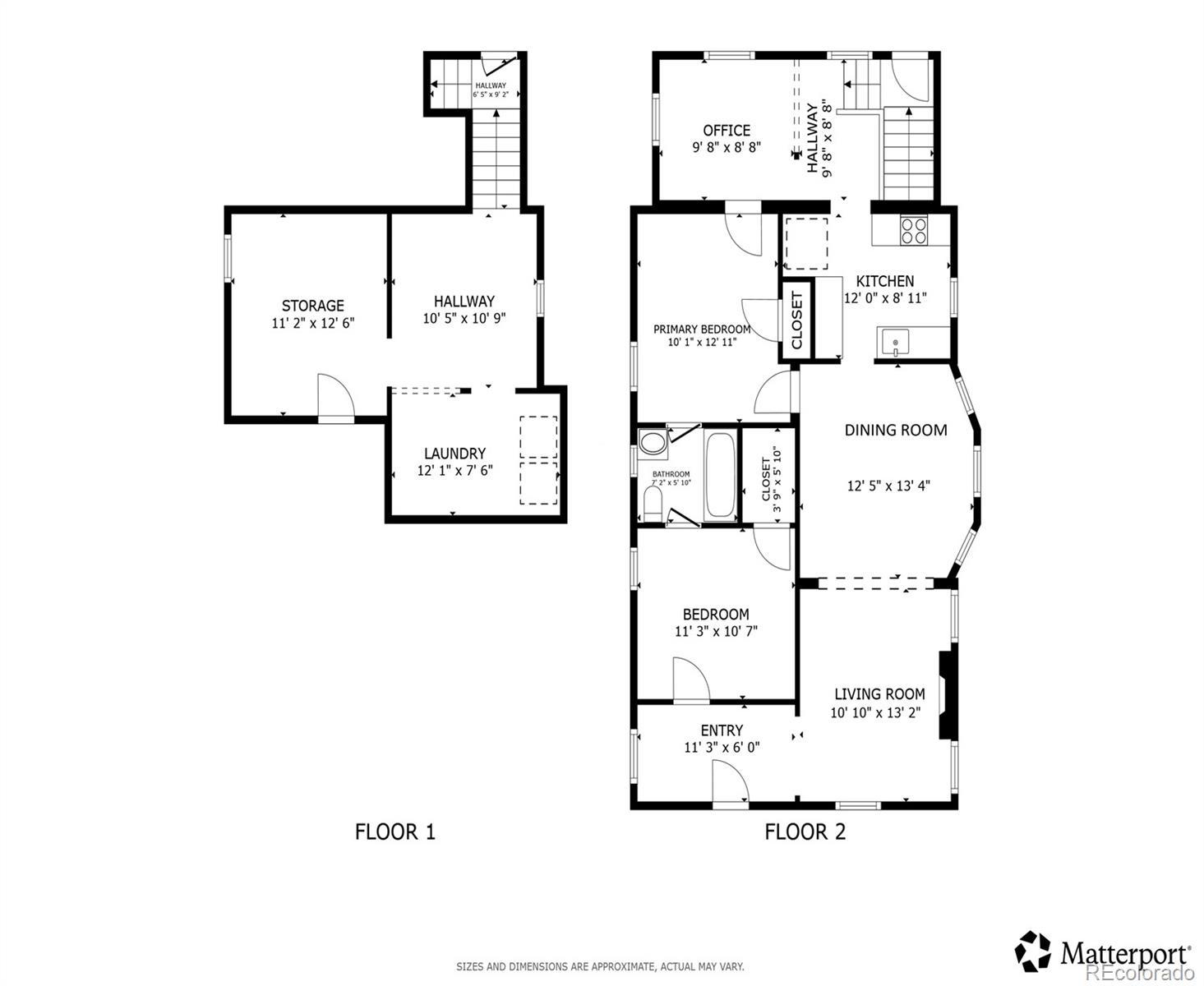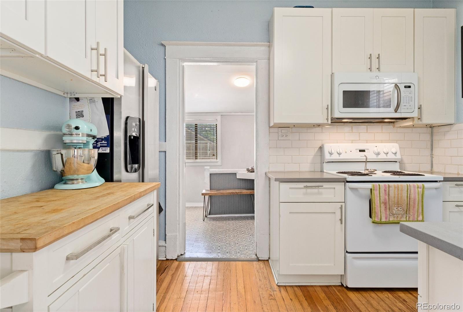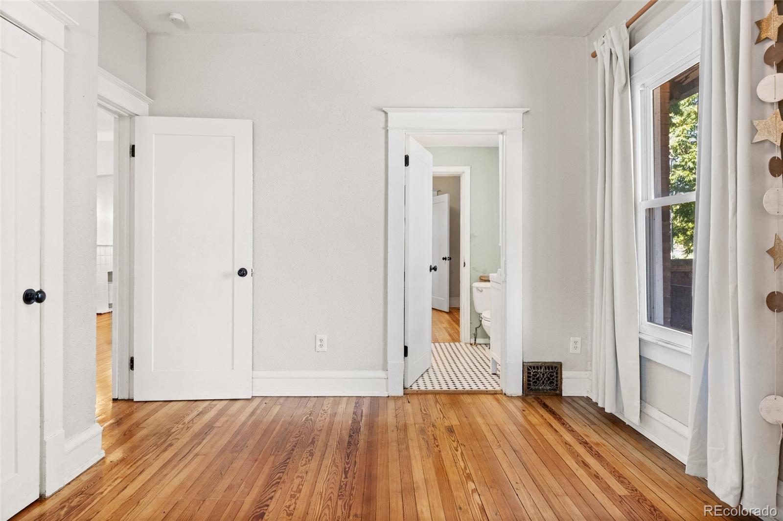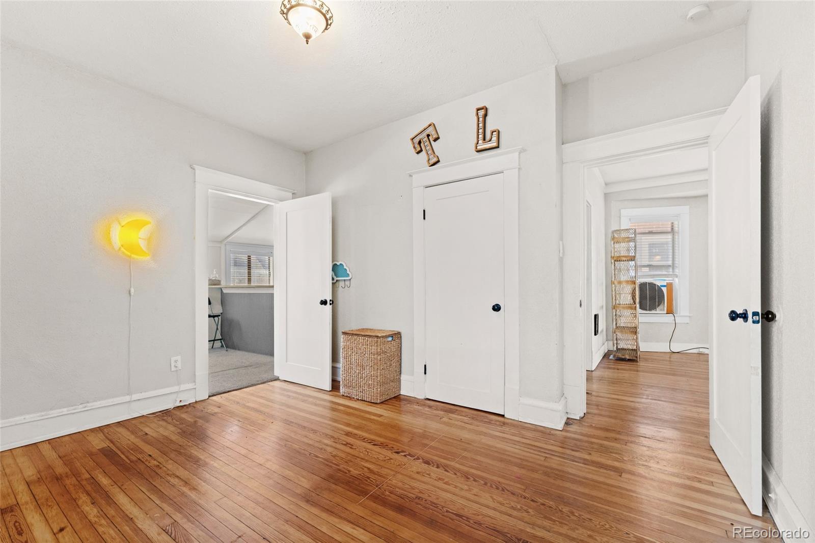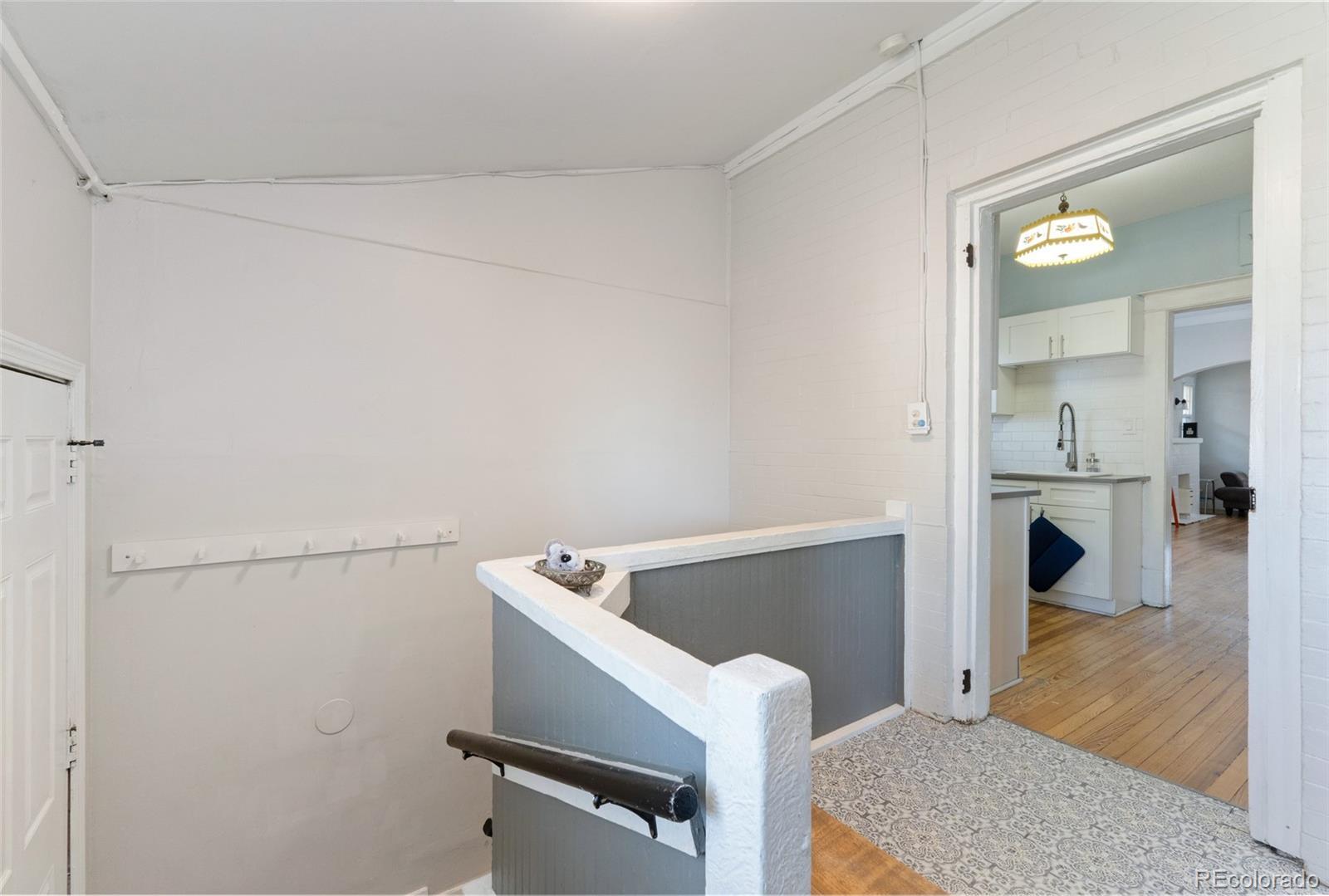 This perfect early 1900s brick bungalow blends timeless vintage charm with thoughtful modern updates in the highly desirable Jefferson Park neighborhood. Enjoy the convenience of nearby bike trails, excellent walkability, and quick access to downtown, entertainment venues, Jefferson Park itself, a variety of restaurants, Mile High Stadium, the light rail, and more. Zoned U-TU-B, the property allows for the option of building a detached accessory dwelling unit if desired. A charming front fence and inviting covered porch set the tone for the home’s warm character. Inside, a spacious entryway with new tile and ample storage leads to an open living and dining room, separated by a classic arched doorway. Abundant natural light fills the home, and the large dining room is ideal for hosting dinner parties. The updated kitchen offers modern conveniences, and a back entryway/mudroom—complete with new tile—provides a perfect landing spot for coats and shoes. A separate office adds functionality, while two bedrooms share a connecting full bath. Step outside to a private backyard with a garden, patio for summertime dining, and a detached brick garage featuring a charming green door that matches the backdoor of the home. Additional off-street parking is accessible from the alley. A partially finished basement offers flexible space for storage or potential living area. Recent updates include new kitchen countertops and sink, new exterior bib and pipe, an added backflow eliminator (2025), and an installed ceiling fan. This move-in-ready gem offers historic character, modern comfort, and an unbeatable location. Buyer/Buyer's agent is responsible for verifying all information, measurements, schools.