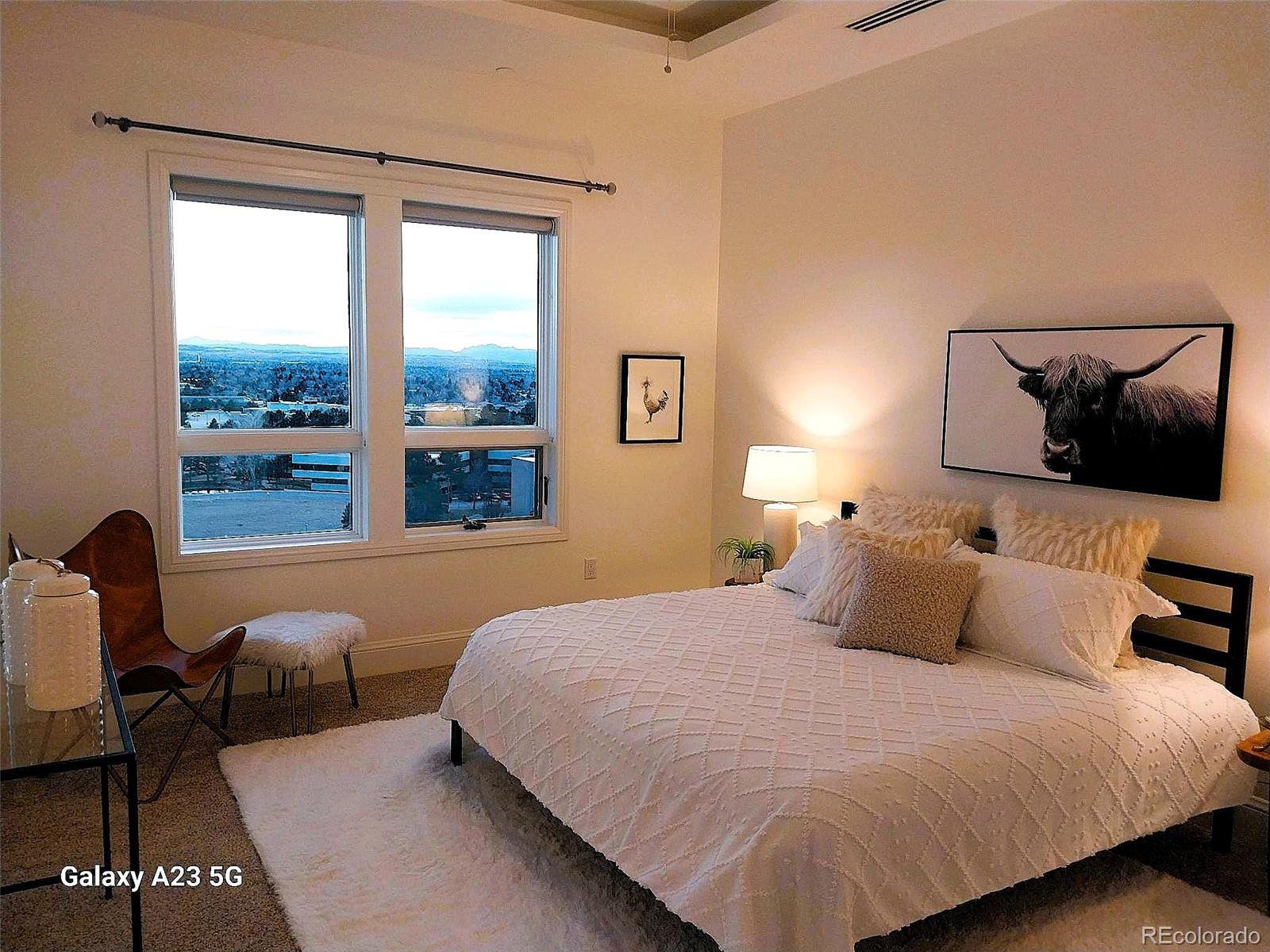 Discover effortless luxury in this freshly updated 2-bedroom, 2-bathroom end unit condo (#804) in the prestigious West Tower of The Landmark, Greenwood Village's premier high-rise community. Perched on the 8th floor, this corner residence offers unobstructed southwest views that capture stunning sunsets, open skies, and glimpses of the Front Range—perfect for enjoying Colorado's natural beauty right from your living room or private balcony. Bathed in abundant natural light thanks to large windows and an ideal southwest exposure, the open-concept layout feels spacious and inviting. Soaring volume ceilings enhance the sense of grandeur, while recent updates, new warm soft paint and flooring, fixtures, ss appliances and gorgeous quartzite counters bring modern comfort and style throughout. The thoughtful end-unit design provides extra privacy with additional windows and no shared walls on two sides. The Landmark delivers a true resort-style lifestyle with exceptional amenities shared across the towers: 24-hour concierge and security, resort-style pools and hot tubs, state-of-the-art fitness centers, saunas, steam rooms, business centers, a library, club rooms, guest suites, wine storage, and more. Steps away from shopping, dining, and entertainment at Landmark Plaza, with easy access to the Denver Tech Center, major highways, light rail, and downtown Denver. This low-maintenance, lock-and-leave home combines contemporary updates, incredible light-filled living, and unbeatable location—ideal for those seeking sophisticated urban living with mountain views.