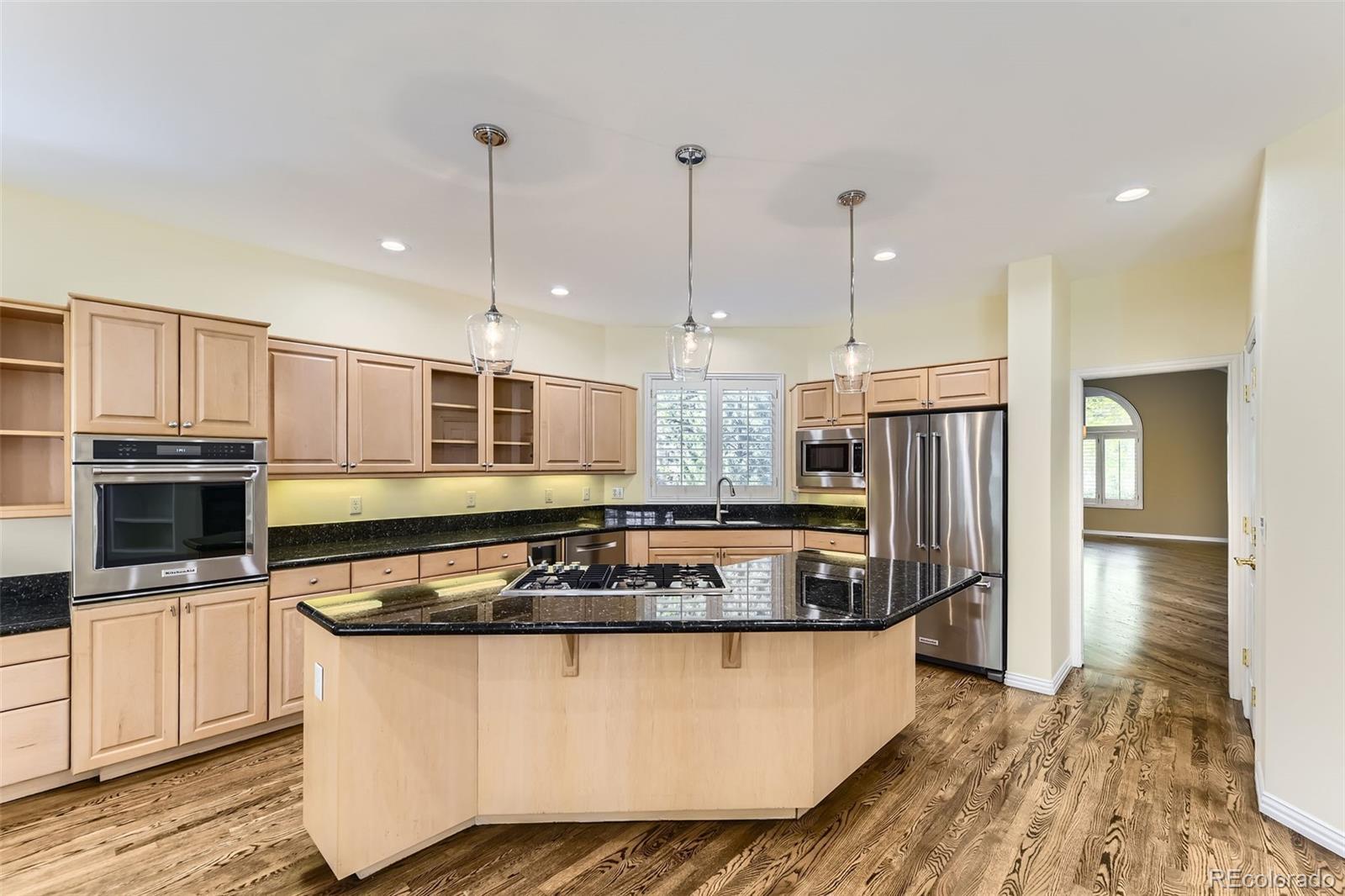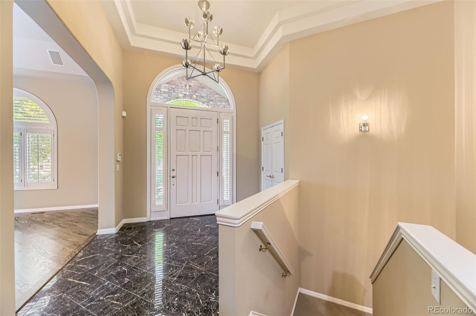 Reduced by $60,000! Lowest price home in Bateleur! Some homes closed for $2,625,000! Welcome to this spacious and stunning ranch-style home located on a quiet tree-lined street in the sought-after neighborhood of Bateleur! The elegant living room off the entry immediately captures your attention with its grand hearth as the centerpiece, exudes warmth and sophistication. This space seamlessly flows into a spacious dining room, perfect for hosting large gatherings or festive dinner parties with ample room for everyone to celebrate. Moving further into the heart of the home, the kitchen is a true masterpiece. Feast your eyes on the stunning black granite counters that gleam under the light, paired with sleek, maple cabinets and stainless appliances. This culinary haven opens into a cozy family room, an ideal spot for friends and family to gather, share stories, and create lasting memories by the inviting fireplace. The backyard has a beautiful garden and is a tranquil oasis. An east-facing covered patio is perfect for morning coffees or unwinding on quiet Colorado evenings, surrounded by lush greenery and a calming ambiance. The primary suite has a beautifully remodeled with marble tile which elevate the space, while a stunning soaking tub beckons for luxurious relaxation after a long day. This sanctuary offers a perfect escape within your own home. Don’t miss the expansive basement, where a huge game or media room awaits your personal touch. With plenty of uses, this versatile space is ready for endless entertainment and fun. This lock-and-leave gem has plantation shutters, hardwood flooring and a 3-car tandem garage. It also boasts low-maintenance living with HOA-managed front yard care, front snow removal up to your front door and garage when over 2” and exterior trim painting of homes every 6 years. Nestled in a welcoming community with access to a clubhouse, pool, and scenic trails, this home offers both comfort and convenience. Come, make it yours today!