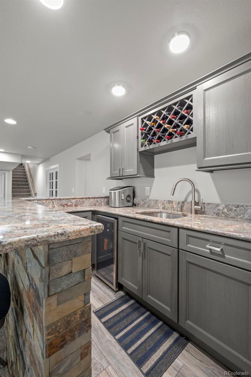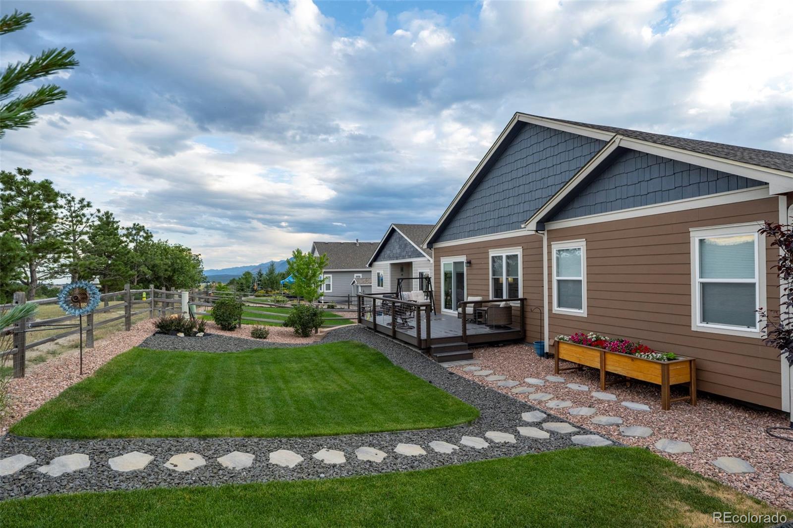 Beautiful ranch home backing to Woodmoor lake with a 3-car garage! Inside, the bright great room features vaulted ceilings, an accent wall, a gas log fireplace, and access to the outdoors. The gourmet eat-in kitchen includes granite counters, a double convection oven, cooktop, pantry, and stainless steel appliances—perfect for entertaining. The main floor also offers an office with French doors, a secondary bedroom, and a conveniently located laundry room with a utility sink, garage access, and storage cabinets. The primary suite boasts vaulted ceilings, a spacious layout, and an en-suite bathroom with tile flooring, granite counters, and a walk-in shower. The finished basement offers impressive additional living space, complete with a spacious recreation room and an updated wet bar with a wine cooler. You’ll also find two additional bedrooms, a full bathroom, and a versatile workshop—originally designed as a media or theater room—featuring LVP flooring and French doors, perfect for hobbies, projects, or extra storage. The fully fenced backyard is beautifully landscaped with a large grassy area and a spacious deck—perfect for relaxing or entertaining. Conveniently located near I-25, making commutes to Colorado Springs, Castle Rock, or Denver easy. Don’t miss your chance to own this stunning ranch home backing to Woodmoor Lake with a 3-car garage!