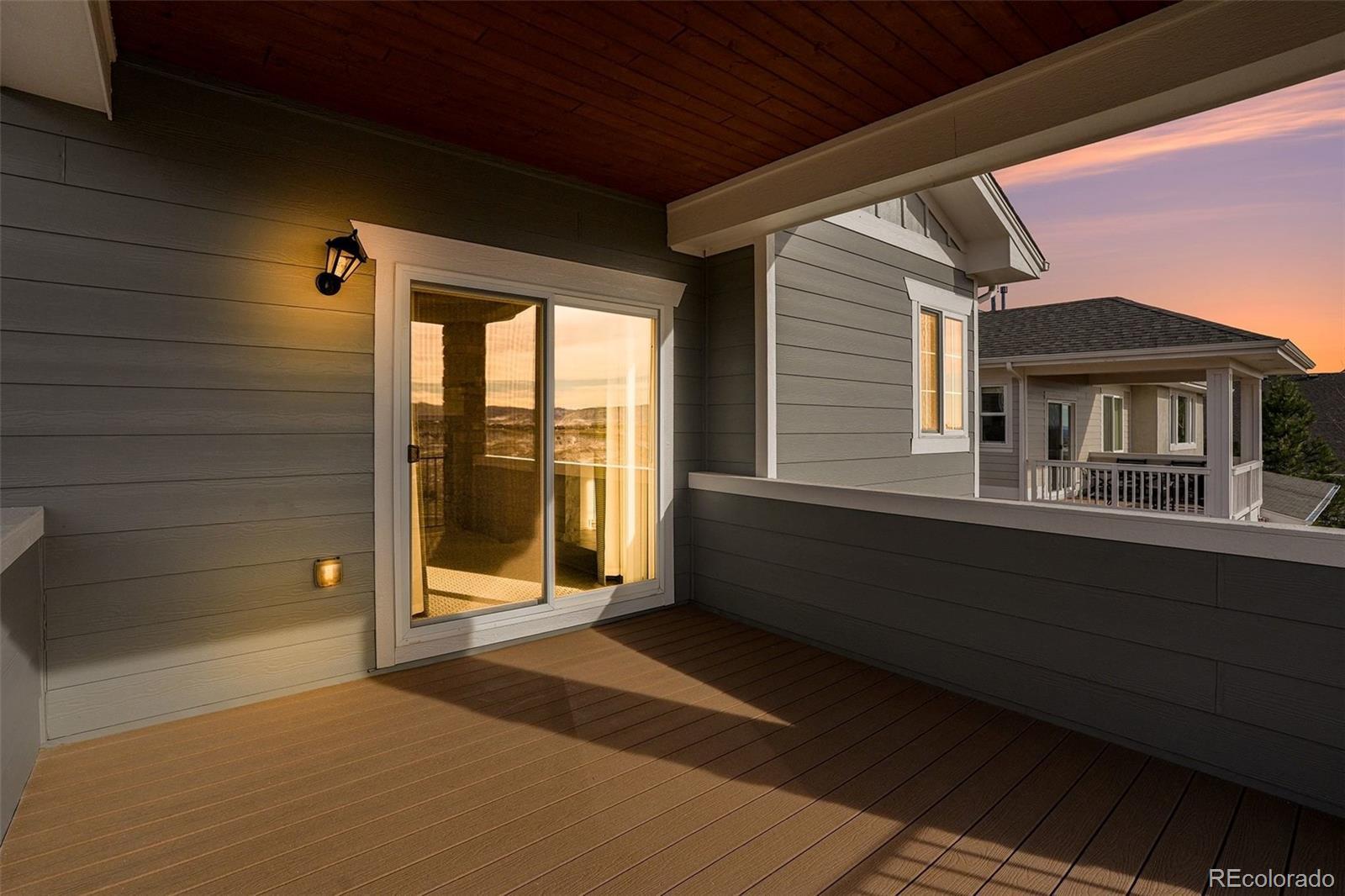 Experience breathtaking mountain views and exceptional craftsmanship at 8536 Rogers Loop, a stunning residence in Arvada’s coveted Leyden Rock community. Thoughtfully enhanced with extensive upgrades, this home blends refined luxury, functionality, and Colorado indoor-outdoor living. The main level showcases engineered hardwood floors, custom wainscoting, and expansive windows that frame sweeping Front Range views. At the heart of the home, the chef’s kitchen impresses with stainless steel appliances, full-extension dovetail cabinetry, quartz countertops, gas range with pot filler, dual pull-out trash systems, and a generous walk-in pantry—ideal for everyday living and entertaining. The family room features a cozy fireplace and a premium integrated audio system extending to the basement, primary suite, and upper level. Step outside to the covered deck with custom blinds, curtains, lighting, outdoor weatherproof TV, shades, and an outdoor fireplace—creating a true four-season extension of the living space. The primary suite is a private retreat offering its own deck, fireplace, spa-inspired five-piece bathroom, custom blinds, and a walk-in closet. Additional bedrooms provide flexibility for guests, home offices, or multi-generational living. The finished basement expands the home’s versatility with a wet bar, two guest bedrooms, enhanced lighting, and a large flex space with direct access to a covered paver patio. The garage is equally impressive with epoxy floors, mounted cabinetry, counters, sink, beverage refrigerator, and a driveway extension. Additional highlights include newer exterior paint, enhanced landscaping, fenced yard improvements, radon mitigation, humidifier, gutter additions, solar shingles, and numerous mechanical and electrical upgrades throughout. Set on a generous lot with access to trails, open space, and top commuter routes, this home offers a rare combination of panoramic views, thoughtful enhancements, and luxury finishes in Northwest Arvada.