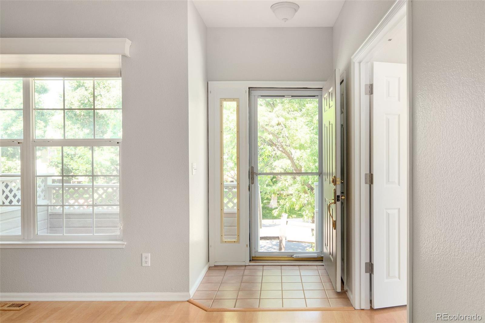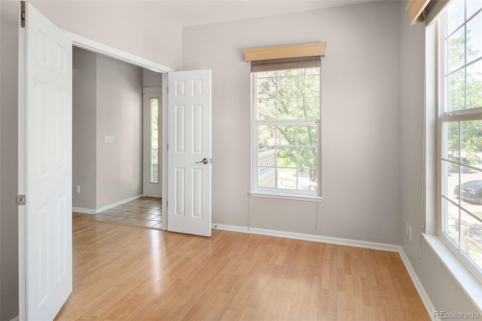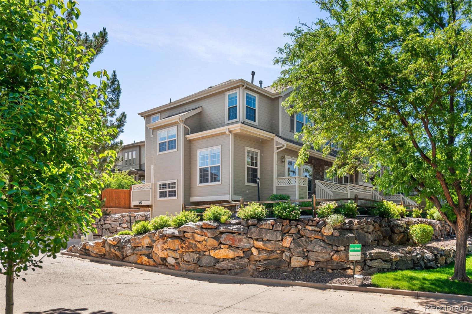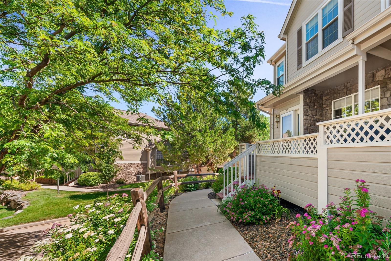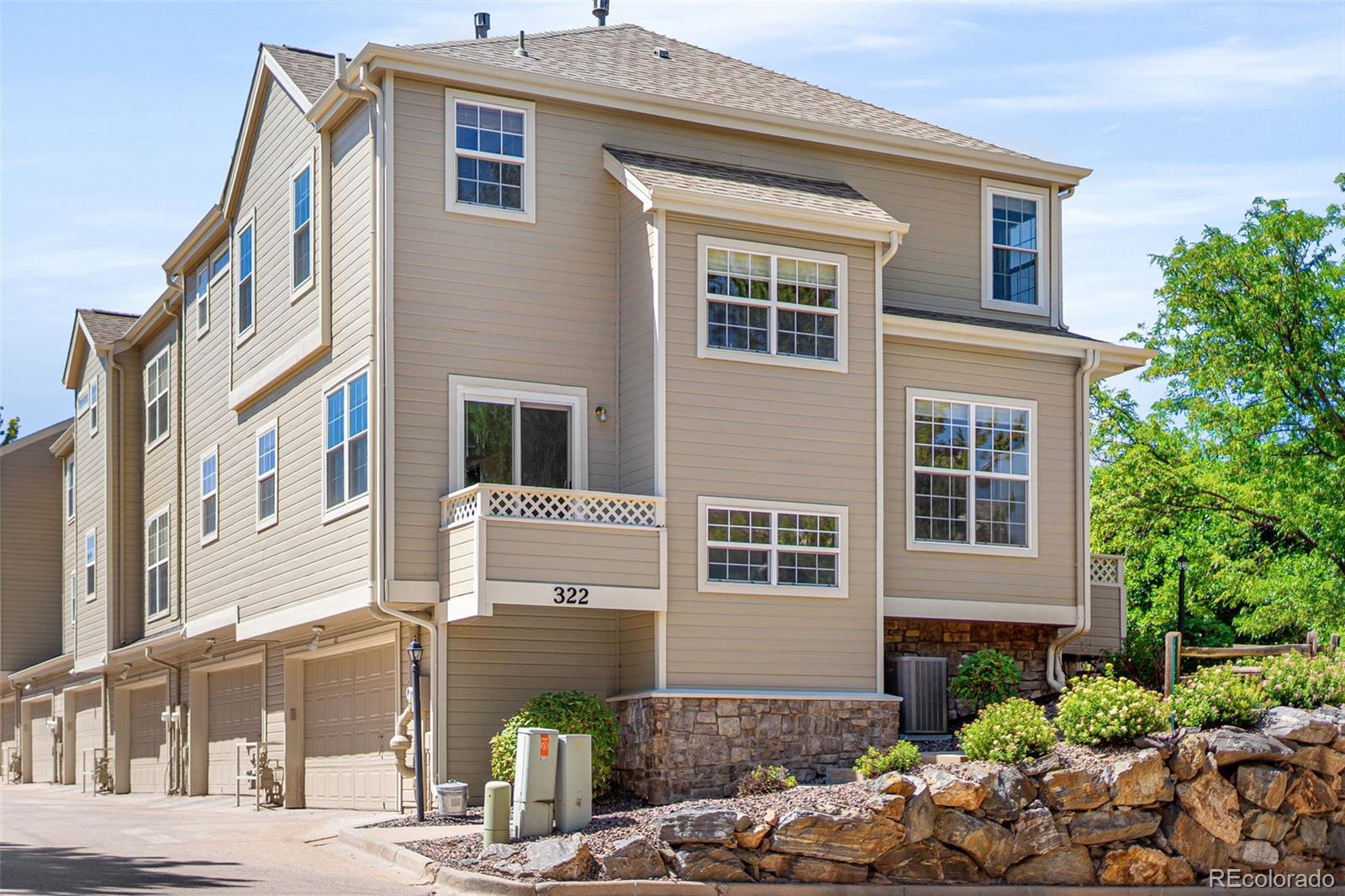 This bright and inviting end-unit townhome stands out with its extra privacy, natural light, and an attached oversized garage with built-in shelving and generous storage. Upstairs, the vaulted-ceiling primary suite offers a true retreat with a walk-in closet featuring a custom organization system and an ensuite bath with a soaking tub and added shelving. Inside, the open floor plan creates a warm, functional living space. The living room features a cozy gas fireplace, built-in bookshelves, and large windows that fill the home with natural light. French doors open to a versatile office or flex room, ideal for remote work. The dining area, accented by a stylish new light fixture, connects to a private balcony overlooking mature, HOA-maintained landscaping—perfect for morning coffee or evening relaxation. The thoughtfully designed kitchen provides ample cabinetry, generous counter space, and a full-size refrigerator. A main-floor laundry room with washer and dryer included adds everyday convenience. Two additional upstairs bedrooms offer bright, comfortable spaces, accompanied by an updated full bathroom. Additional highlights include multiple storage closets, a covered front porch, and well-maintained surroundings—all in a quiet Littleton location close to shopping, dining, parks, and major commuting routes. Move-in ready and beautifully maintained, this home offers comfort, style, and an unbeatable location.