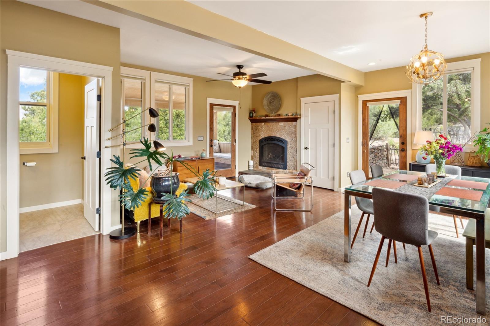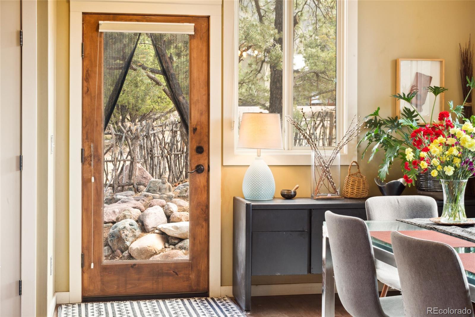 Creek Lot! Motivated Seller! This must-see dream home awaits in the quiet hidden town of Crestone. A unique tri-level beauty, this house offers diversity for living arrangements, offering separation and privacy for working couples, a family or visiting guests. Enter through an impressive, custom front door to the first level, where you are immediately welcomed to a stunning open concept Great Room with a handsome, modern kitchen that presents functionality as well as views of the Sangre De Cristo mountains. Hardwood floors grace the living room/dining room with a custom propane fireplace. The first level of the the living area has a lovely half-bath and a small bedroom/study with W/D tucked away in the closet. Completing the first level are three porches: one, a screened-in porch for mosquito-free, summertime living; second, a large, impressive, front porch at the entrance with spectacular views of the Sangres; and third, the NE porch, accessed via double French doors, opens onto a large deck revealing a stone-walled garden area with a gate to access the path to the woods and a year round creek. The 2nd level brings you to the massive, primary bedroom, with gorgeous wood floors, 3 huge closets, and then… enter the ensuite, master bath with double sinks, windows facing the mountains and a separate soaking tube and walk-in shower. The 3rd level is a unique wing of the house with a separate living room, 2 large bedrooms with good-sized closets and a large, full bathroom. In the living area, a French door leads to a 4th, large balcony facing the Sangres. Situated off of one of the few paved neighborhood roads (No Dust!) and is less than a mile to town, making it an easy walk if so inclined. From the kitchen is access to an oversized, attached 1-car garage, as well as a 700sf basement that has been Radon mitigated by a State Certified company. Short Term owner carry options available. Come find your mountain home bliss in Crestone! Check out the virtual tour!