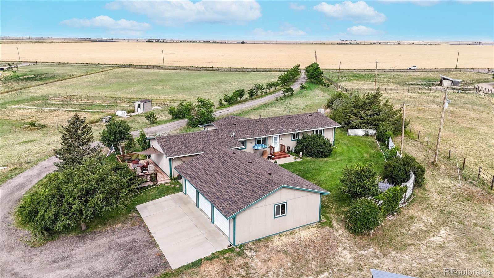 Nestled on a peaceful 10 Acre lot with sweeping prairie vistas, just a mile outside of town, this well-appointed home at 4160 Converse Rd offers a perfect blend of rural tranquility and modern convenience. The open-concept living area welcomes you with a large picture window framing Colorado's dramatic skies and beautiful mountain views, and durable laminate flooring that flows throughout the living room. The heart of the home features a spacious kitchen with a stainless steel refrigerator, tile countertops. The split-bedroom layout includes a private primary suite with a sitting area and a walk-in closet, en-suite bathroom featuring a large 6 foot bathtub and a step-in shower. 2 additional bedrooms share a full hall bathroom with a tub-shower combo and 4th bedroom has an en-suite with tub/shower combo. The partially finished basement expands your living space with a large family room with a wood stove and a versatile bonus room perfect for a home gym. Practical touches include a main-floor laundry room, central air conditioning, and abundant storage throughout. Outside, there is a side deck and generous back patio that offer ideal spaces to enjoy breathtaking sunsets and Colorado's fresh air, with plenty of yard space for outdoor activities. 3 car detached garage with plenty of storage area, and workshop with 3 car carport, chicken coop, lean-to for animals, and shooting range finish the outside accessories. Located just minutes from downtown Bennett's charming shops and restaurants, and quick commutes via E-470 to Denver or DIA. Outdoor enthusiasts will love the proximity to wildlife-rich open spaces, the historic High Plains Raceway, and nearby Barr Lake State Park for fishing and birdwatching. With its perfect balance of country living and modern amenities, this move-in-ready home offers an exceptional Colorado lifestyle just beyond the metro area's hustle and bustle.