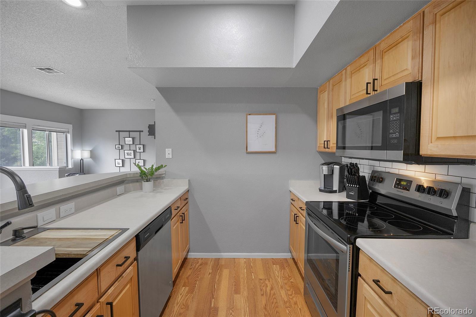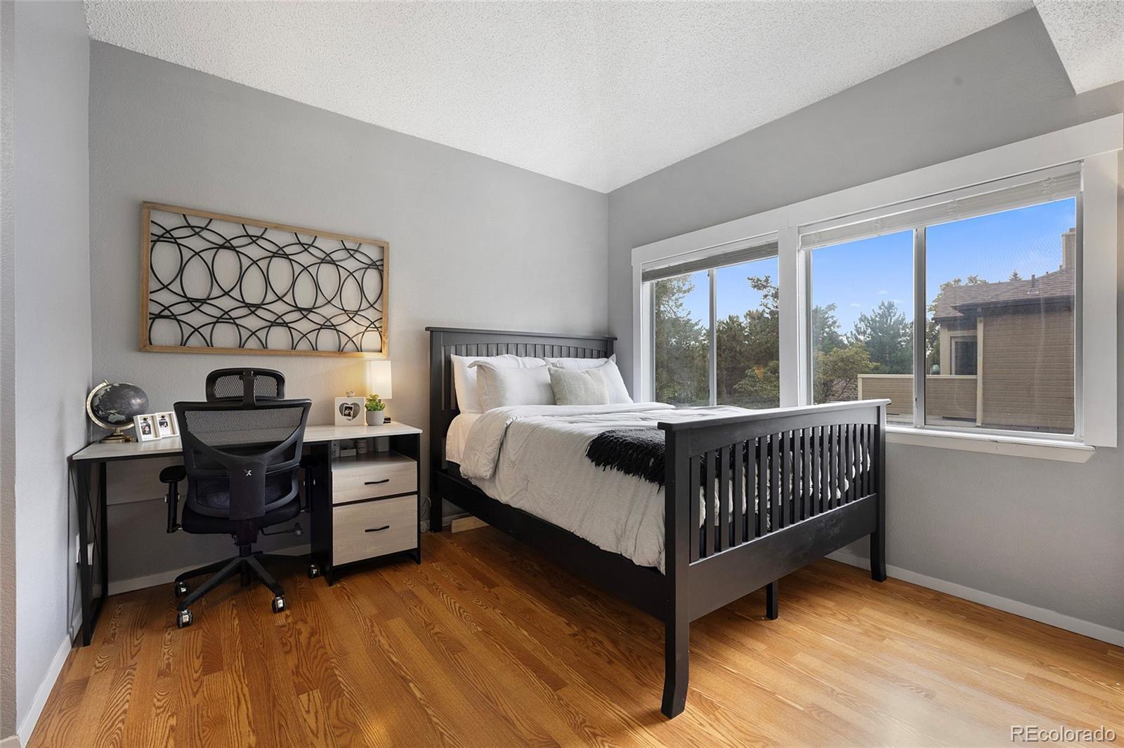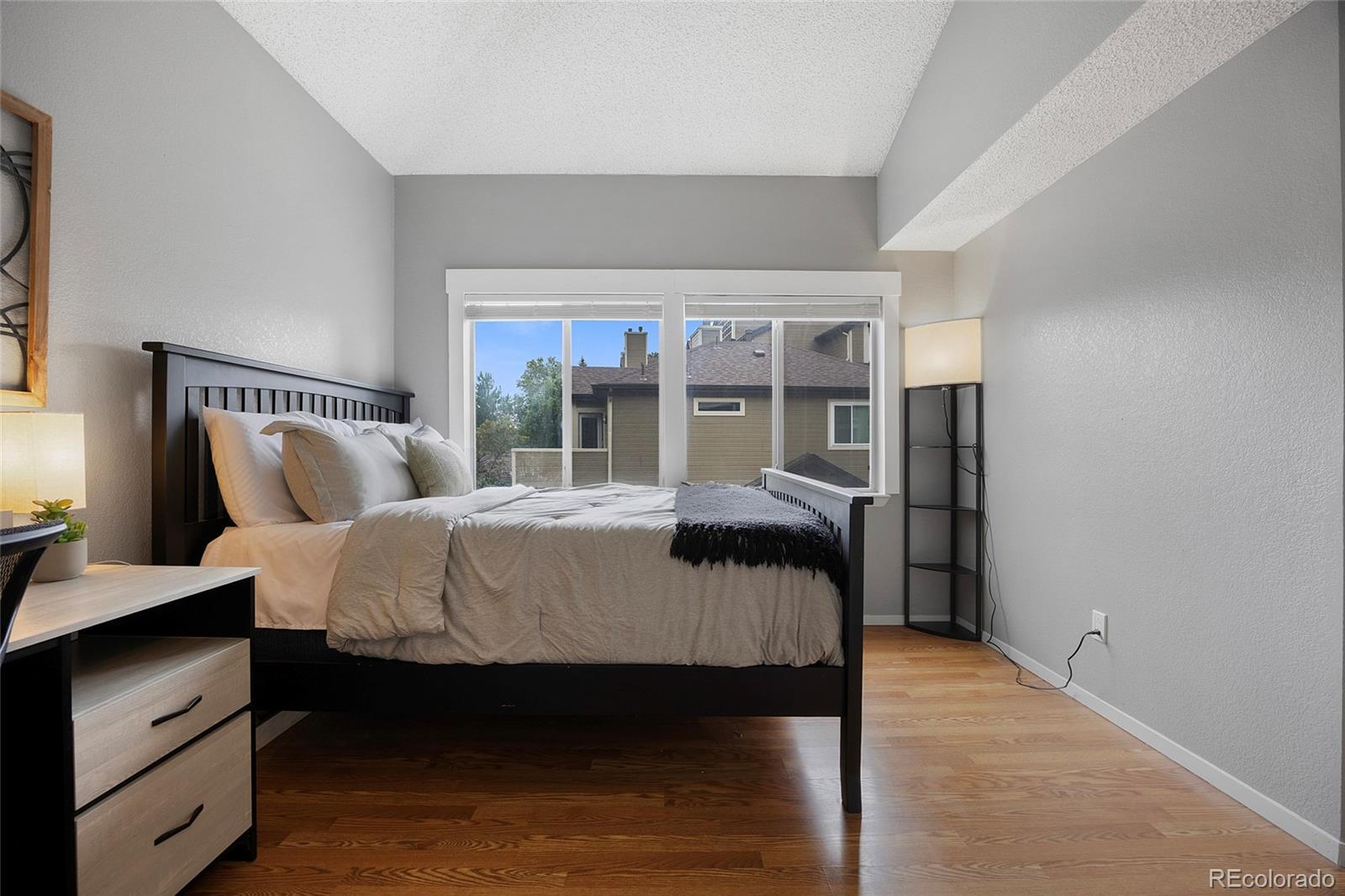 PRICE IMPROVEMENT! SELLER SAYS 'BRING OFFERS'! Welcome to this beautifully updated end unit, 2 story, 2 bed, 2 bath condo that lives like a townhouse in highly sought after Greenwood Village near the DTC! Freshly painted w/ updates, this home features a spacious, light-filled floor plan designed for comfort and style. As you enter from the new tiled foyer, your are welcomed by the spacious family room with newly stoned gas fireplace, coat closet & newer recessed lighting. The dining area, accented with a new pendant light, flows to a large covered balcony—perfect for morning coffee, al fresco dining, or relaxing outdoors. Wood inspired laminate flooring flows throughout the entire home & beautiful new tile has been added to the bathroom water closets. As you make your way to the kitchen you will notice the spacious eat at breakfast bar, adding extra seating and a great space for entertaining. The kitchen features updated stainless steel appliances, new lighting, stylish new door pulls, shelved kitchen pantry & convenient laundry room. A standout feature of this home are the 2 primary bedroom suites; one on the main level & one upstairs w/ vaulted ceilings (upper bedroom suite includes a separate entrance--perfect for roommate). Both bedroom suites feature walk in closets, linen closets, soaking tubs, showers, new faucets, new shower heads, & new mirrors. Furnace was replaced in 2021! Enjoy having your own 1 car attached garage that includes a large storage closet. The attached garage is accessible from the stairs that lead you to the main floor. Guest parking is available throughout the community. Community amenities include a clubhouse, gym, swimming pool, and hot tub. HOA dues include trash, snow removal, exterior maintenance, water & grounds maintenance (NEWER ROOF!). Located in the Award winning Cherry Creek School District! Near DTC, dining, shopping, 2 blocks to light rail, and I-25/Orchard Rd 2 MINS! Don’t miss this beautifully updated and move-in-ready home.