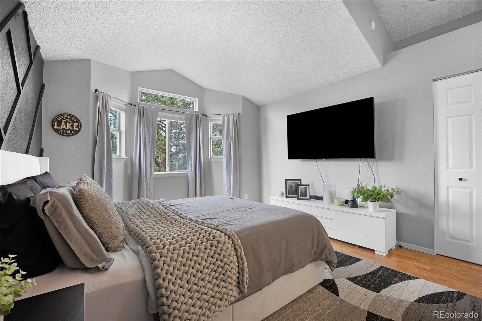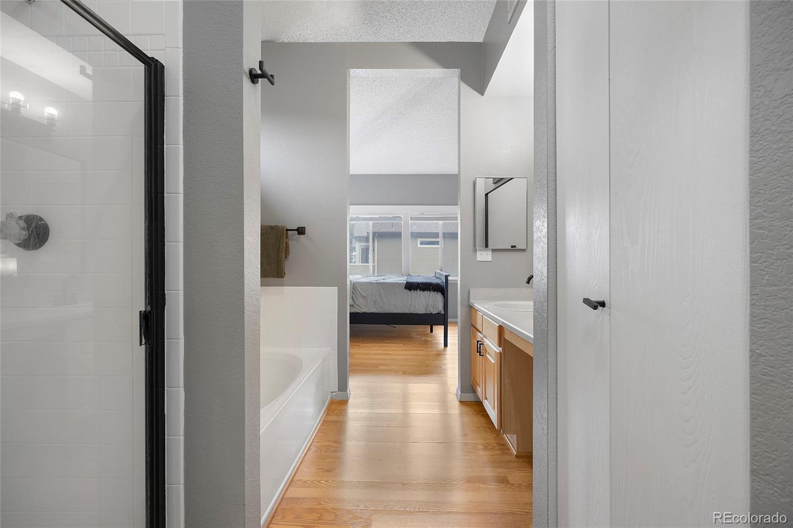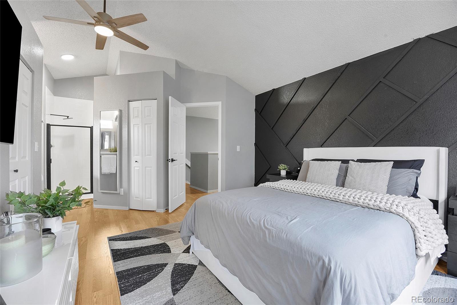 PRICE IMPROVEMENT! SELLER SAYS 'BRING OFFERS'! Welcome to this beautifully updated end unit, 2 story, 2 bed, 2 bath condo that lives like a townhouse in highly sought after Greenwood Village near the DTC! Freshly painted w/ updates, this home features a spacious, light-filled floor plan designed for comfort and style. As you enter from the new tiled foyer, your are welcomed by the spacious family room with newly stoned gas fireplace, coat closet & newer recessed lighting. The dining area, accented with a new pendant light, flows to a large covered balcony—perfect for morning coffee, al fresco dining, or relaxing outdoors. Wood inspired laminate flooring flows throughout the entire home & beautiful new tile has been added to the bathroom water closets. As you make your way to the kitchen you will notice the spacious eat at breakfast bar, adding extra seating and a great space for entertaining. The kitchen features updated stainless steel appliances, new lighting, stylish new door pulls, shelved kitchen pantry & convenient laundry room. A standout feature of this home are the 2 primary bedroom suites; one on the main level & one upstairs w/ vaulted ceilings (upper bedroom suite includes a separate entrance--perfect for roommate). Both bedroom suites feature walk in closets, linen closets, soaking tubs, showers, new faucets, new shower heads, & new mirrors. Furnace was replaced in 2021! Enjoy having your own 1 car attached garage that includes a large storage closet. The attached garage is accessible from the stairs that lead you to the main floor. Guest parking is available throughout the community. Community amenities include a clubhouse, gym, swimming pool, and hot tub. HOA dues include trash, snow removal, exterior maintenance, water & grounds maintenance (NEWER ROOF!). Located in the Award winning Cherry Creek School District! Near DTC, dining, shopping, 2 blocks to light rail, and I-25/Orchard Rd 2 MINS! Don’t miss this beautifully updated and move-in-ready home.