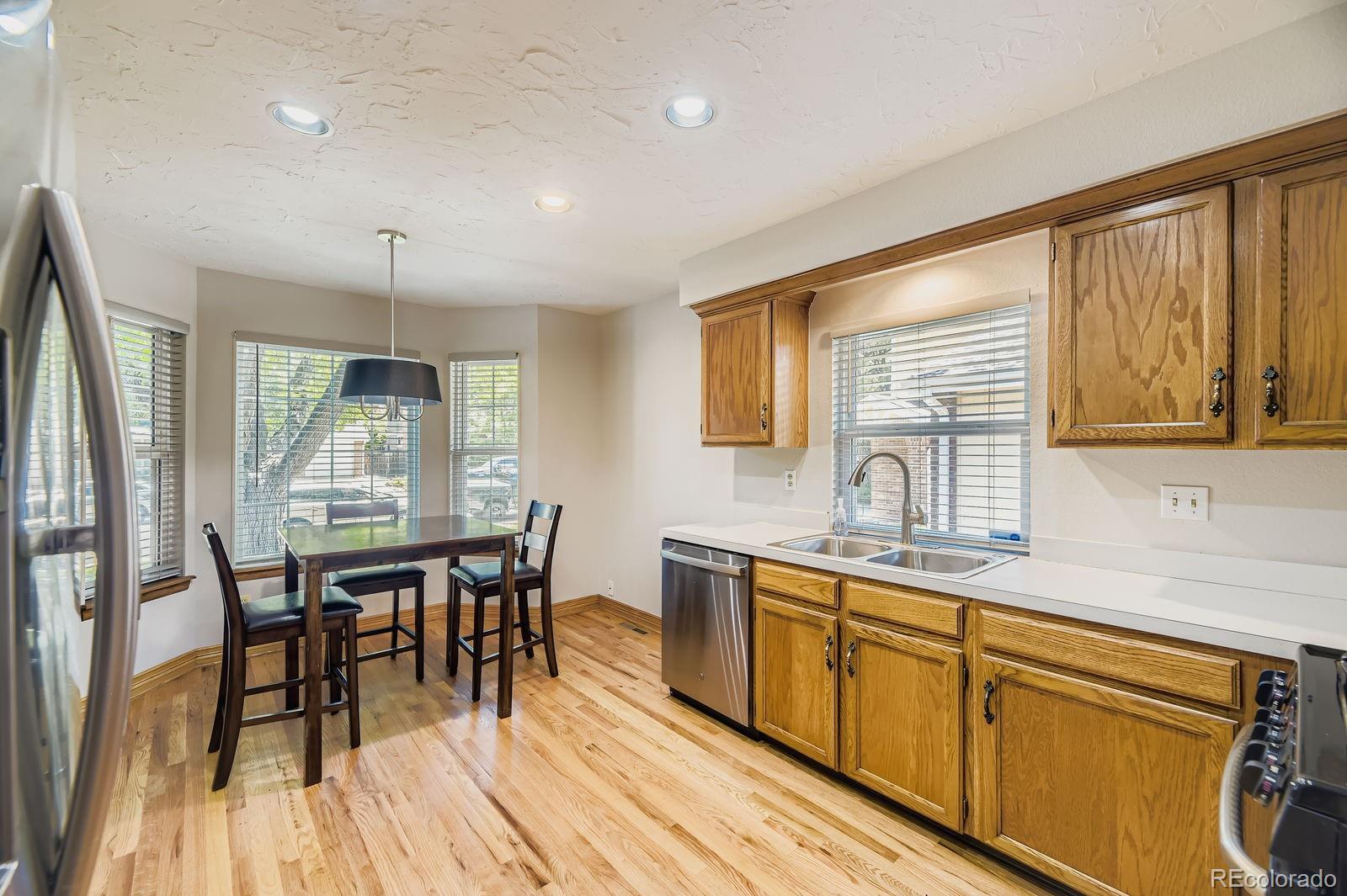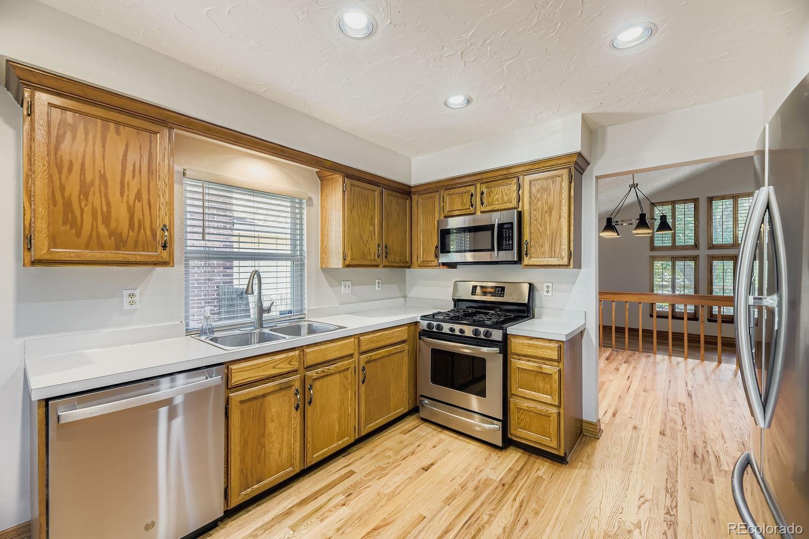 Welcome to this beautiful home in the highly sought after South Park Community! As you enter you will find hardwood flooring throughout the main level that absolutely shines as it was recently refinished! Enjoy the large family, living and dining rooms and the wood burning fireplace from both dining room and family room. If you enter from garage you will find nice size Laundry/Mudroom and basement access before entering family room. Off to side of family you will find convenient 1/2 bath as well. Kitchen features stainless appliances and plenty of storage space with pantry a breakfast nook area. Upstairs you are greeted to a spacious primary bedroom with 5 piece bath, walk in closet and deck to enjoy the Colorado Sunsets. 2 additional spacious bedrooms and full bath are also on the upper floor. On the lower level you have a great room with new carpet and 1/2 bath, get creative to make it work for your own needs. Shopping, dining, entertainment and trails are close along with the mineral light rail station. Walking distance to Highline Canal trail system and all the great amenities of South Park, pickleball, tennis, swimming pools and clubhouse, you will not want to miss out on this home! Schedule your showing today!!