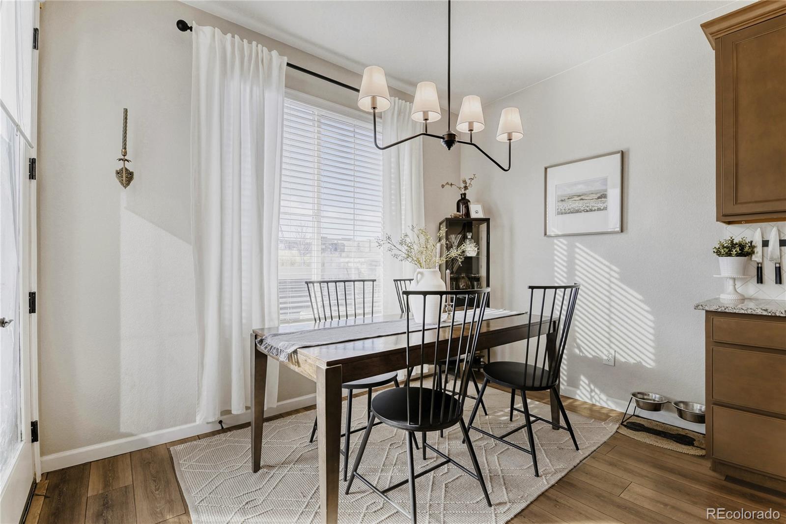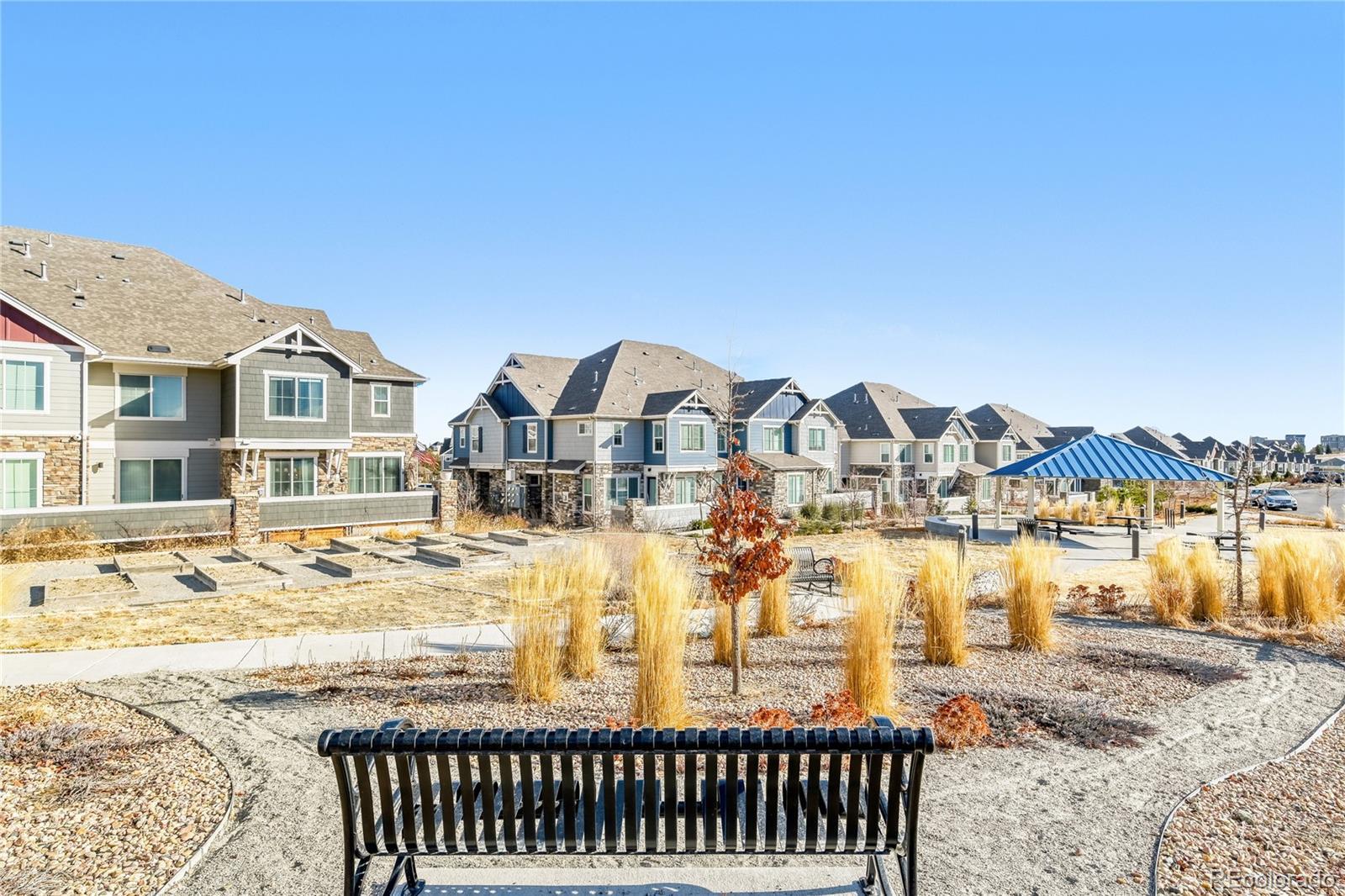 Absolutely stunning + straight out of your IG decorating dreams - and even better in person. With elevated designer finishes - warm wood tone cabinetry, modern plumbing & lighting fixtures, iron railing, luxury vinyl plank flooring and custom built ins - you can move right in without updating a thing. Perfectly positioned on a premium corner location overlooking the community garden & park, this home delivers rare privacy, peaceful views, and incredible natural light. With no neighbors above or below, this home lives like a single-family. The main level is anchored by showpiece kitchen with a large island, gorgeous staggered cabinetry with soft close, granite countertops, and stainless appliances. A built-in mudroom unique to this floorplan adds valuable sqft and keeps daily life organized, while the sunlit dining space and cozy gas fireplace create a warm, welcoming flow. Upstairs, both bedrooms are impressively sized. The primary suite offers a huge walk-in closet, upgraded en-suite bath, and serene open-space views. The secondary bedroom is spacious enough to function as a junior suite or guest retreat, located near a beautifully updated full bath. Convenient upstairs laundry adds everyday ease. Storage shines throughout - including under-stair storage, oversized linen closet, and large crawlspace. The attached garage has an extended entrance providing additional space for storage and is extra-deep to accommodates an SUV plus additional gear. Gorgeous inside, but the best part might be the outdoor living space. One of the only units with a fully enclosed courtyard featuring a patio for year round enjoyment and turf - ideal for pets and low-maintenance outdoor living. All just minutes from Southlands Shopping Center, putting dining, shopping, and entertainment at your fingertips - and located within the award-winning Cherry Creek School District. Low-maintenance living with the privacy, upgrades, and model-home feel buyers rarely find.