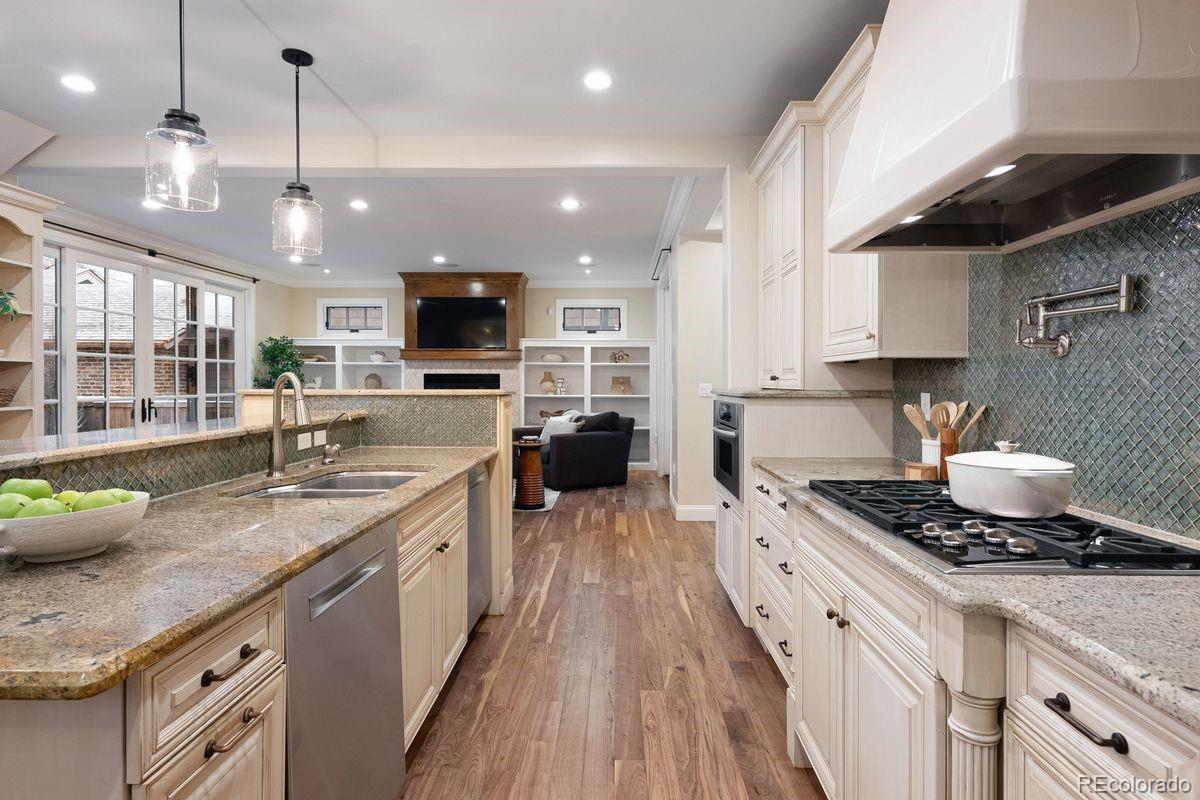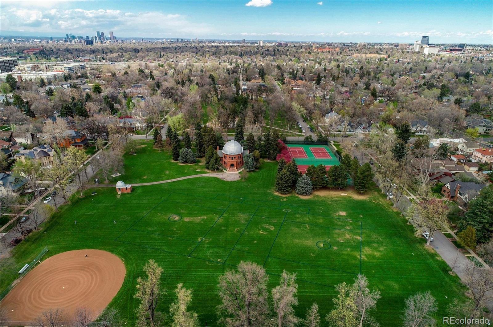Located just one home off of coveted Observatory Park, on one of the neighborhood’s most desirable blocks, this stately all-brick residence offers over 6,600 square feet of custom design, exceptional craftsmanship, and timeless appeal. The thoughtful layout includes four spacious bedrooms upstairs—each with its own ensuite bath—providing separation and room to thrive. A dramatic three-story staircase makes a striking first impression in the grand foyer, while newly refinished walnut floors add neutral elegance and sophistication throughout the main level. The kitchen features cream-toned custom cabinetry, granite countertops, a Sub-Zero refrigerator, 48" Wolf gas cooktop, double ovens, and a generous eat-in space. An expansive walk-in pantry and a stunning butler’s pantry deliver beauty and function with exceptional storage and prep space. A main floor office with built-ins offers a quiet, dedicated workspace. Upstairs, the vaulted primary suite is a true retreat with a dual-sided fireplace between the sitting area and luxurious five-piece bath, a large walk-in closet, and a stackable laundry unit tucked discreetly inside. Three additional upstairs bedrooms—each with ensuite baths—offer comfort and privacy for all. The finished basement expands the home’s versatility with two large living areas, a full wet bar with dishwasher and wine fridge, two additional bedrooms, a ¾ bath, and a wine room. Out back, enjoy a private brick-paver patio with built-in gas fireplace, hot tub, and grassy area for kids and pets—perfect for relaxing or entertaining. Additional highlights include an attached two-car garage, a rare extended driveway off alley, dual staircases, two laundry areas, concrete tile roof and enduring architectural details throughout. Custom designed and proudly maintained by the original owners, this move-in ready home offers space, quality, and timeless style—just steps from Observatory Park and within blocks of University Park Elementary and Dinosaur Park.