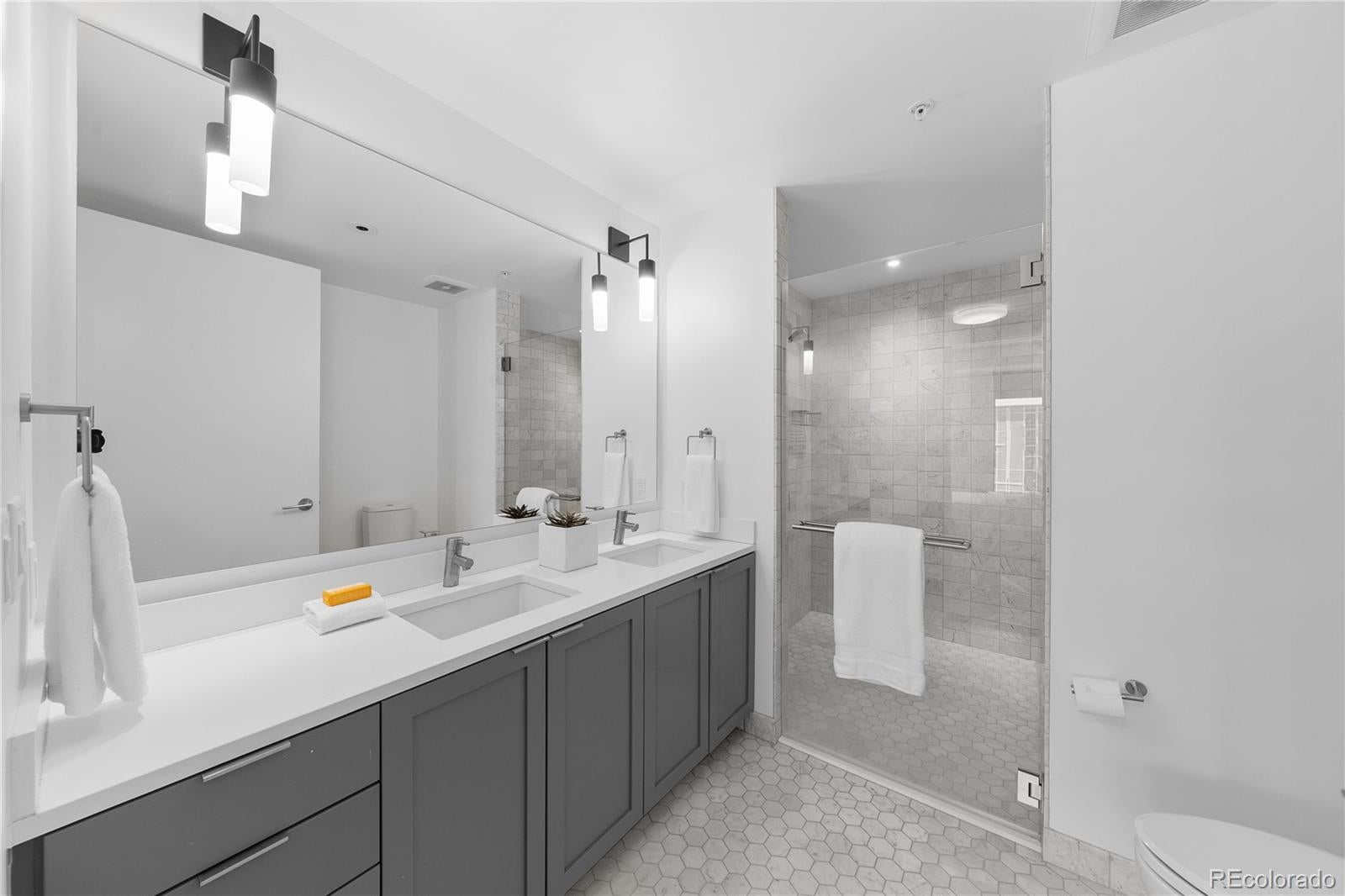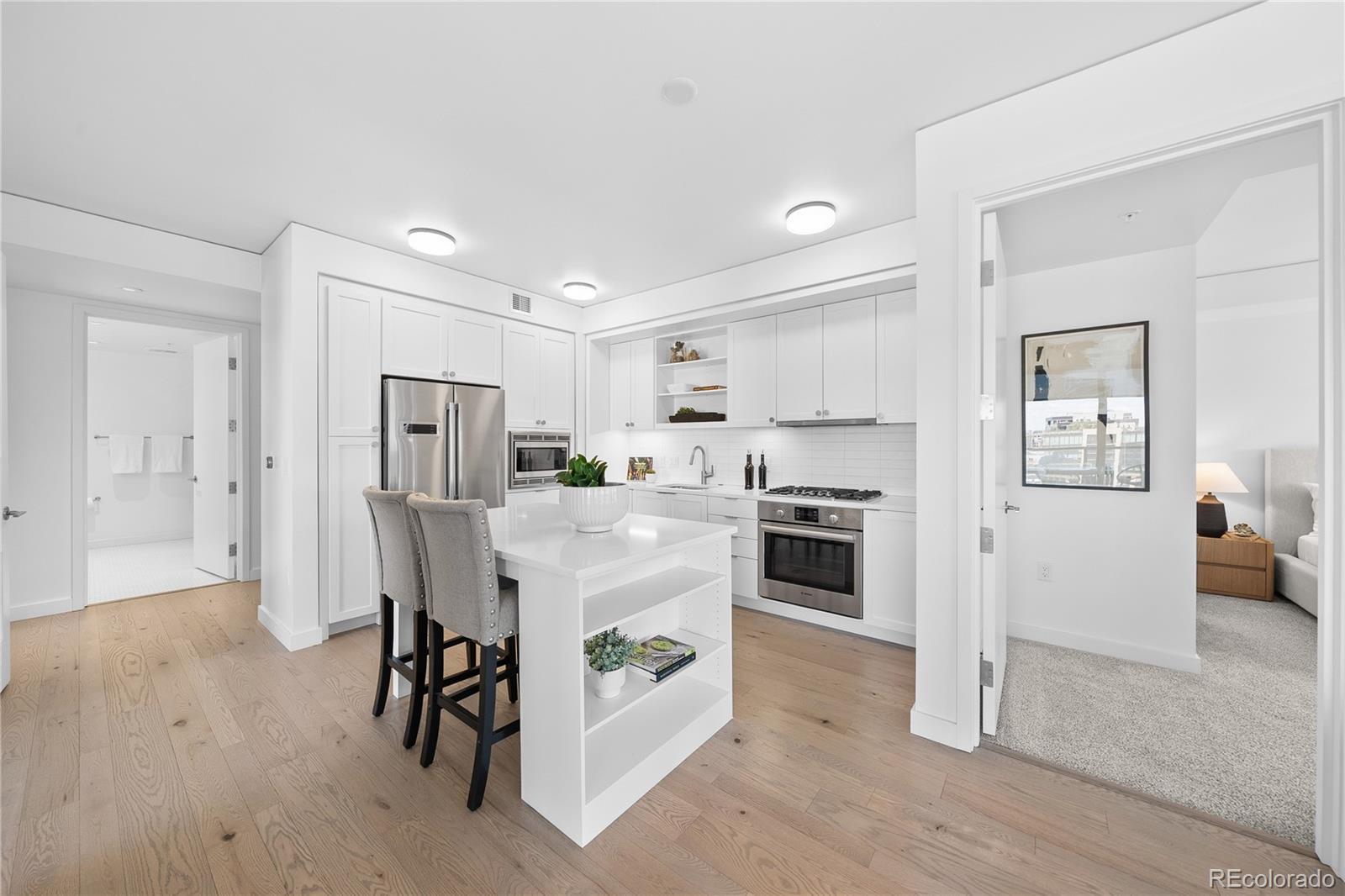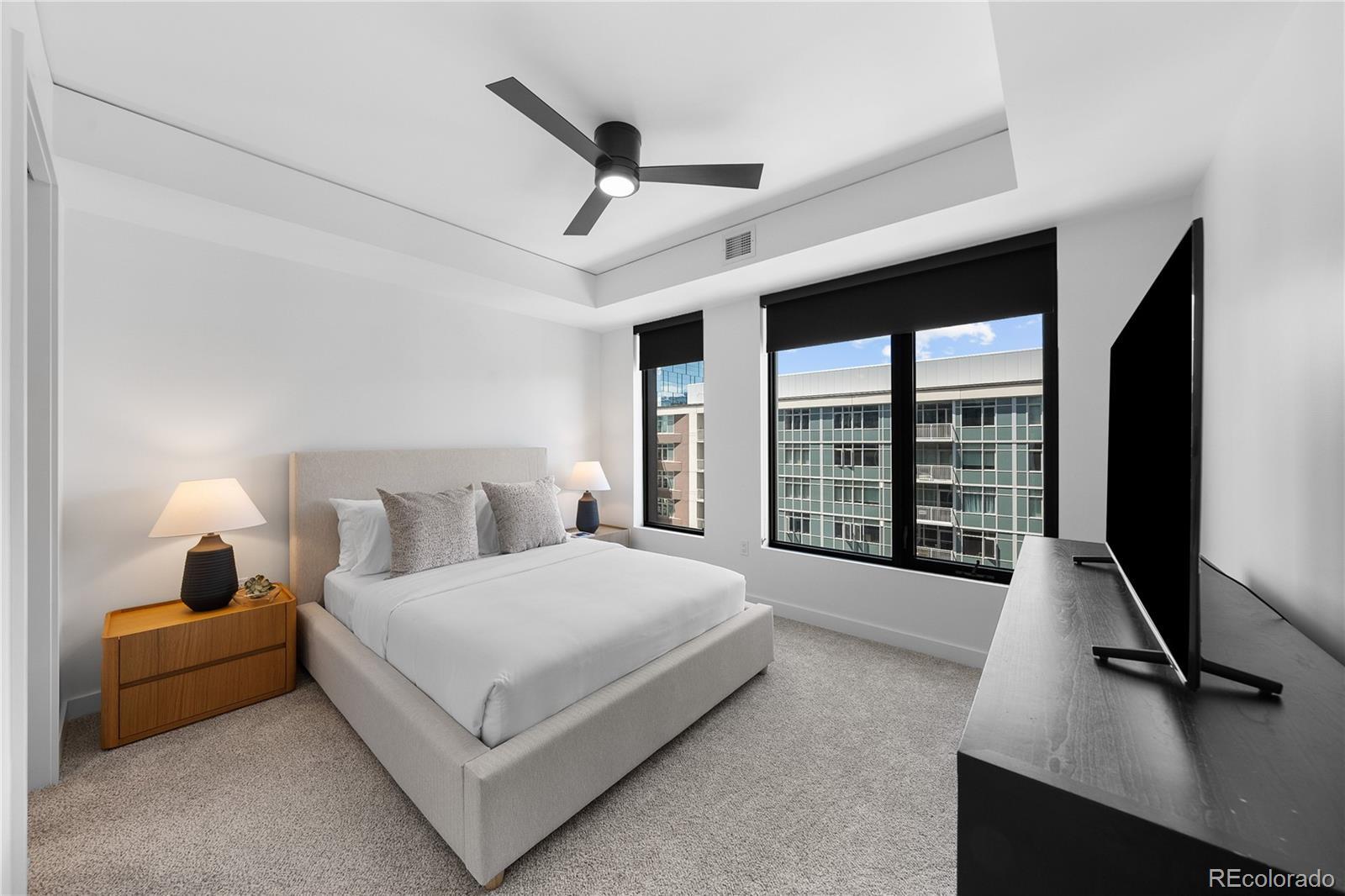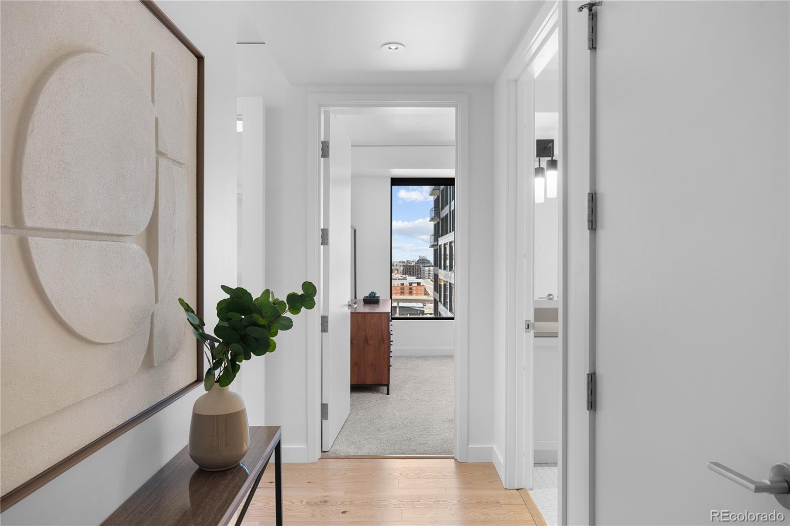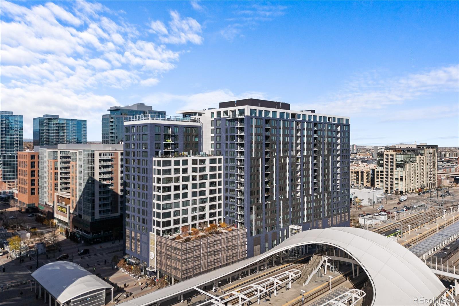 Elevated, effortless, and impeccably designed—this corner residence at The Coloradan is the ultimate lock-and-leave home in the heart of Denver. Wrapped in floor-to-ceiling windows and grounded by wide-plank oak floors, the open-concept layout blends refined finishes with bold city views. The sleek kitchen features stainless steel appliances, a gas cooktop, quartz countertops, and a generous island for casual meals or cocktails with friends. The living and dining spaces flow seamlessly onto a private balcony, offering a front-row seat to Denver’s dynamic urban landscape. The primary suite is a calm, curated retreat, complete with a custom walk-in closet and a spa-like bath wrapped in marble, featuring dual vanities, a soaking tub, and a glass-enclosed shower. Two additional bedrooms offer flexibility for guests, creative pursuits, or working from home, all serviced by a second full bath with clean, contemporary finishes. Situated at 17th and Wewatta—directly behind Denver’s Union Station and across the street from the flagship Whole Foods—this is downtown living at its most convenient. Walk to the city’s top restaurants, boutique shopping, vibrant coffee and fitness studios, trails, Commons Park, and the confluence of the Cherry Creek and South Platte River. Residents enjoy access to a full suite of exclusive amenities, including the 18th-floor rooftop pool deck and hot tub, owners’ clubhouse, state-of-the-art fitness center, 5th-floor community garden, and 24-hour front desk service. Whether you’re based in the mountains, travel often, or simply want the best of Denver at your doorstep, The Coloradan delivers on location, lifestyle, and luxury.