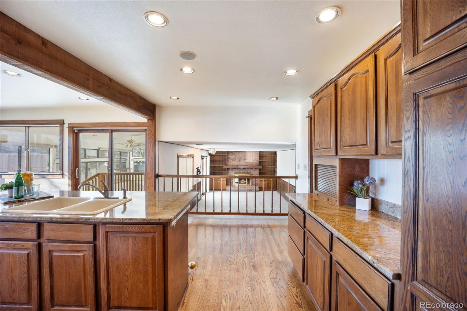 Welcome to this lovingly maintained home in the highly desirable Ralston Estates neighborhood! Located near the entry of a quiet cul-de-sac and owned by the same family for over 50 years, this property offers features rarely found in the area. With 2,762 sqft of living space plus an additional 387 sqft sunroom, this 5-bedroom, 4-bath home provides exceptional space and flexibility. The true highlight is the mid-1990s kitchen and dining expansion, creating an oversized kitchen and breakfast nook filled with natural light and mountain views. The bright, spacious sunroom adds valuable year-round living space and enhances the home’s open, inviting feel. Other updates over the years include granite bathroom countertops, high-quality windows, and a furnace and A/C replacement in 2017. Additional features include a finished basement, cozy wood-burning fireplace, insulated attic and garage, sprinkler system, RV/Boat parking, tool shed with electrical, and exterior paint completed in 2019. This home offers privacy in both the front and back yards, mature landscaping with lush perennials, and easy access to a nearby school, Yankee Doodle Park, and scenic trails. With convenient access to major highways and downtown Denver, this well-maintained Arvada gem presents a rare opportunity to create a truly special home in a highly sought-after location.