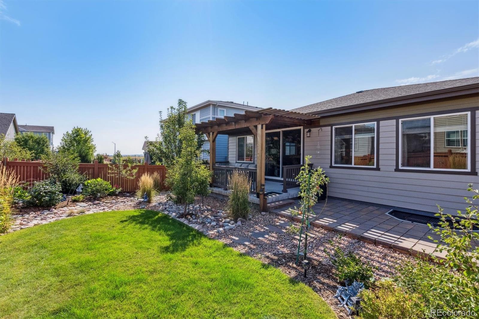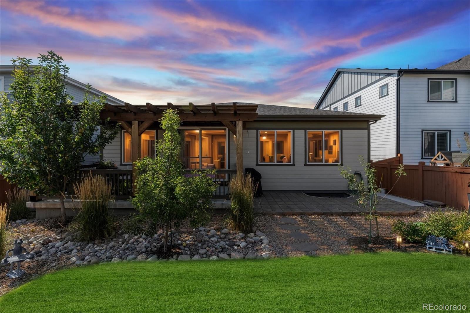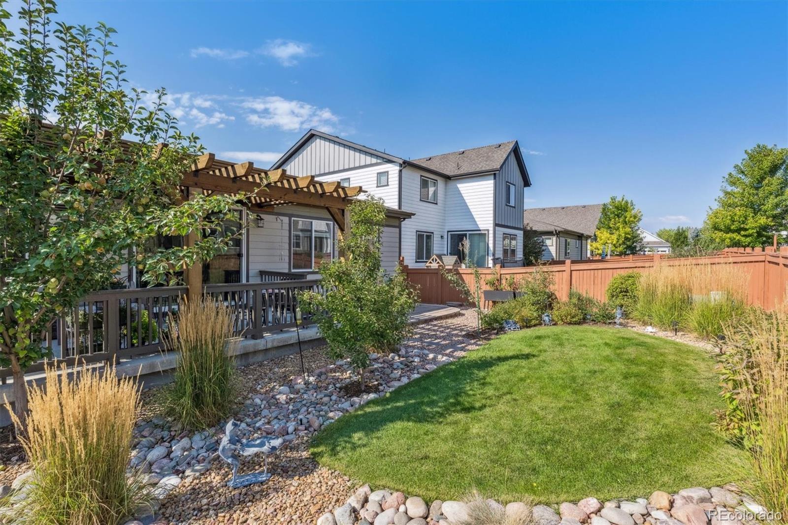 Step into this bright and spacious 2 bed, 2 bath with home office, ranch style home featuring lots of natural light throughout. The open-concept kitchen is equipped with granite countertops, white cabinets, stainless steel appliances, an island, a pantry, and is open to dining & living area. Ideal for cooking and entertaining. The cozy living room features high ceilings with a fan & light and access to the back patio via a large slider, perfect for indoor-outdoor living. Conveniently located laundry room with access to the primary bedroom closet and hallway. The spacious primary suite includes big windows, a ceiling fan, and an ensuite bath. Primary bath features double sinks, a walk in glass shower, a toilet room, and the spacious walk in closet. There's an additional bedroom and office with full hall bath off the main hallway, sure to keep your guests feeling welcomed! The large unfinished basement is bright and open with great potential. Enjoy your beautiful custom landscaped fenced backyard with new pergola! Live close to great schools, parks, trails, palisades park amphitheater, and many more! You're a short drive to Top Golf, Children's Hospital North, and the Orchard Town Shopping Center. Stellar access to Downtown Lafayette, Downtown Louisville, with easy commute off I-25 & more. This thoughtfully designed home combines comfort and style, making it a perfect fit for everyday living and memorable gatherings. You won't want to miss this one! Come see today!