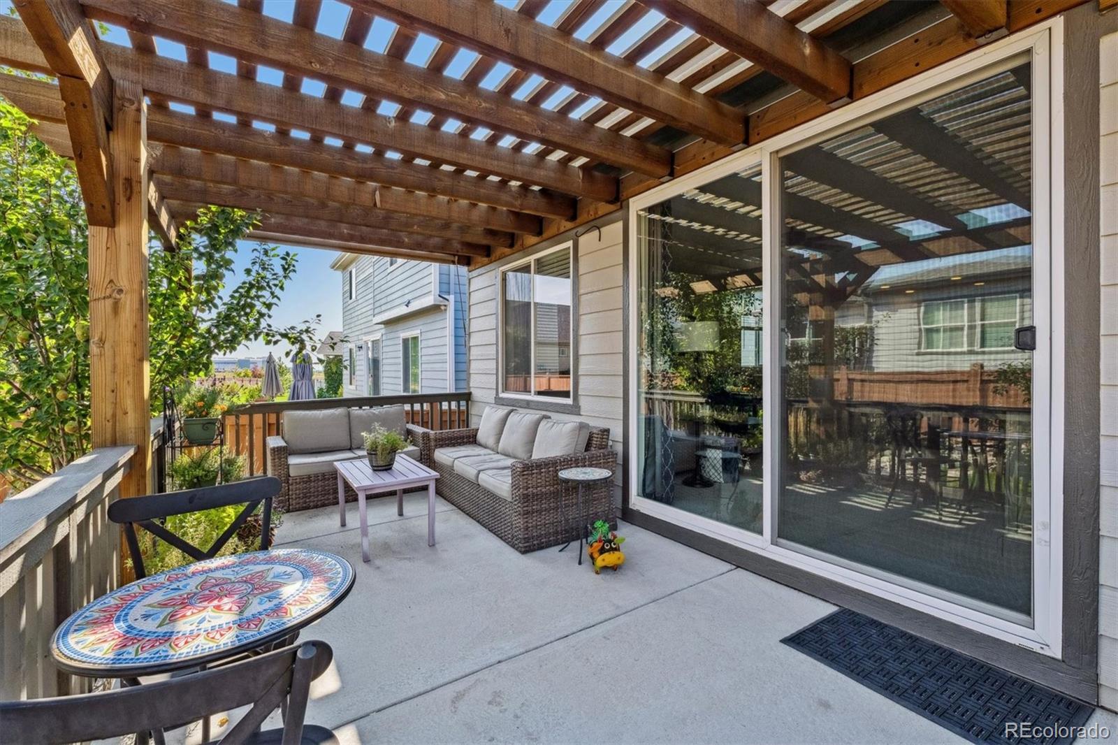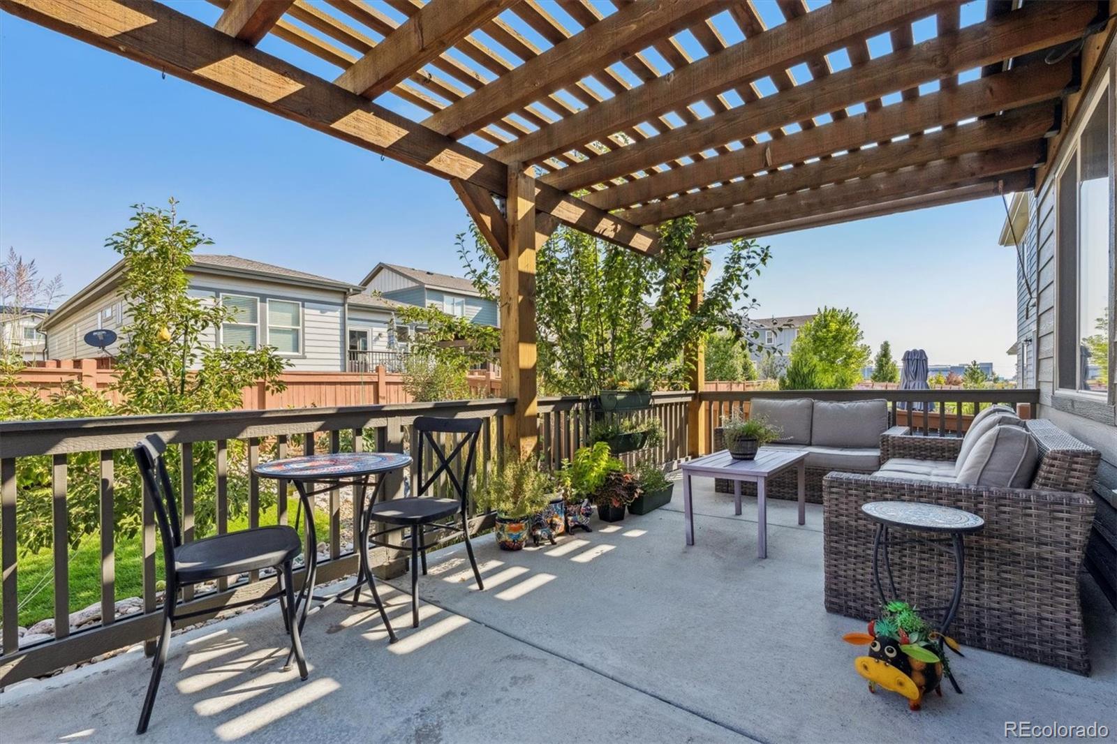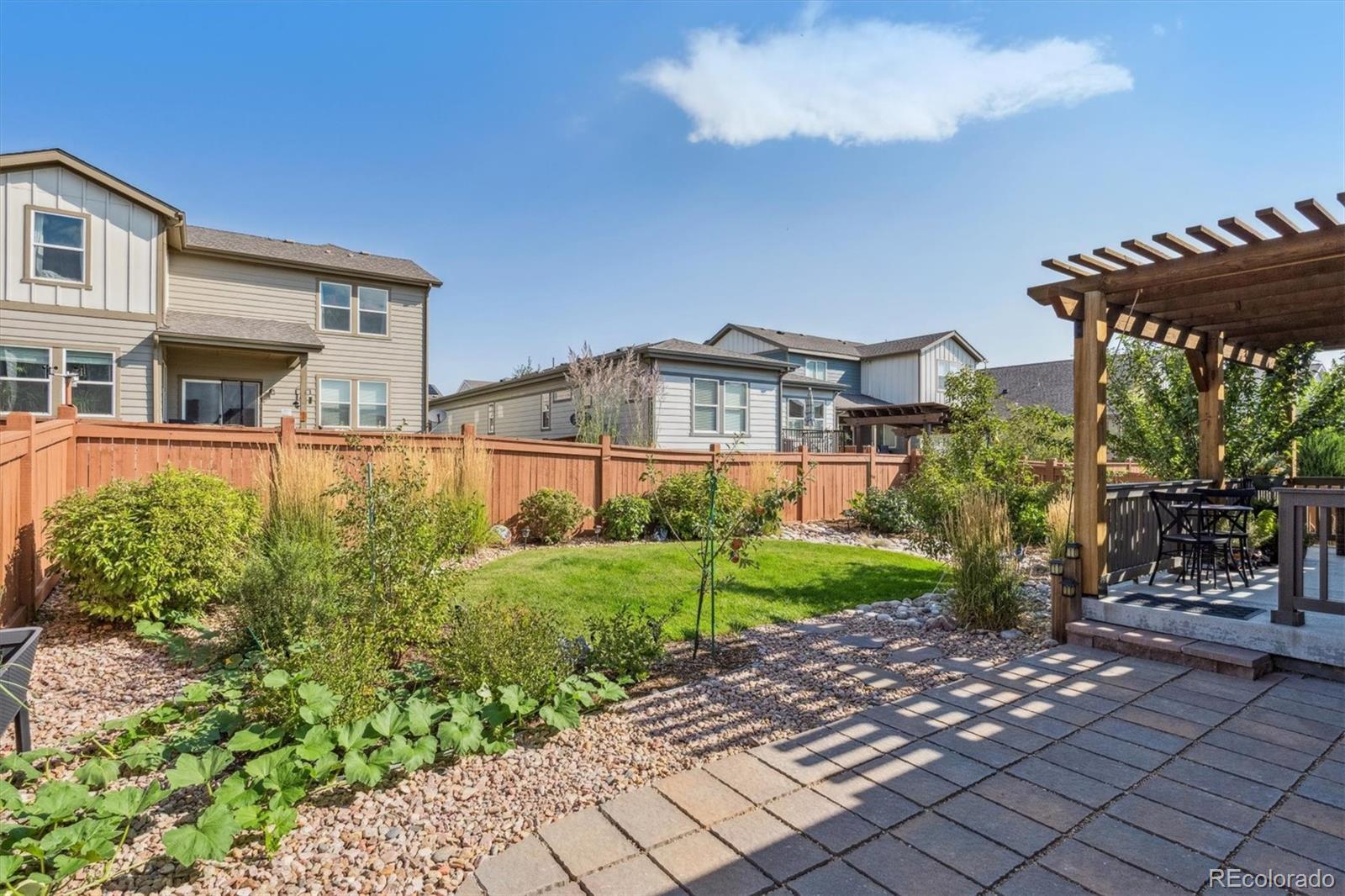Step into this bright and spacious 2 bed, 2 bath with home office, ranch style home featuring lots of natural light throughout. The open-concept kitchen is equipped with granite countertops, white cabinets, stainless steel appliances, an island, a pantry, and is open to dining & living area. Ideal for cooking and entertaining. The cozy living room features high ceilings with a fan & light and access to the back patio via a large slider, perfect for indoor-outdoor living. Conveniently located laundry room with access to the primary bedroom closet and hallway. The spacious primary suite includes big windows, a ceiling fan, and an ensuite bath. Primary bath features double sinks, a walk in glass shower, a toilet room, and the spacious walk in closet. There's an additional bedroom and office with full hall bath off the main hallway, sure to keep your guests feeling welcomed! The large unfinished basement is bright and open with great potential. Enjoy your beautiful custom landscaped fenced backyard with new pergola! Live close to great schools, parks, trails, palisades park amphitheater, and many more! You're a short drive to Top Golf, Children's Hospital North, and the Orchard Town Shopping Center. Stellar access to Downtown Lafayette, Downtown Louisville, with easy commute off I-25 & more. This thoughtfully designed home combines comfort and style, making it a perfect fit for everyday living and memorable gatherings. You won't want to miss this one! Come see today!