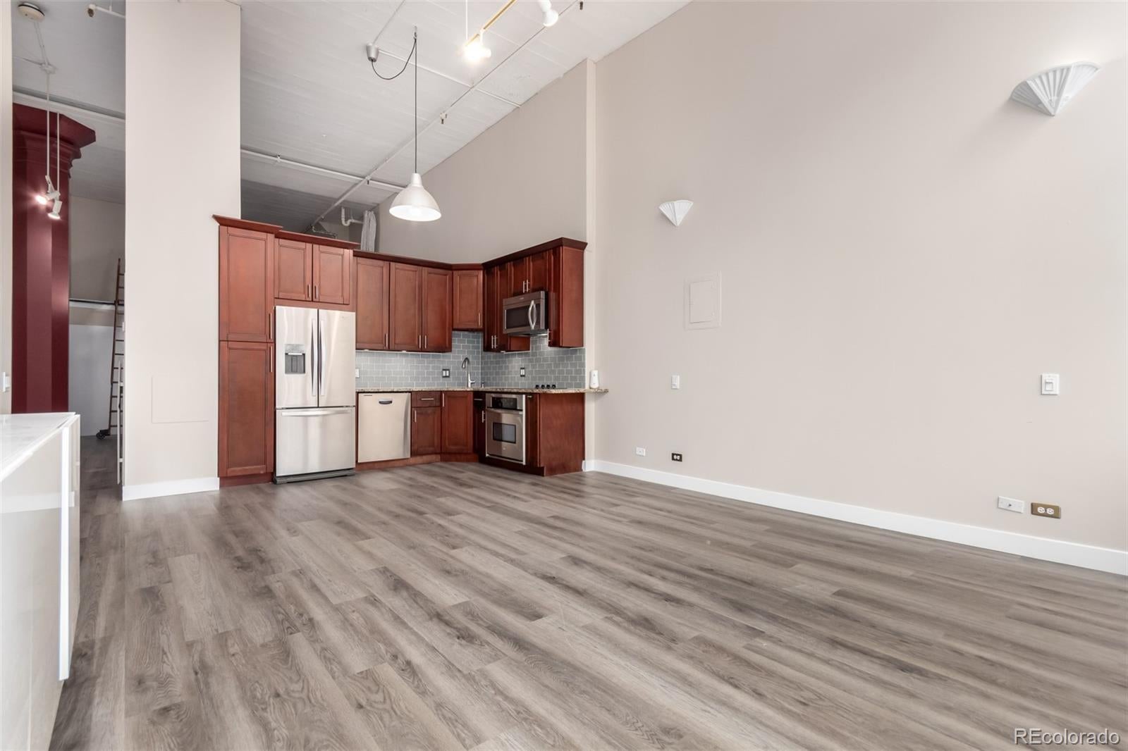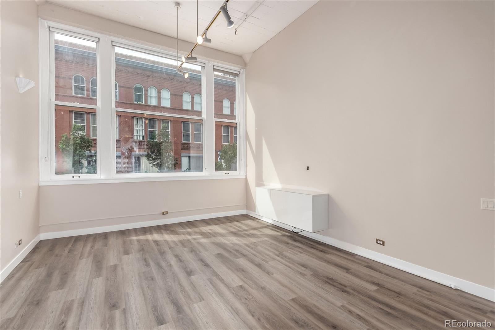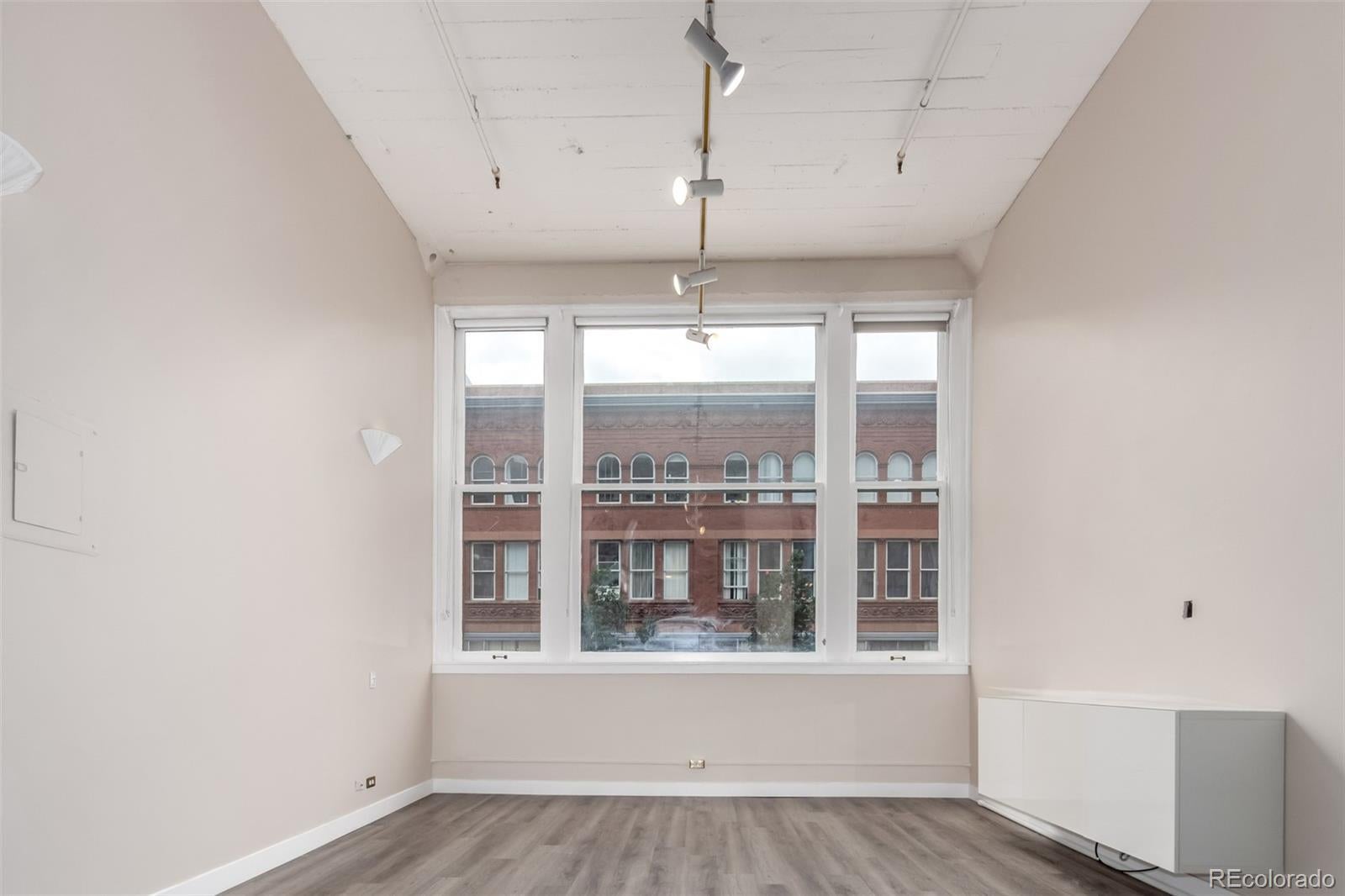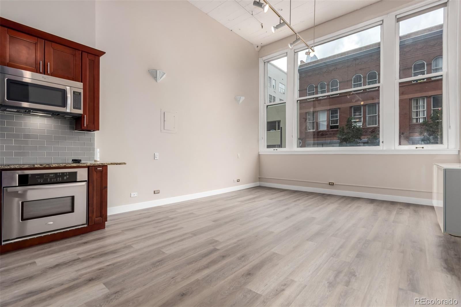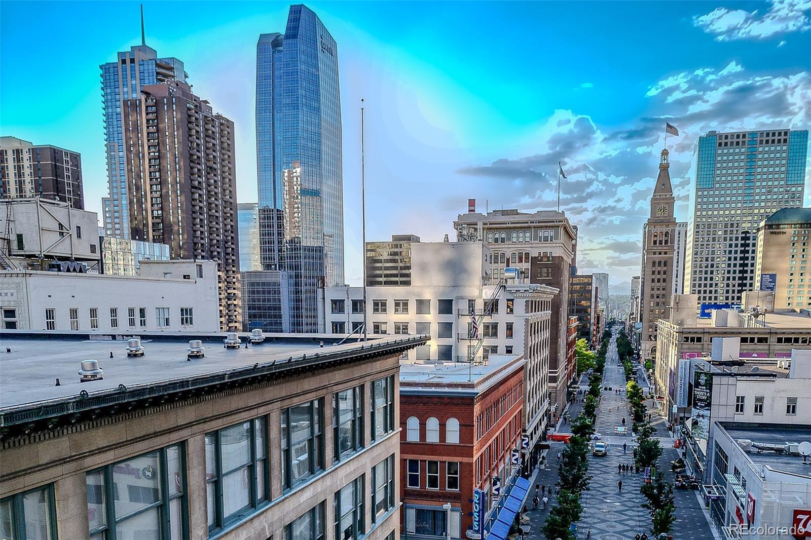 Live in the heart of it all! This beautifully remodeled loft-style condo puts you right on the iconic 16th Street Mall in Downtown Denver where shopping, dining, and entertainment are all just outside your door! Inside, you'll find a welcoming great room adorned with wood-look tile floors and an updated kitchen featuring stainless steel appliances, granite counters, tile backsplash, and rich wood cabinetry. An electric dual washer/dryer combo adds modern convenience, while the cozy bedroom offers a spacious walk-in closet for all your wardrobe treasures. Set within a meticulously maintained historic building, this condo combines classic charm with contemporary flair. High-speed internet is included with your HOA dues so stream, surf, or Zoom without missing a beat. Residents enjoy laundry facilities on every floor, a fully equipped gym, conference room, game room, bike storage, and secure access with surveillance for peace of mind. Whether you're starting your morning with a stroll to a favorite café or winding down in the game room after a day in the city, this place offers the perfect blend of comfort, character, and convenience. This isn’t just a place to live: it’s a lifestyle. Don’t miss your chance to own this vibrant slice of Denver home!