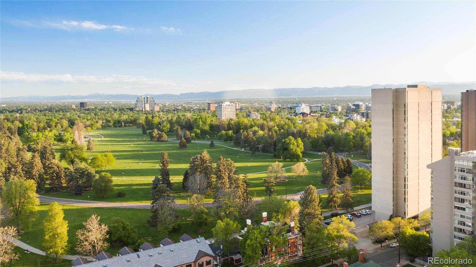 Thoughtfully and completely remodeled in 2025, this Pied-à-terre extraordinaire is a 1-bedroom, 1-bath residence that has been completely updated with refined, luxury finishes that elevate every inch of the space. Perched in the crown jewel of Denver’s beloved Cheesman Park, unit 10B of One Cheesman Place offers an exceptional opportunity to own a beautifully reimagined city retreat. This cozy condo with a screened-in, oversized balcony boasts some of the most spectacular views in Denver, showcasing sweeping 180-degree views that capture our beautiful mountain range and the very best of city and park living. As a 10th-floor central unit, 10B offers the perfect balance of earth and sky; arguably, the best view in the building. Perfect as a lock-and-leave home away from home or an elegant full-time residence, this condo delivers an unmatched lifestyle high above one of Denver’s most iconic parks. Wake each day to breathtaking scenery and enjoy effortless access to amenities, such as an outdoor pool, on-site gym, enclosed tenant-only underground garage, private laundry areas on every floor, rentable guest rooms, free off-street parking lot for guests, and a sweeping penthouse lounge complete with a full kitchen — ideal for hosting larger gatherings or special occasions. Residents enjoy the comfort and security of a doorman building, along with roomy common spaces that enhance everyday living. There are also two guest suites in the building that residents can reserve for out-of-town guests, allowing you to host comfortably. Rarely does a property combine location, views, and sophisticated updates in such a perfectly scaled package. If you’ve been searching for the ultimate city vantage point — perched above one of Denver’s finest parks with walkability and amenities at your fingertips — this is the one.