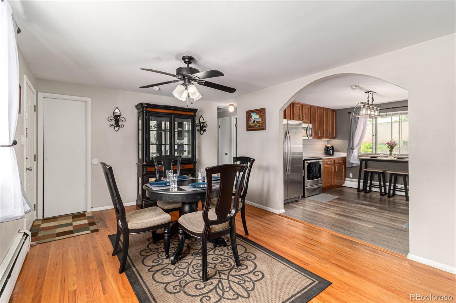 -->>Welcome to Your Versatile Ranch Retreat! No HOA! Nestled in a peaceful, park-friendly neighborhood, this inviting ranch-style gem offers space, style, and smart upgrades. Set on a lush lot with a 5-car driveway, this home blends classic charm with modern convenience. Step into the bright, open living and dining area, where built-in bookshelves and a cozy fireplace create the perfect gathering spot. The updated kitchen shines with stainless steel appliances, rich wood cabinetry, and a stylish subway tile backsplash. On the main level, you’ll find 2 spacious bedrooms, a full bath, and a bonus room—perfect as a third bedroom, home office, or creative studio. Head downstairs to the fully finished basement, where flexible space awaits—ideal for a family room, game zone, or movie lounge. The lower level also includes 2 additional bedrooms, a 3/4 bath, and a combined laundry/storage room, offering functionality and comfort. Outdoor Living & Energy Efficiency Highlights: Evaporative cooling, energy-efficient appliances, ceiling fans, and LED lighting throughout. New electrical panel (Spring 2025) with whole-house surge protection. Upgraded bathrooms with manufacturer’s warranties. Built-in audio/video controls, laminate flooring, and a radon mitigation system for peace of mind. Secure exterior doors with bump-proof deadbolts. Enjoy the Colorado seasons in your expansive backyard, complete with an open patio for BBQs, 2 storage sheds, and a greenhouse (currently used for wood storage). Close to highways, RTD access, and within walking distance to local schools and parks. -->>Take advantage of a 2.5% assumable interest rate – or choose our preferred lender's 1.75% credit toward closing costs, prepaid items, or interest rate buy-downs! With no income limits and options for primary, secondary, and investment loans, you could save up to $8,750—conditions apply.