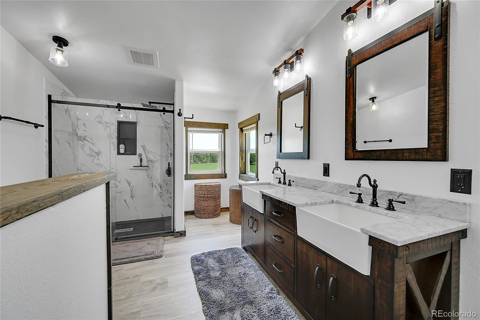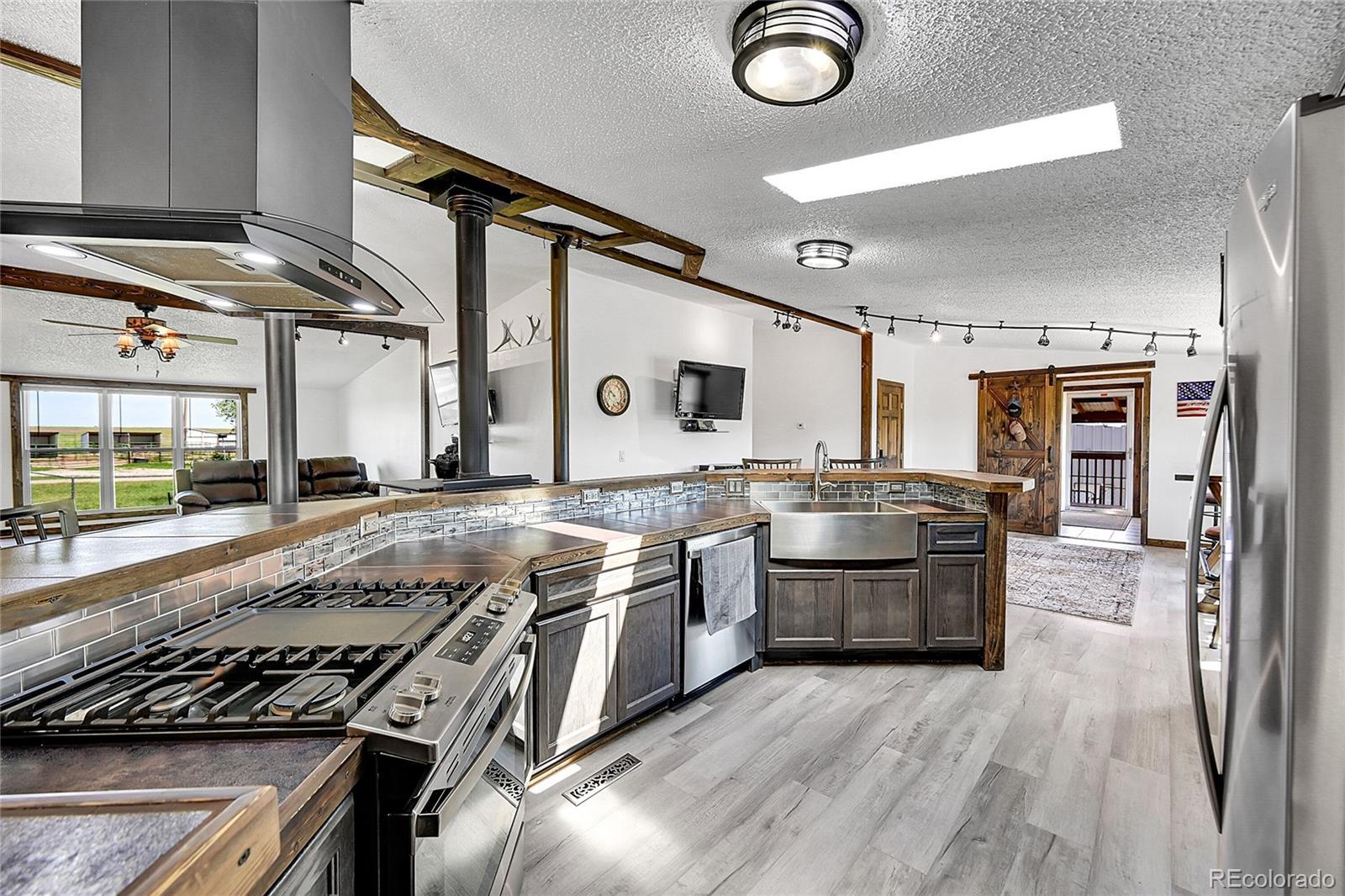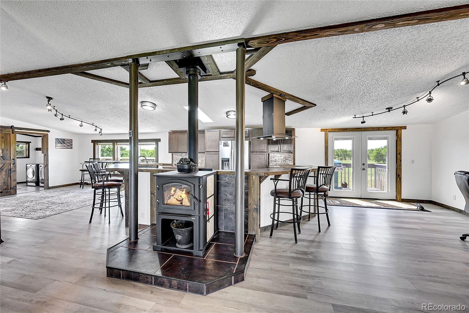 Looking to experience a country lifestyle? One that is close enough to town yet far enough to have your own space? Then look no more!! This lovely remodeled 4-bedroom, 3-bath ranch-style home has it all. Located on 43.83 acres with a SEASONAL STREAM and POND! The primary bedroom has an en-suite bathroom with two farmhouse sinks, shower, and toilet. The additional three bedrooms share a full bath. It comes equipped with a dream kitchen located next to the dining area that has amazing views of your very own 43-acre backyard with lots of trees along the seasonal creek. The large living room is open to the kitchen and dining area. Complete with a wood-burning stove. The laundry is on the main floor along with a ½ bath. Plenty of space to park vehicles; attached 5-car garage (located lower level of the house, approx 58' x 38', water, electricity, high ceilings, over 9' doors), detached 2-garage, and a large steel building. The 7,000 sq ft. steel building is free-span and can be used to store hay, cars, equipment, or as an indoor riding arena, whatever your heart desires. There are numerous outbuildings to house livestock or use as storage. The property is fenced and cross-fenced. Water hydrants are located around the property. NO COVENANTS OR HOA! In addition to all of this, the price includes a mobile home that currently rents for $700 per month (mobile home is on its own septic). Additional RV hookup. Perfect for a multigenerational family or those who are looking for passive income. This location couldn't be better! Only minutes away from I-70 and the city for an easy 30-minute commute to Denver. Close to a grocery store, restaurants, and school. Too much to list, you need to see this amazing listing for yourself! Don't miss out on your opportunity to own such a versatile property!