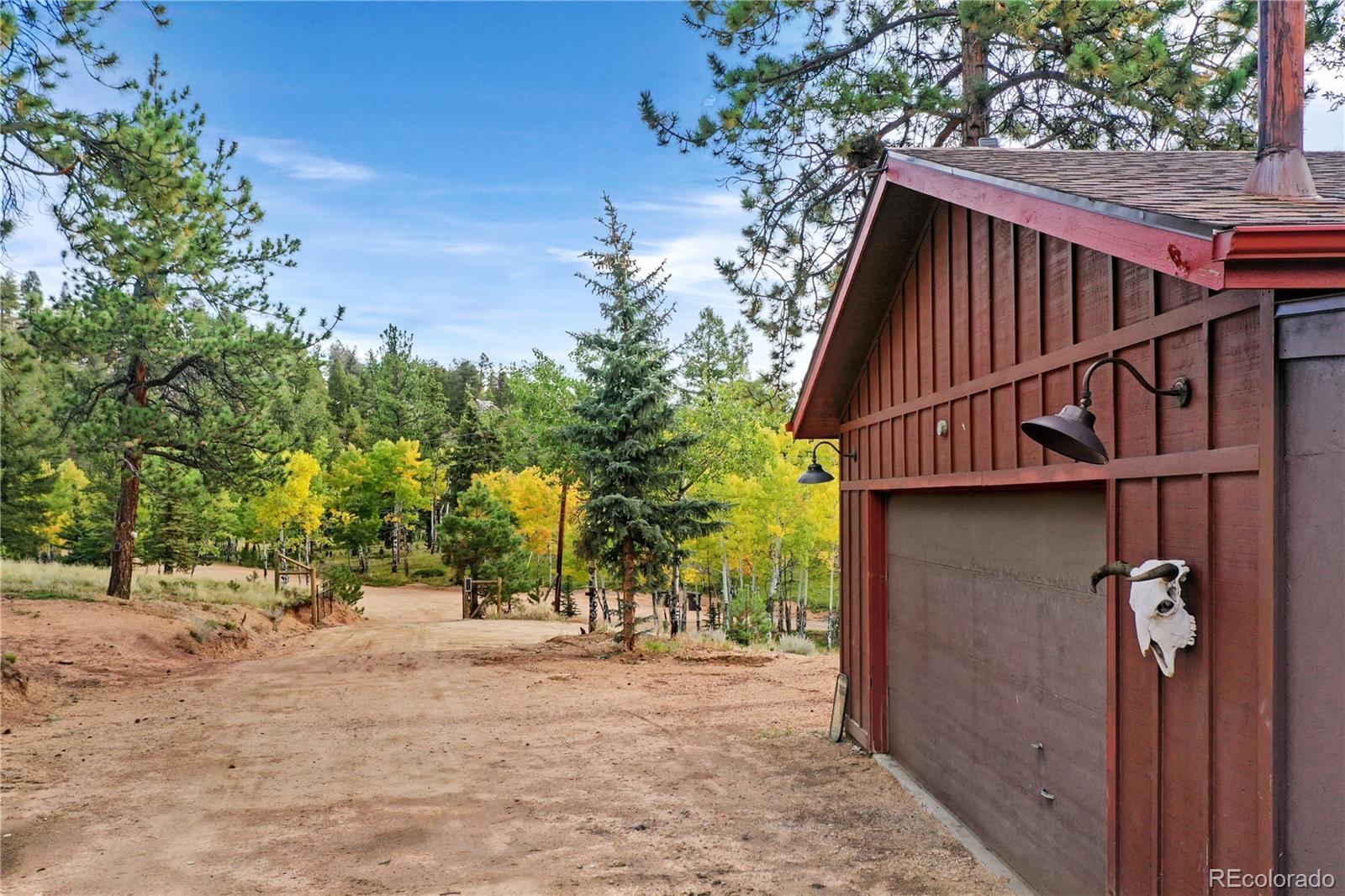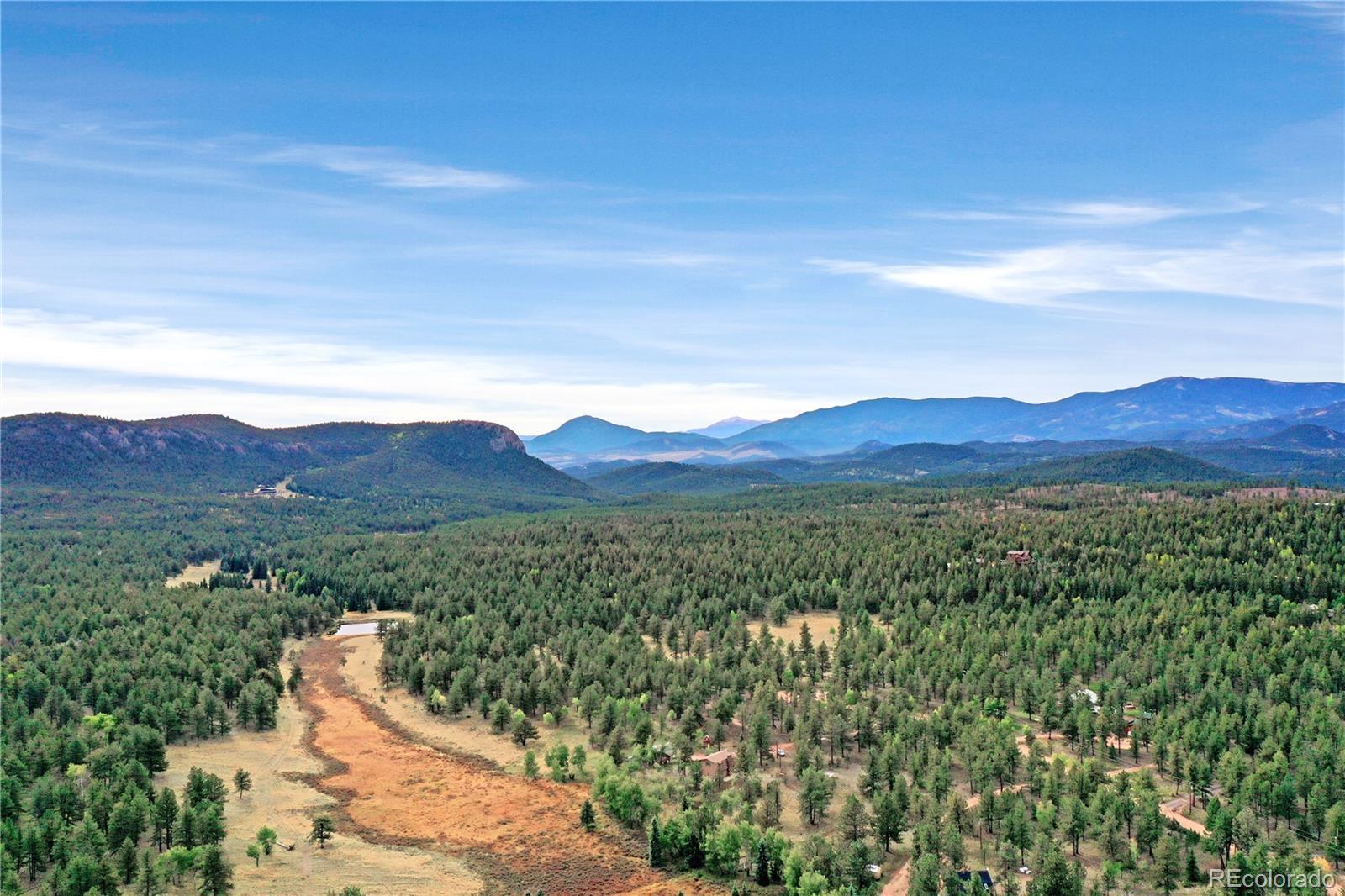 This charming 2-bedroom, 1-bath retreat in Deer Creek Valley Ranchos offers breathtaking views of the surrounding mountains and a taste of the ultimate Colorado lifestyle. The home features a sleek, efficient kitchen and a cozy living room with a striking stone fireplace and wood-burning insert. Pitched ceilings with exposed beams add character and warmth. Step through French doors from the primary bedroom onto a spacious deck—perfect for morning coffee or evening stargazing. Below, unwind in the hot tub as you take in the natural beauty from all directions. The primary bedroom also offers a generous walk-in closet for your personal storage needs. Outside, you'll find nearly 5 acres covered with Aspen and pine and a detached 2-car garage for added storage and workspace. There's plenty of space for horses and room to park your motorhome and equipment. You'll also find a fenced chicken coop and unusual rock outcroppings. Whether you're seeking a peaceful getaway or a full-time residence immersed in nature, this property delivers a rare blend of privacy, functionality, and mountain charm. View the pictures and virtual tour and call today for your personal showing!