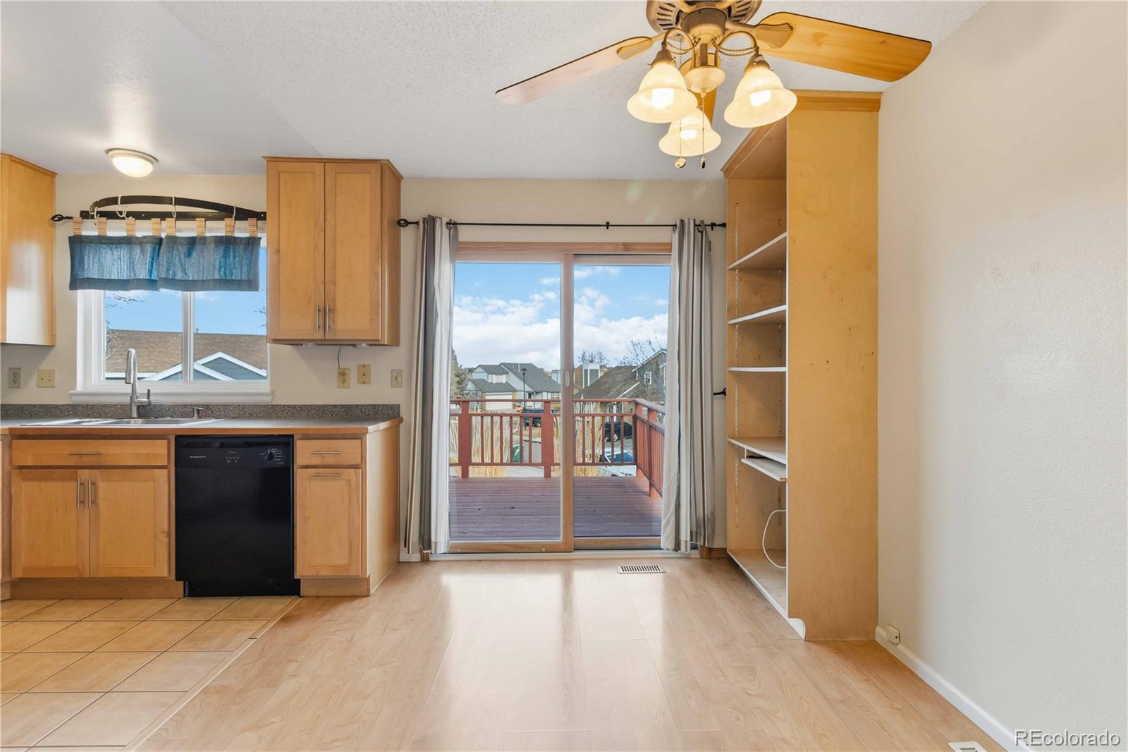 Step into a warm and inviting home tucked at the end of a peaceful cul-de-sac. This charming property offers a bright, airy layout highlighted by high ceilings, a cozy wood-burning fireplace, fresh paint. and an open main living area that feels instantly welcoming. The kitchen features maple cabinetry with accent lighting, tile flooring, and a full suite of black appliances. Just off the kitchen is a spacious dining area with built-in storage, a ceiling fan, and plenty of room for a large table. From here, head out to the private deck—perfect for morning coffee, relaxed evenings, or weekend entertaining. The upper level hosts the primary bedroom with a walk-in closet, ceiling fan, and a sunny window nook with neighborhood views. A second upper-level bedroom also includes a walk-in closet and ceiling fan. The main bathroom has been refreshed with tile finishes and maple cabinetry. The lower level offers a third bedroom with generous natural light thanks to a garden-level window, along with an additional bathroom featuring updated fixtures. Newer windows throughout add to the comfort and efficiency of the home. Additional storage is available in the crawl space. Outside, enjoy mature landscaping, garden beds, a firepit area, and a storage shed—plenty of space to unwind or play. Located in a highly sought-after community with access to miles of trails, multiple recreation centers, parks, top-rated schools, shopping, dining, and a full calendar of neighborhood events. Easy commutes to the Tech Center, downtown Denver, and mountain getaways. All included! Gas, electric, water, trash, and renter's insurance not included in rent. All to be setup prior to move-in. Pets allowed, contact for more info! Best rate on short term spring/summer expirations or long term spring/summer lease expirations.
